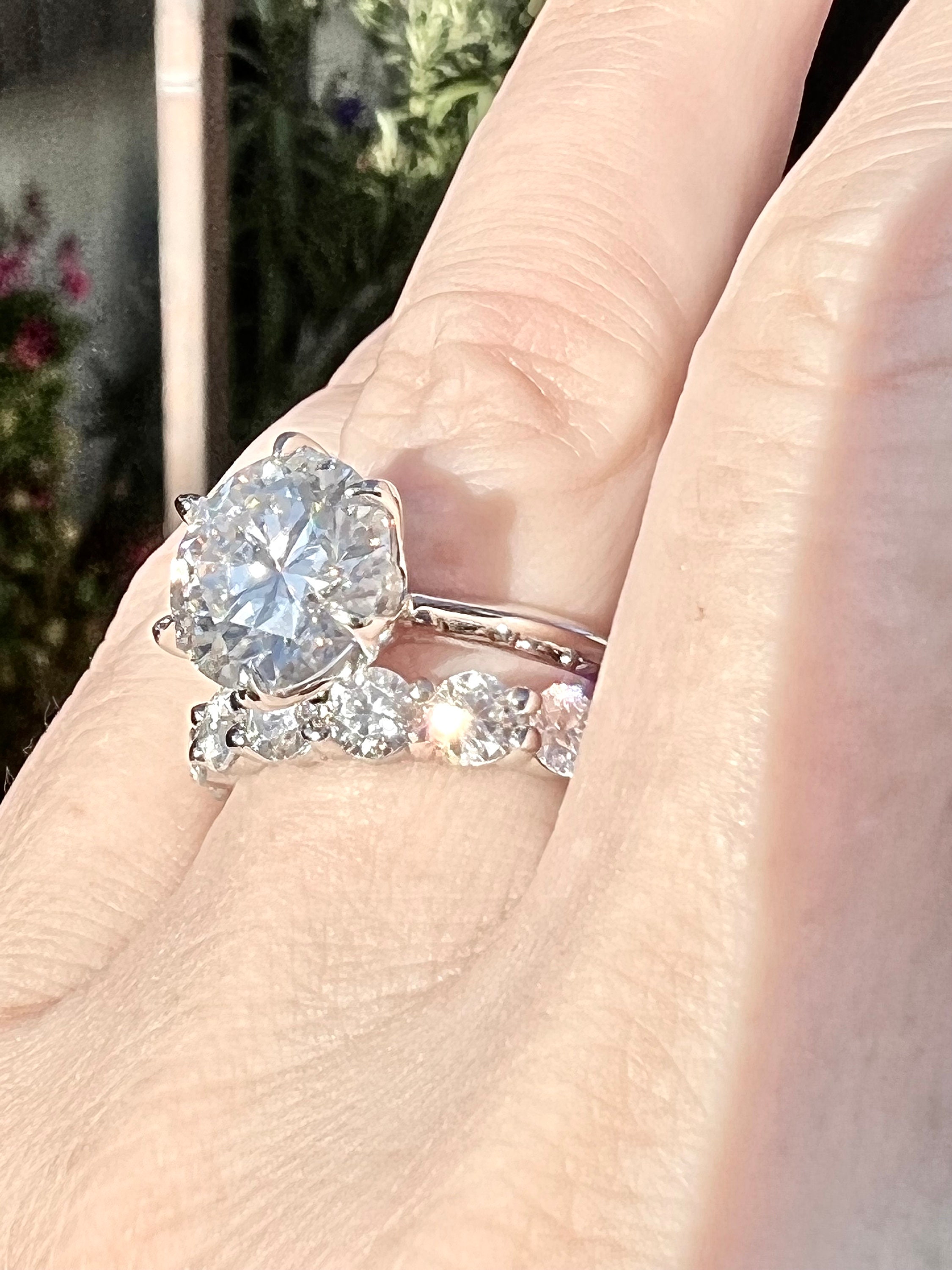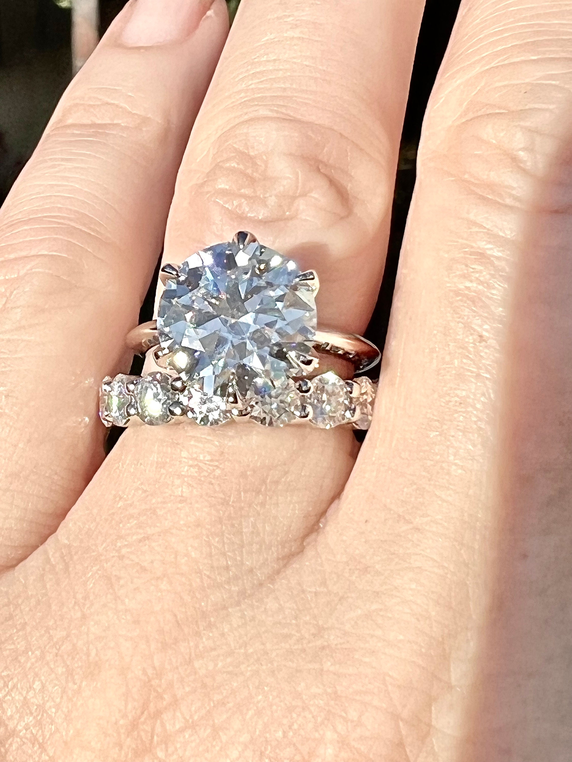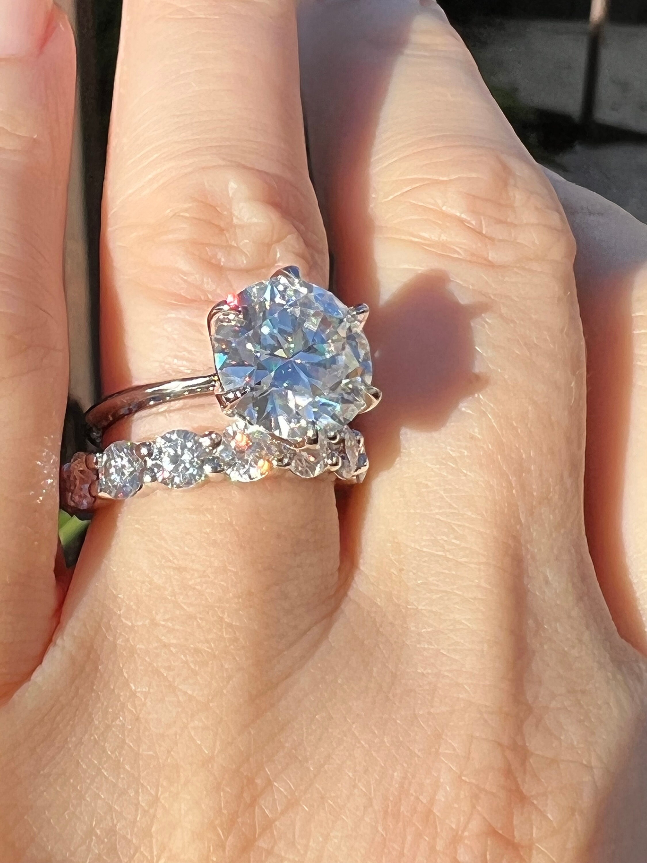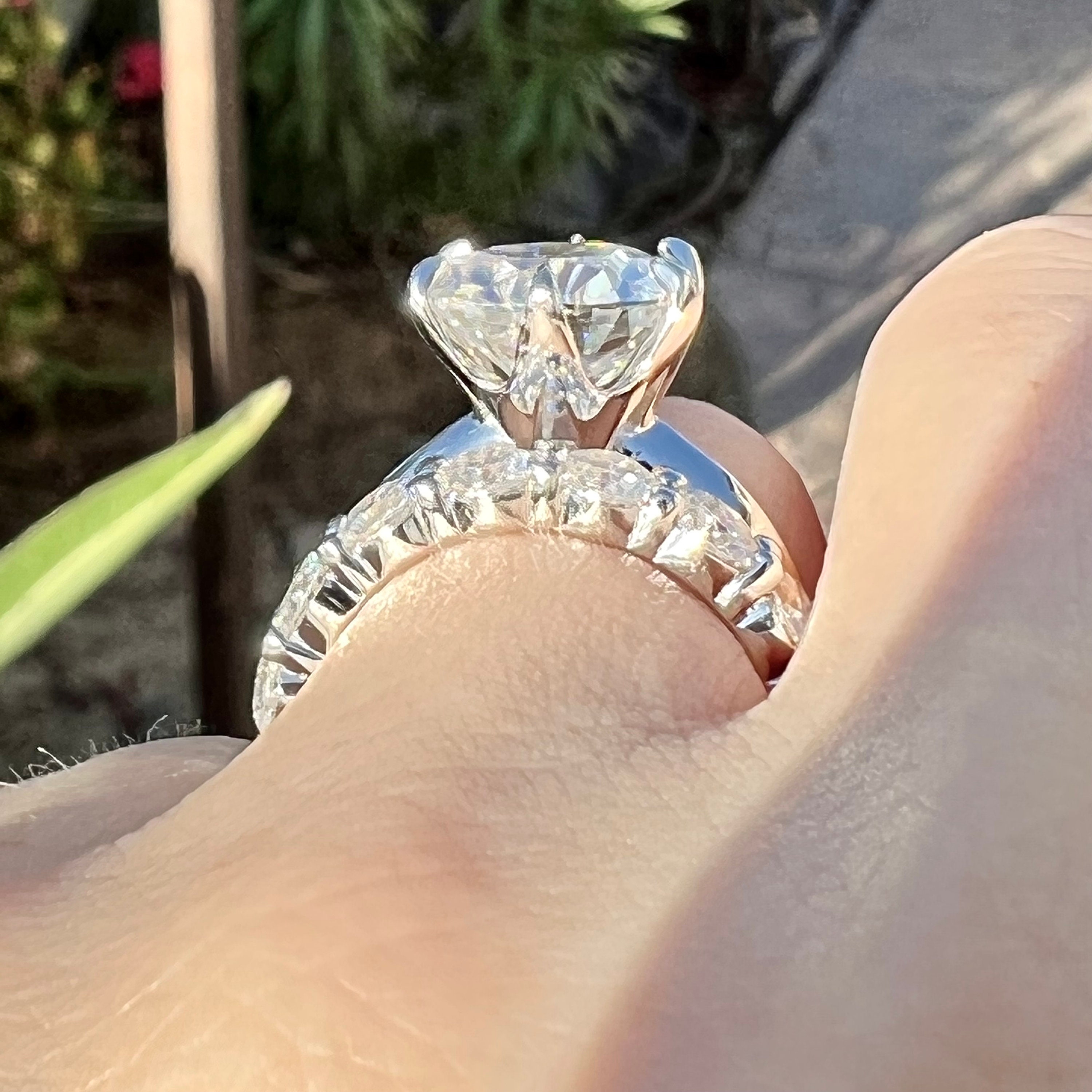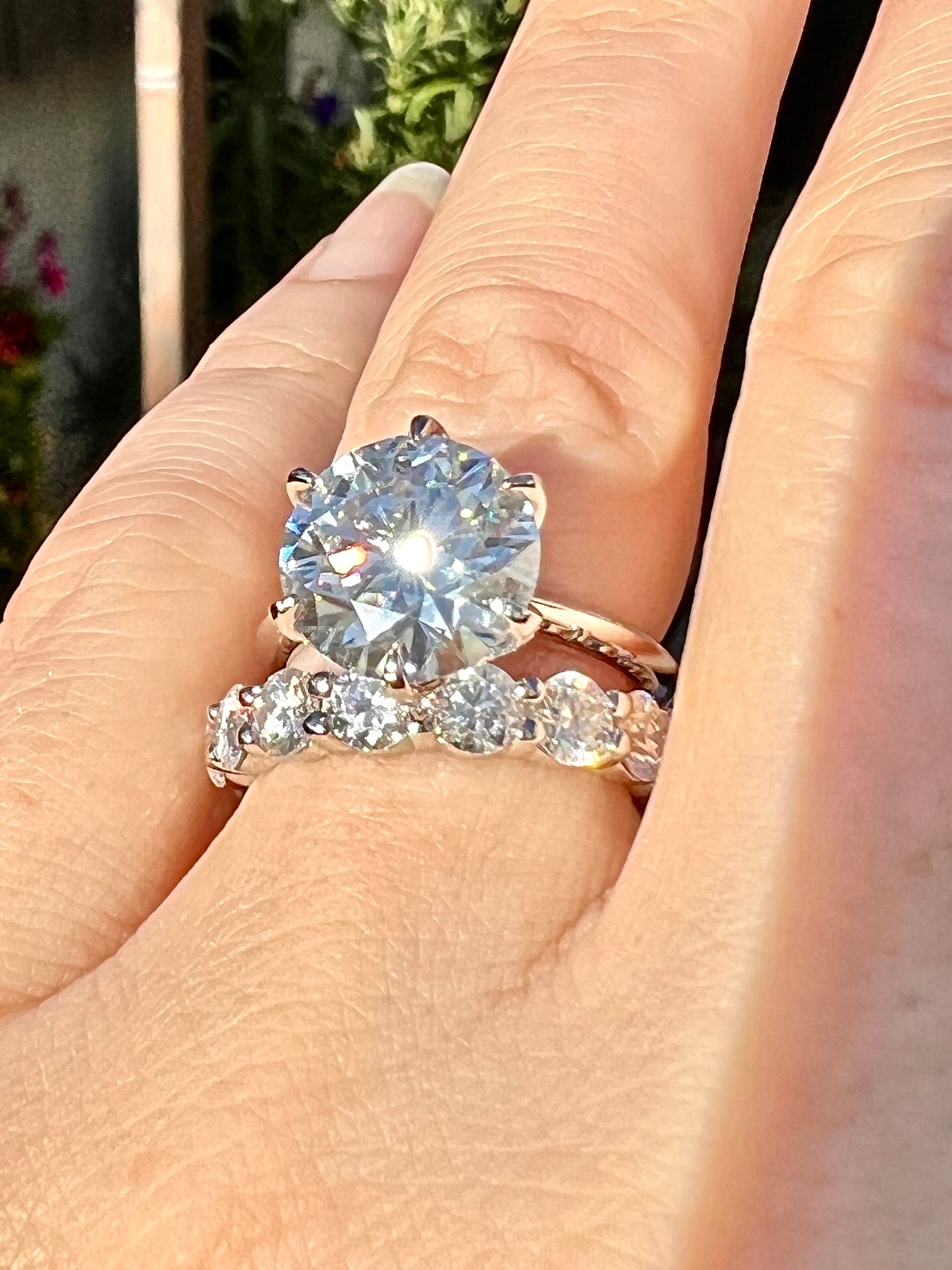 14K White Gold 4CT round brilliant cut lab grown diamond bridal set.