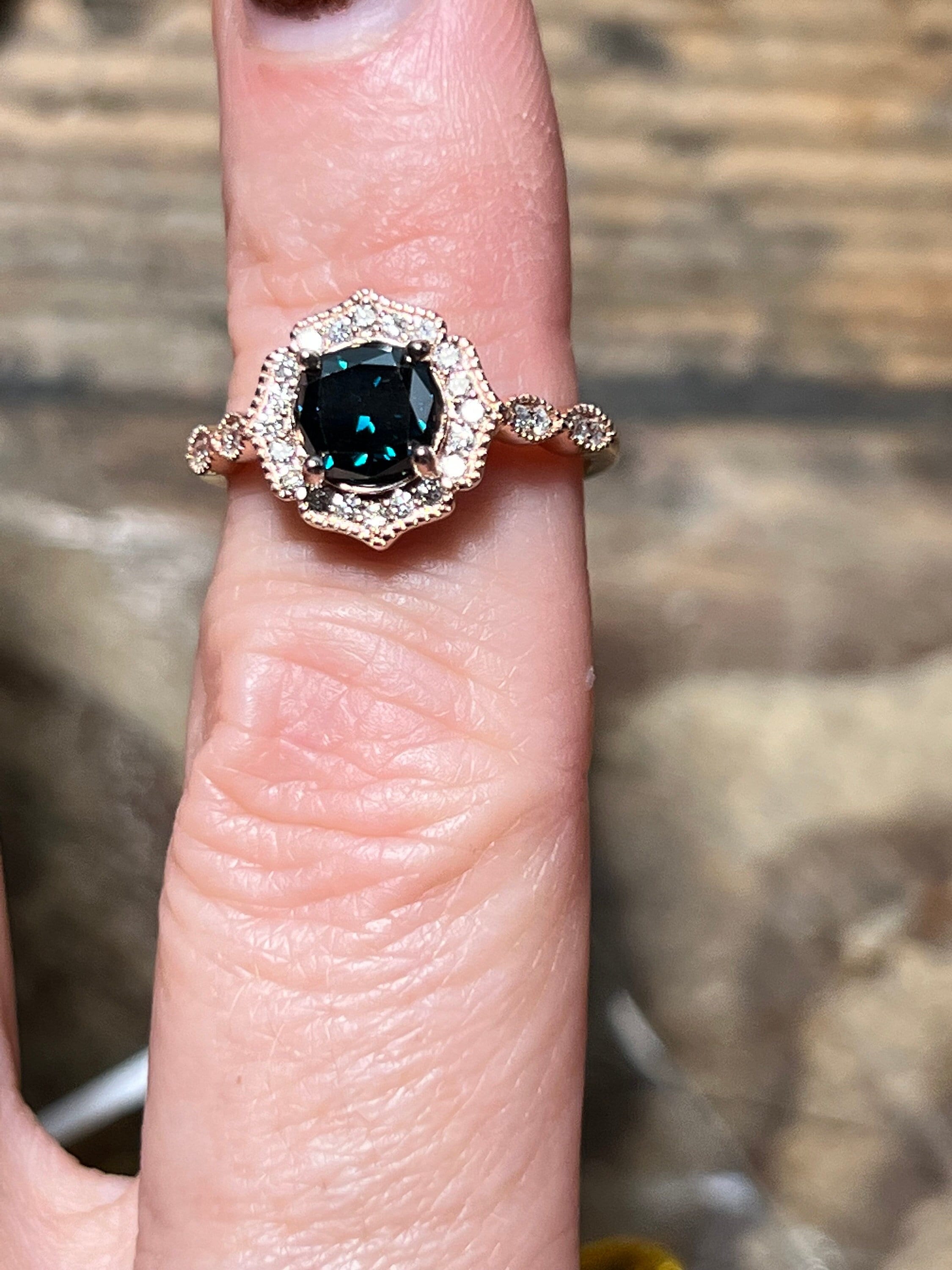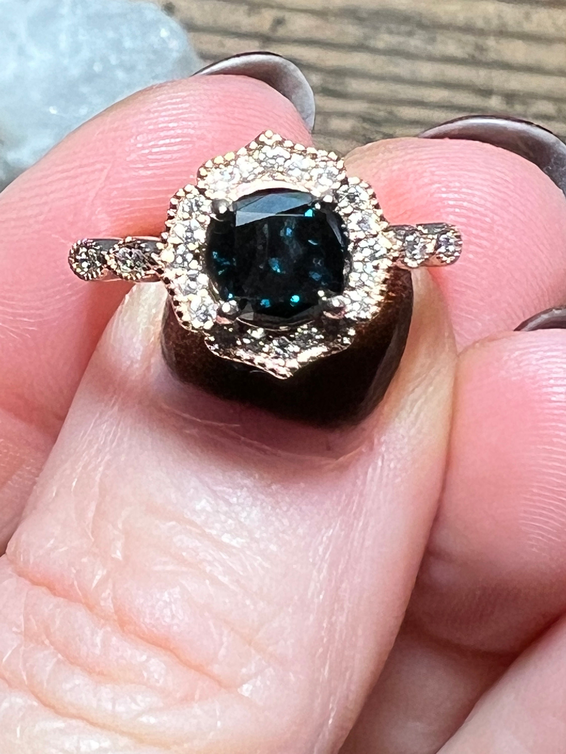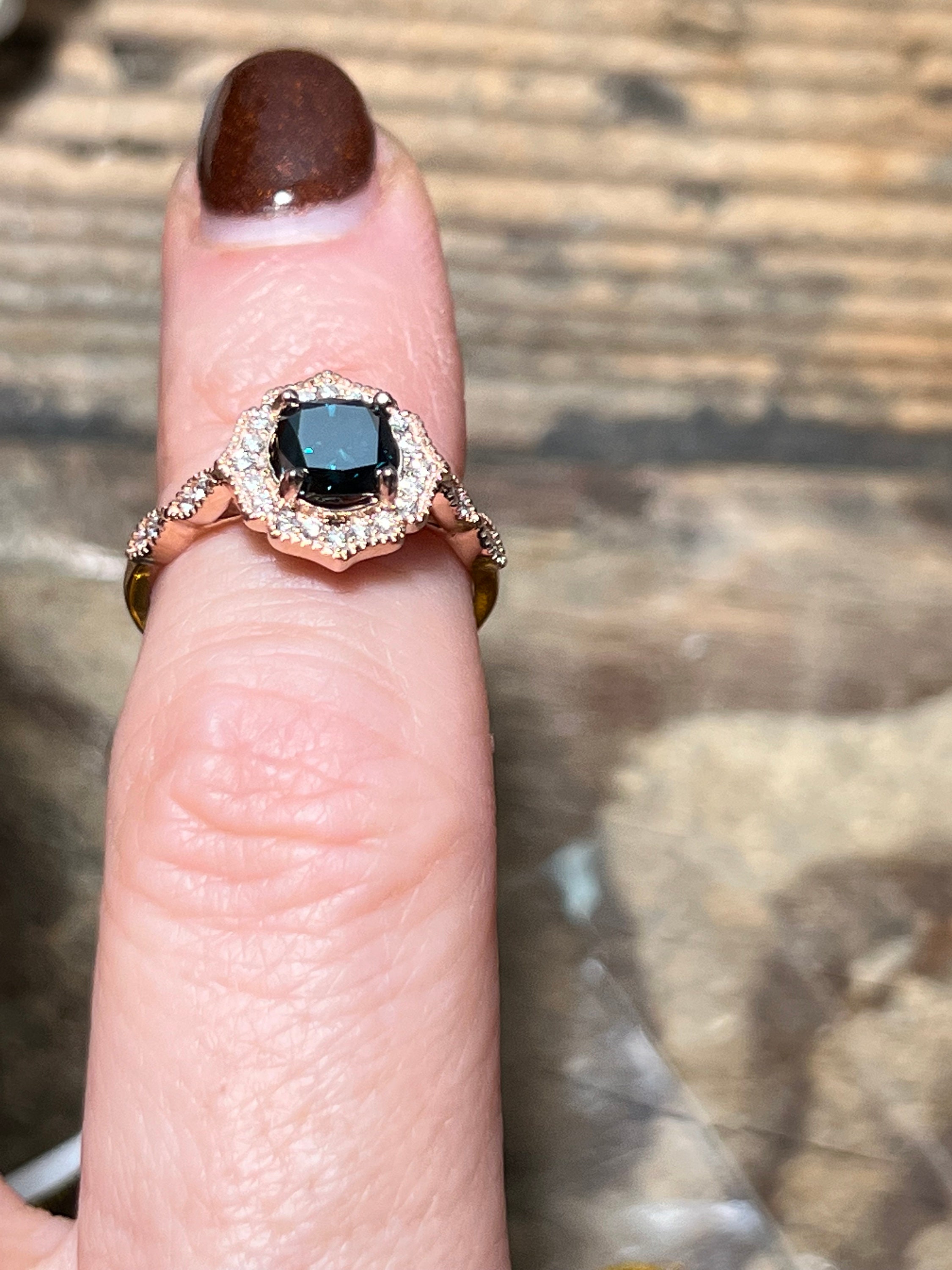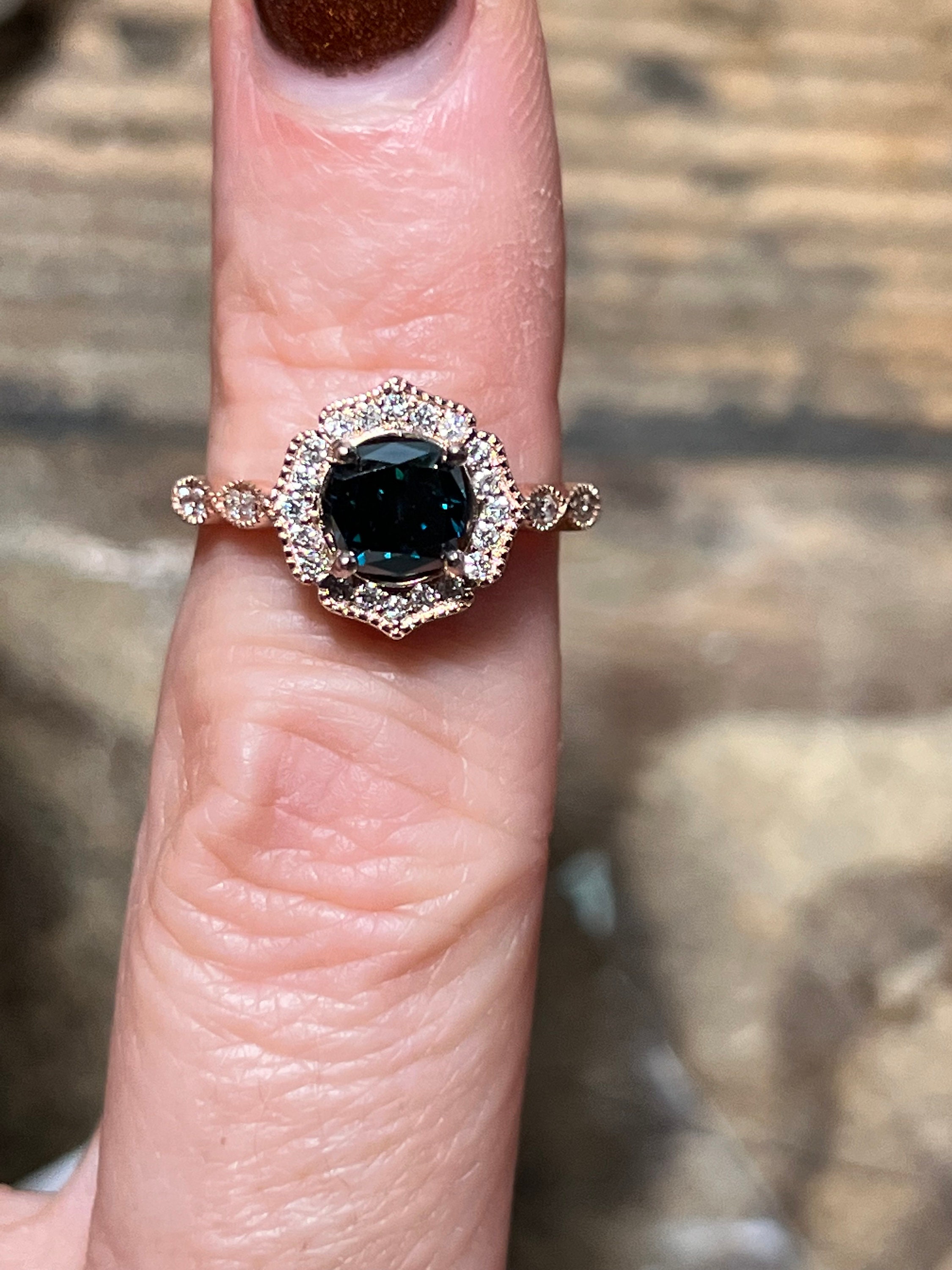 Rare 14K Pink Gold 1CT Round Brilliant Cut Fancy Deep Blue Lab Grown Diamond Engagement Ring Size 6.5. A rare diamond for a rare relationship or person.