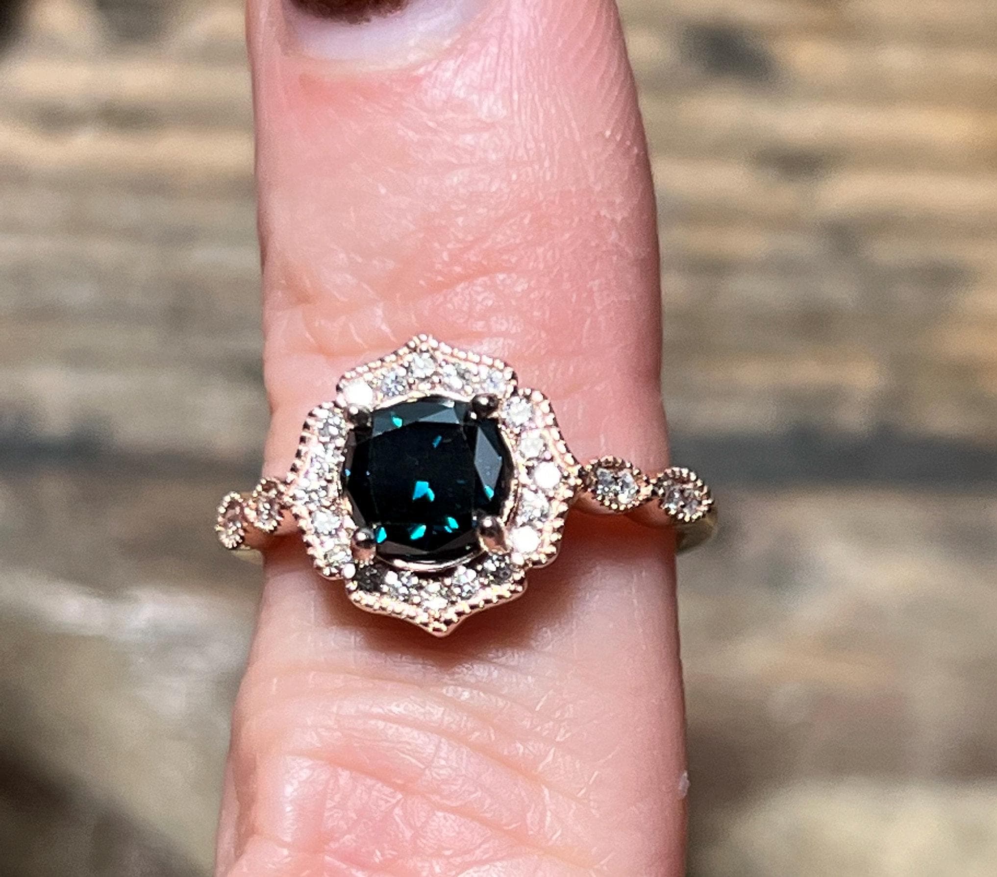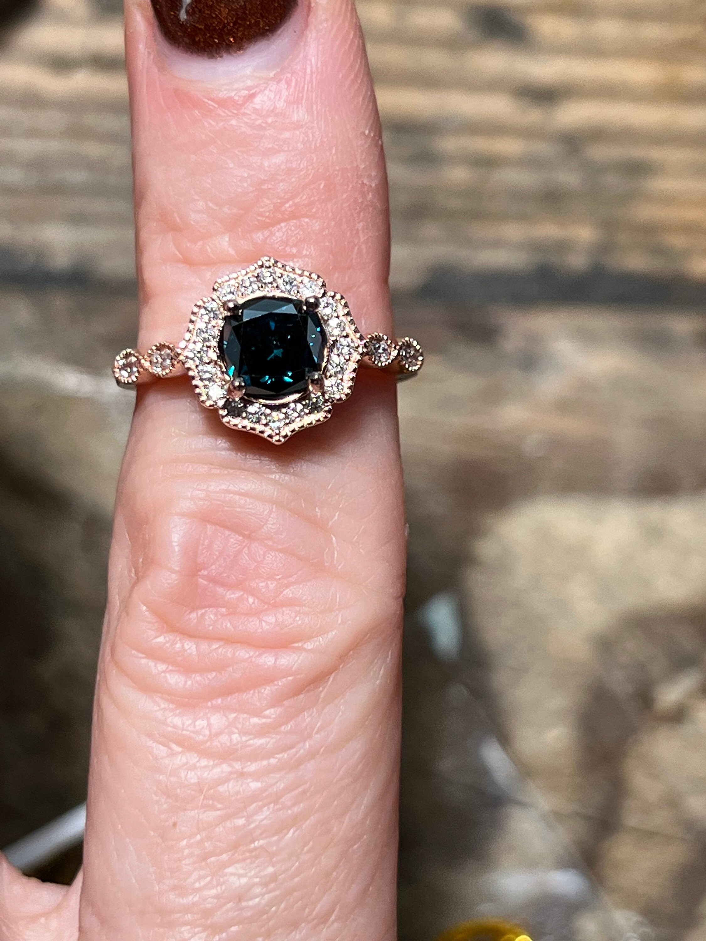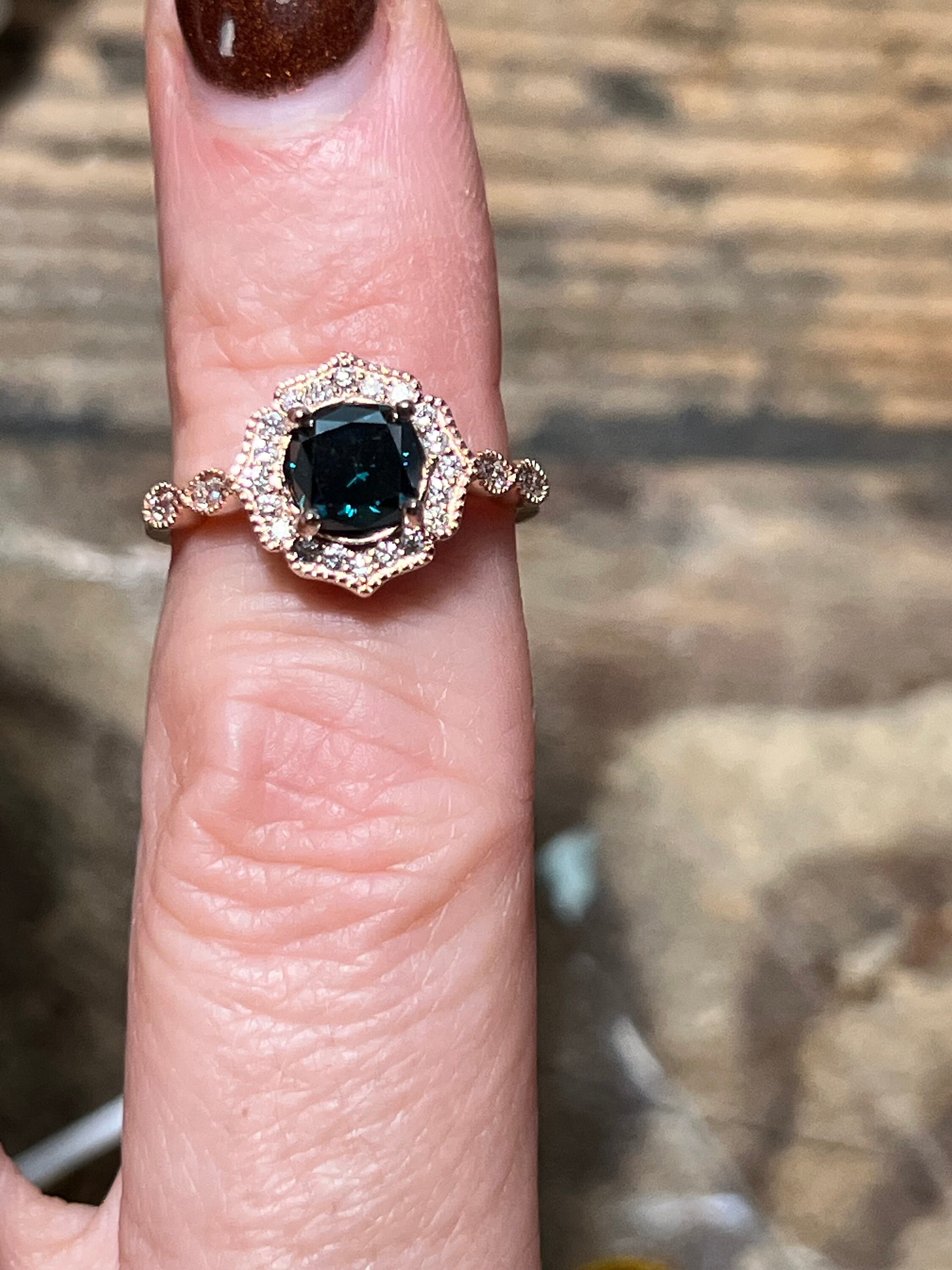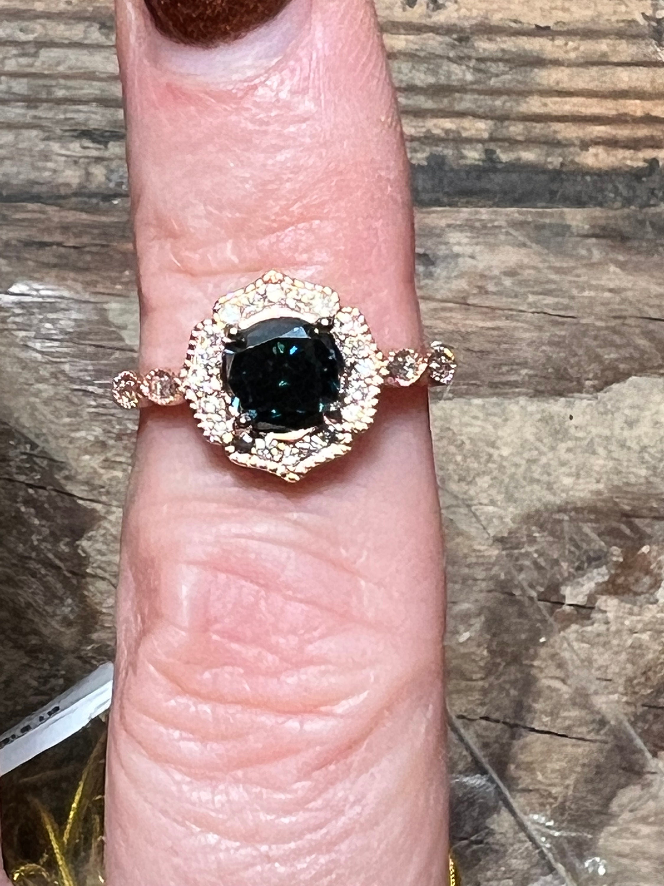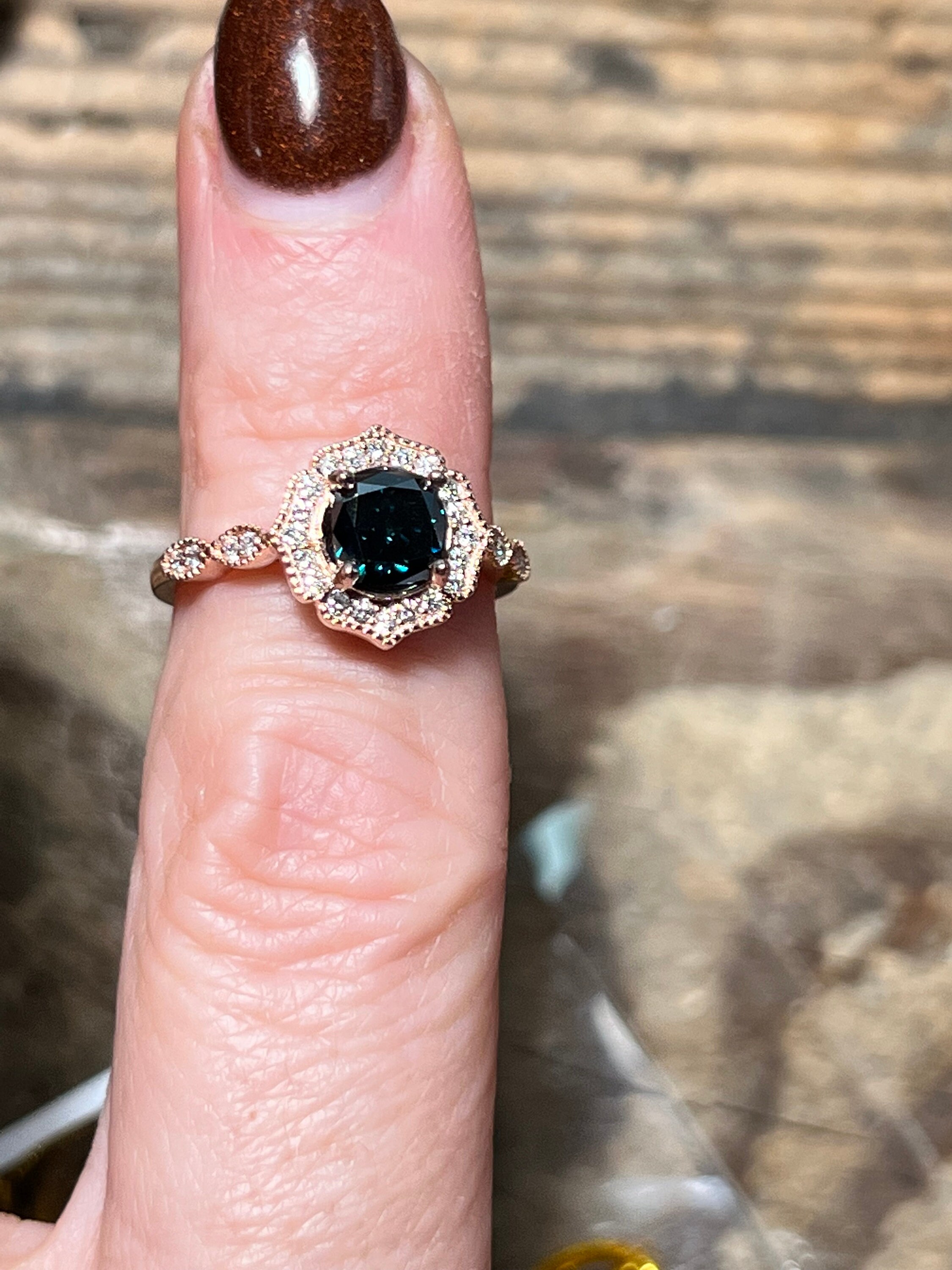 Rare 14K Pink Gold 1CT Round Brilliant Cut Fancy Deep Blue Lab Grown Diamond Engagement Ring Size 6.5. A rare diamond for a rare relationship or person.