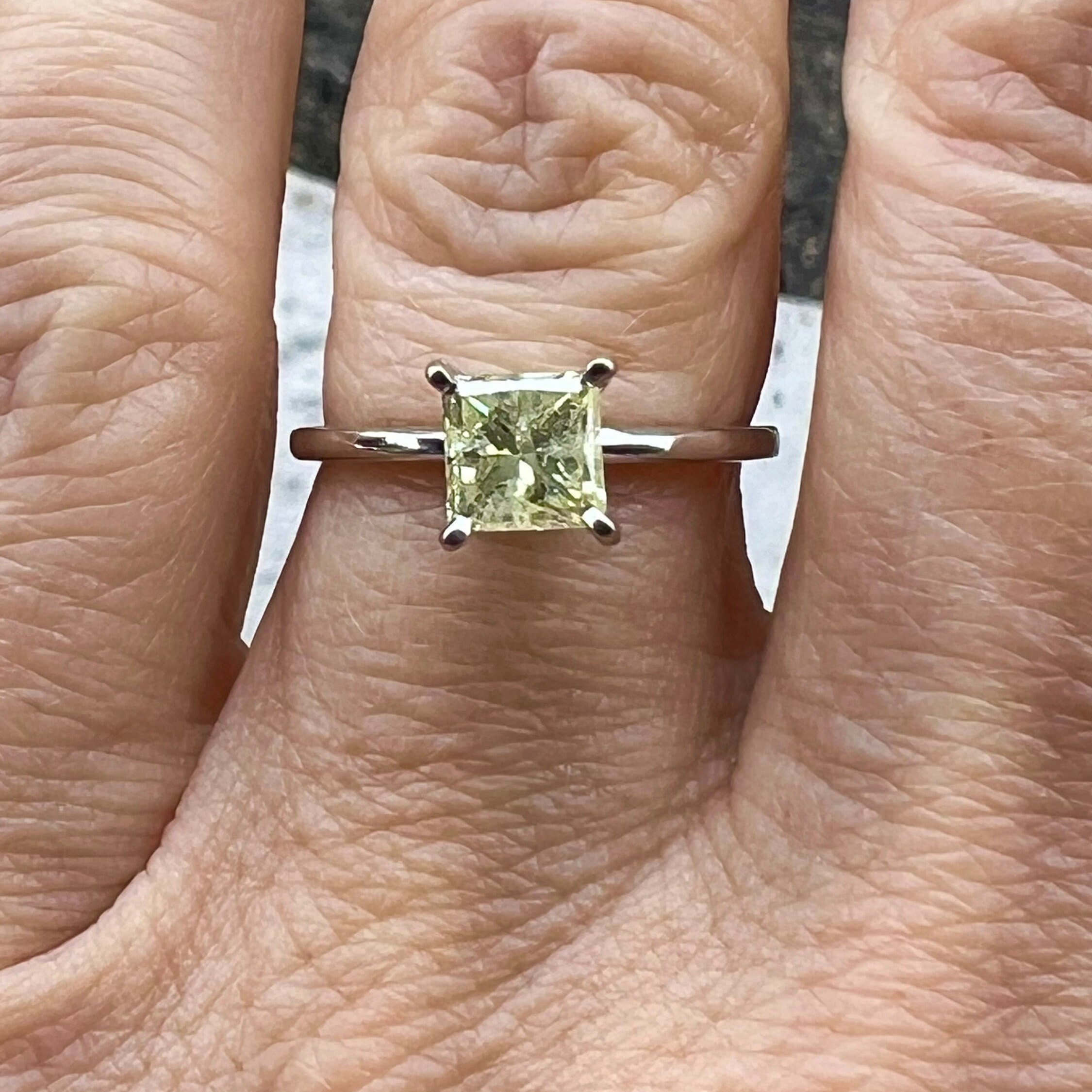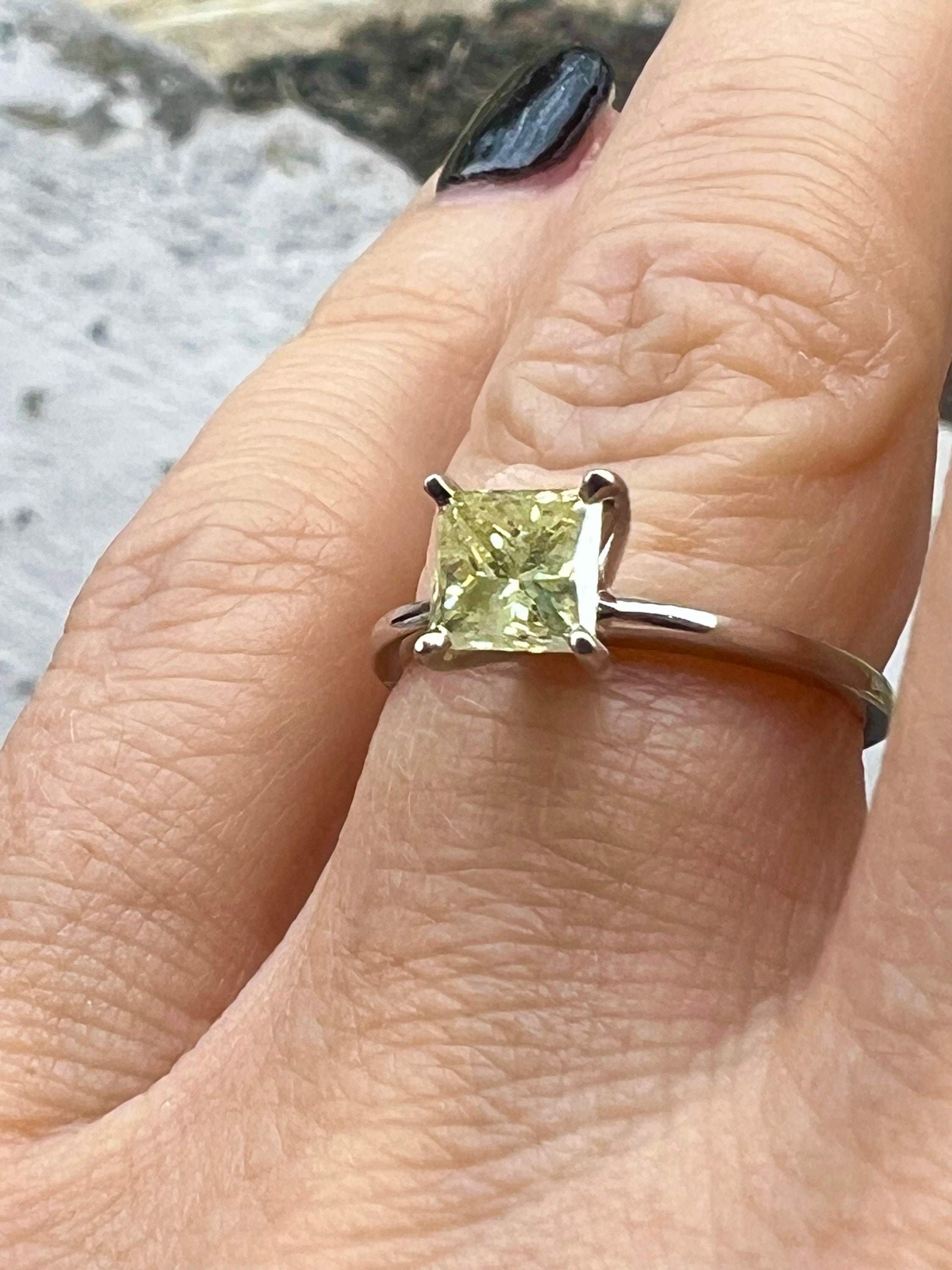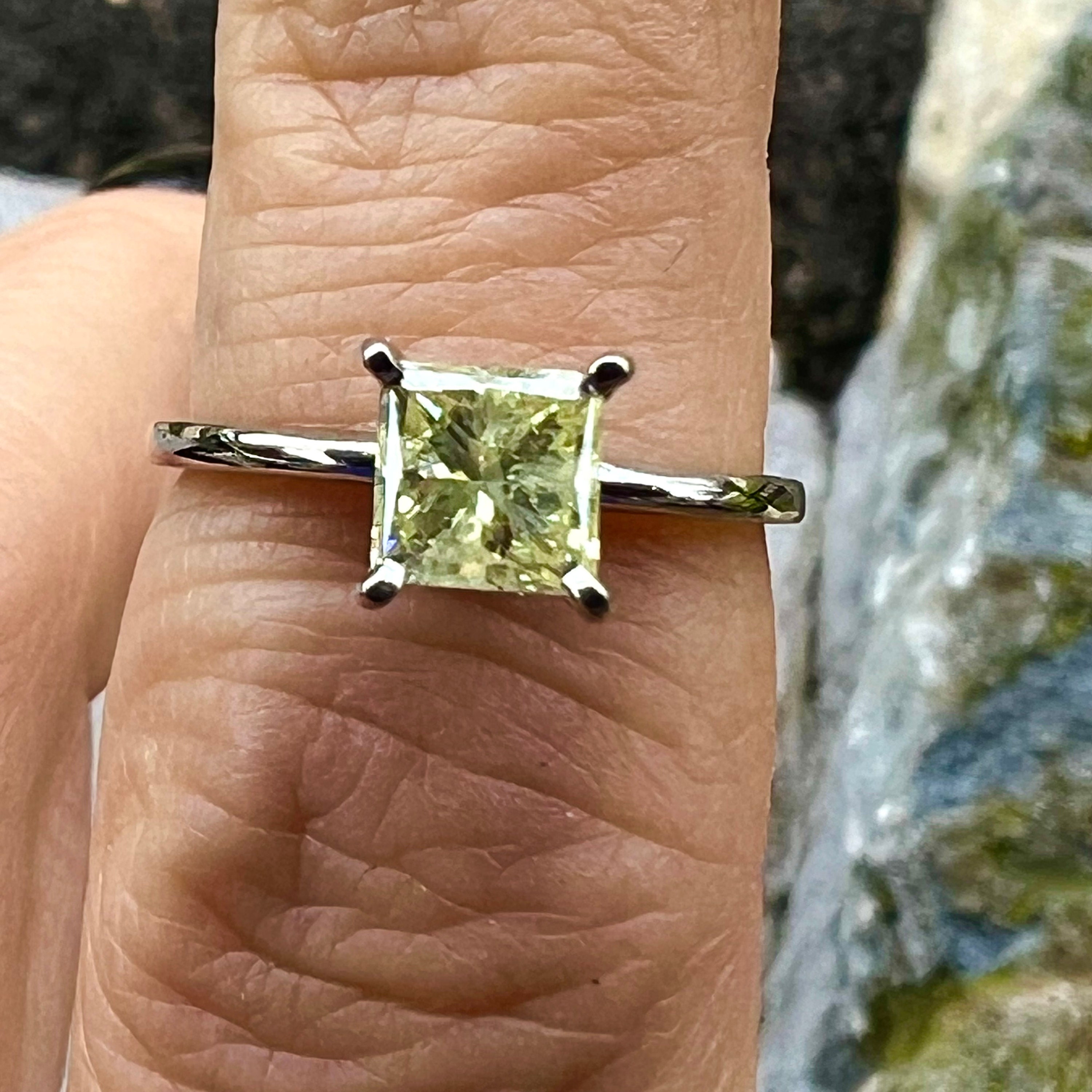 Earth Mined 1.01CT Princess Cut Fancy Vivid Yellow VVS1 Diamond Solitaire Ring Size 6.5