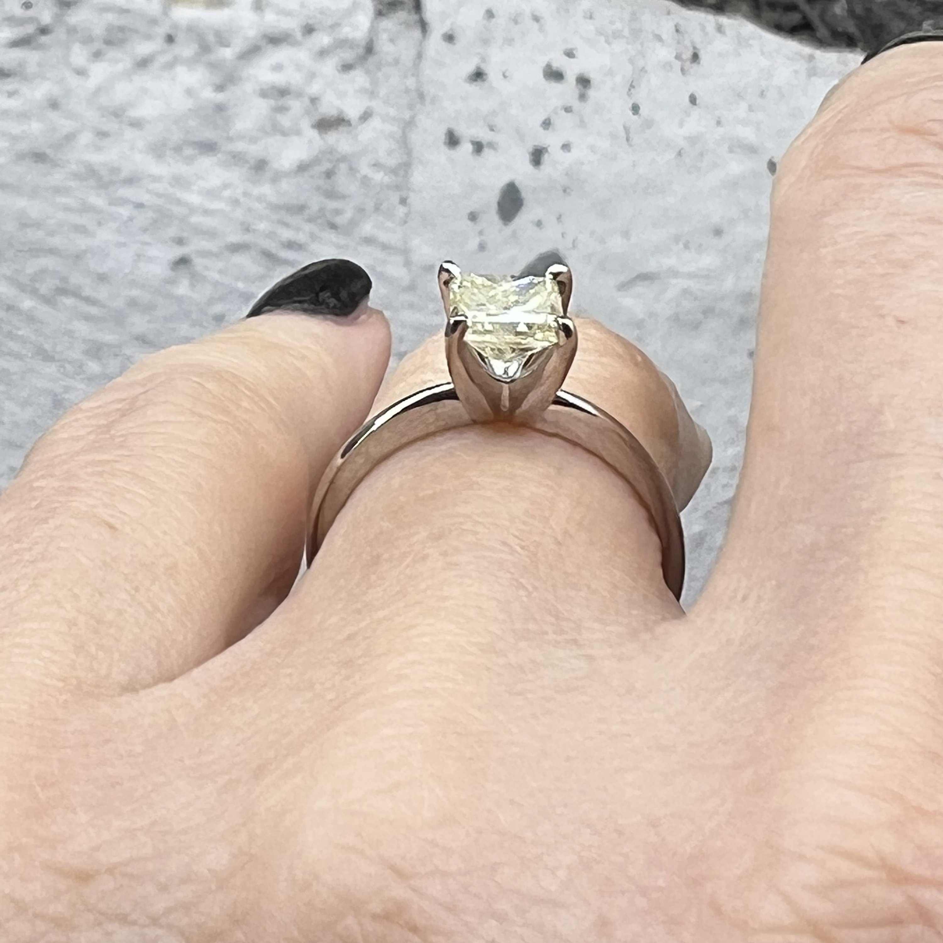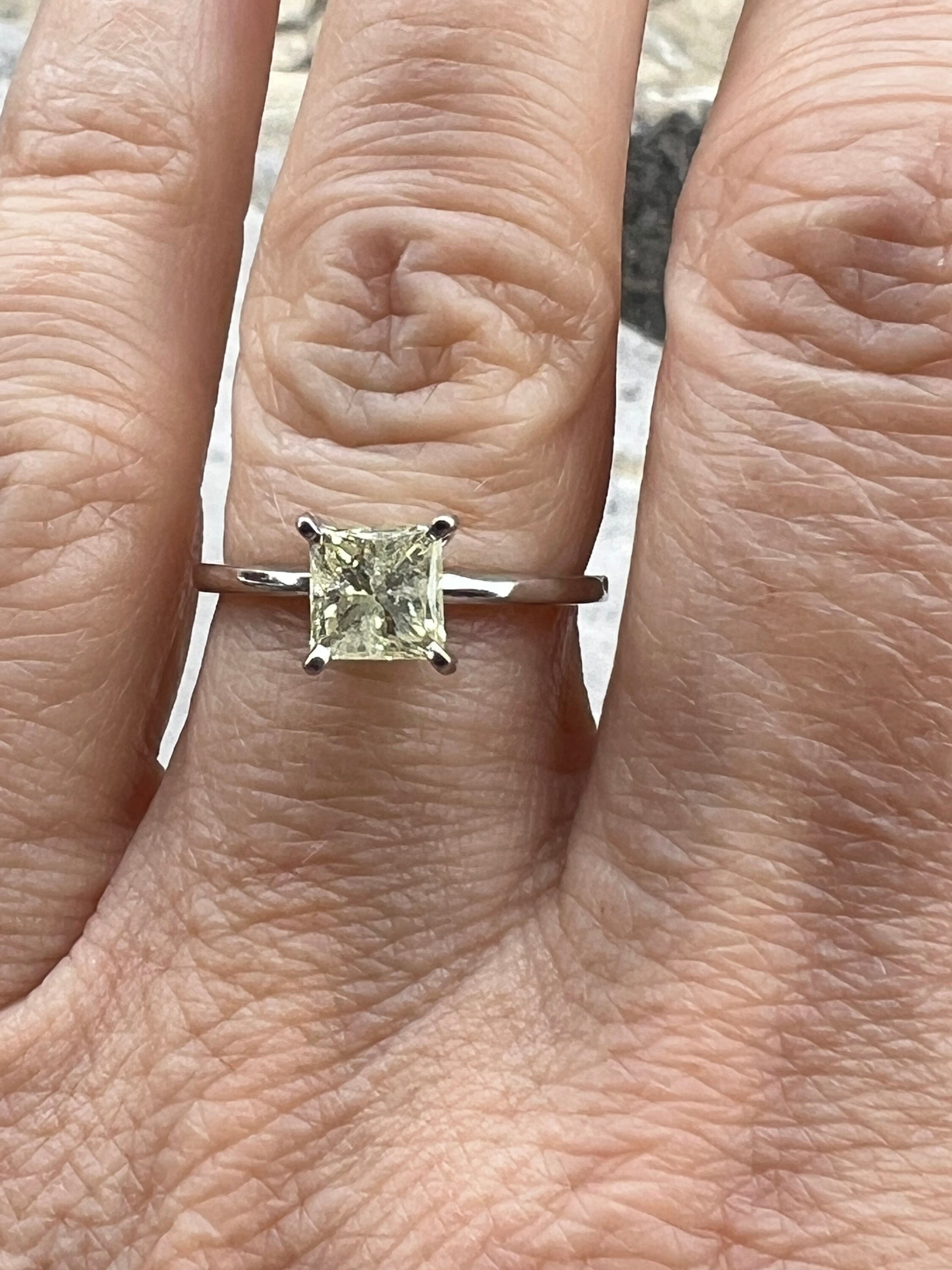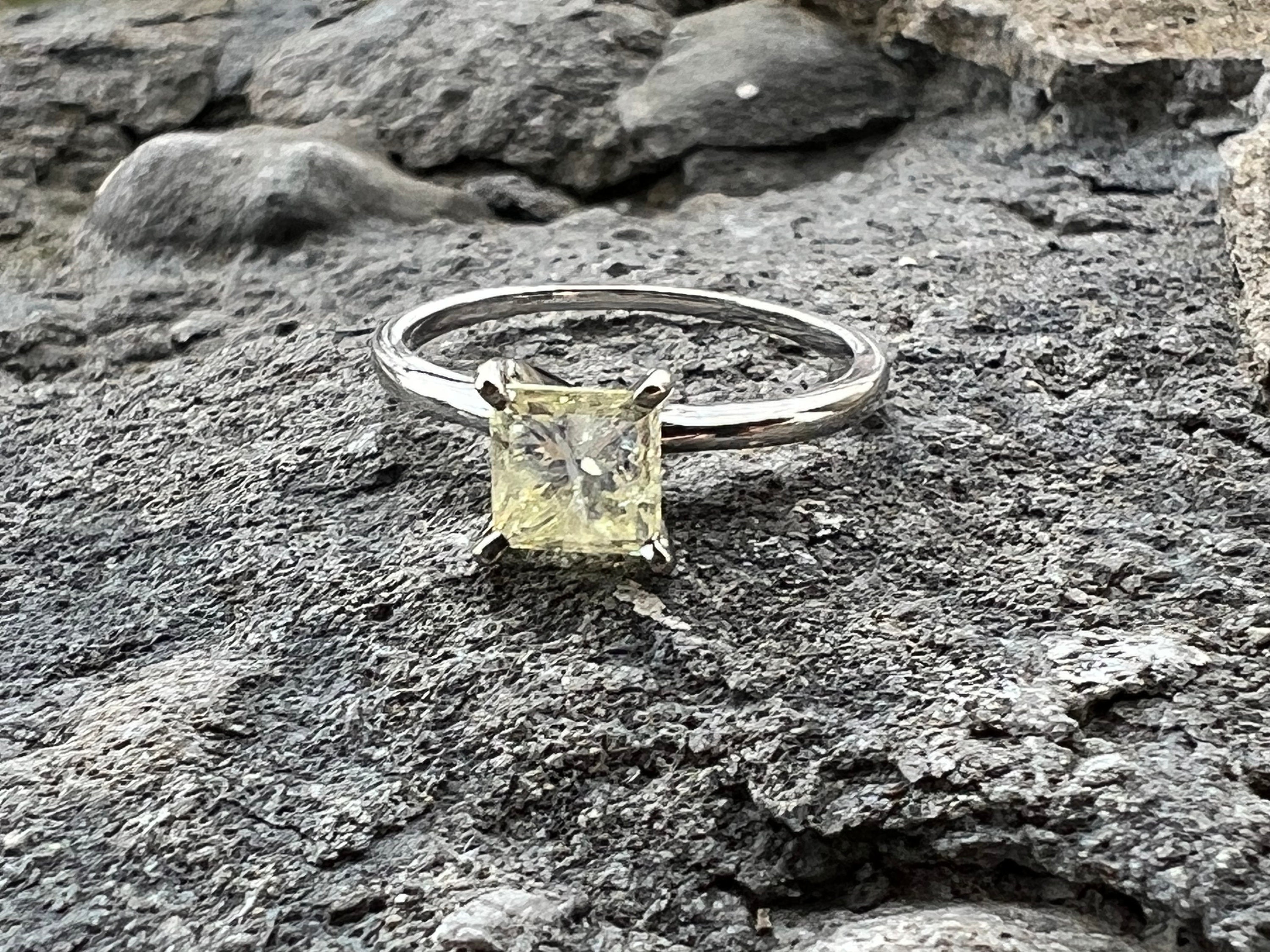 Earth Mined 1.01CT Princess Cut Fancy Vivid Yellow VVS1 Diamond Solitaire Ring Size 6.5