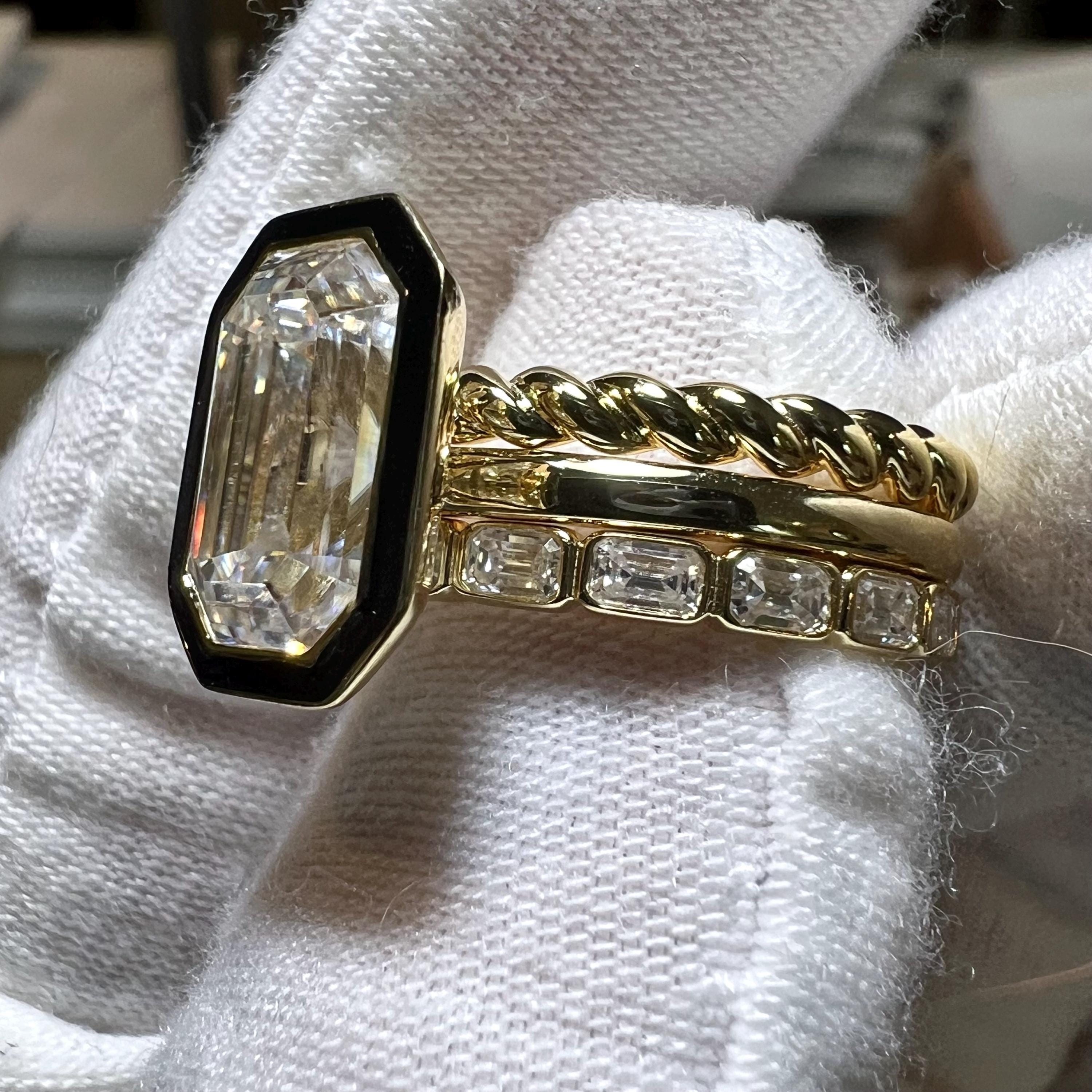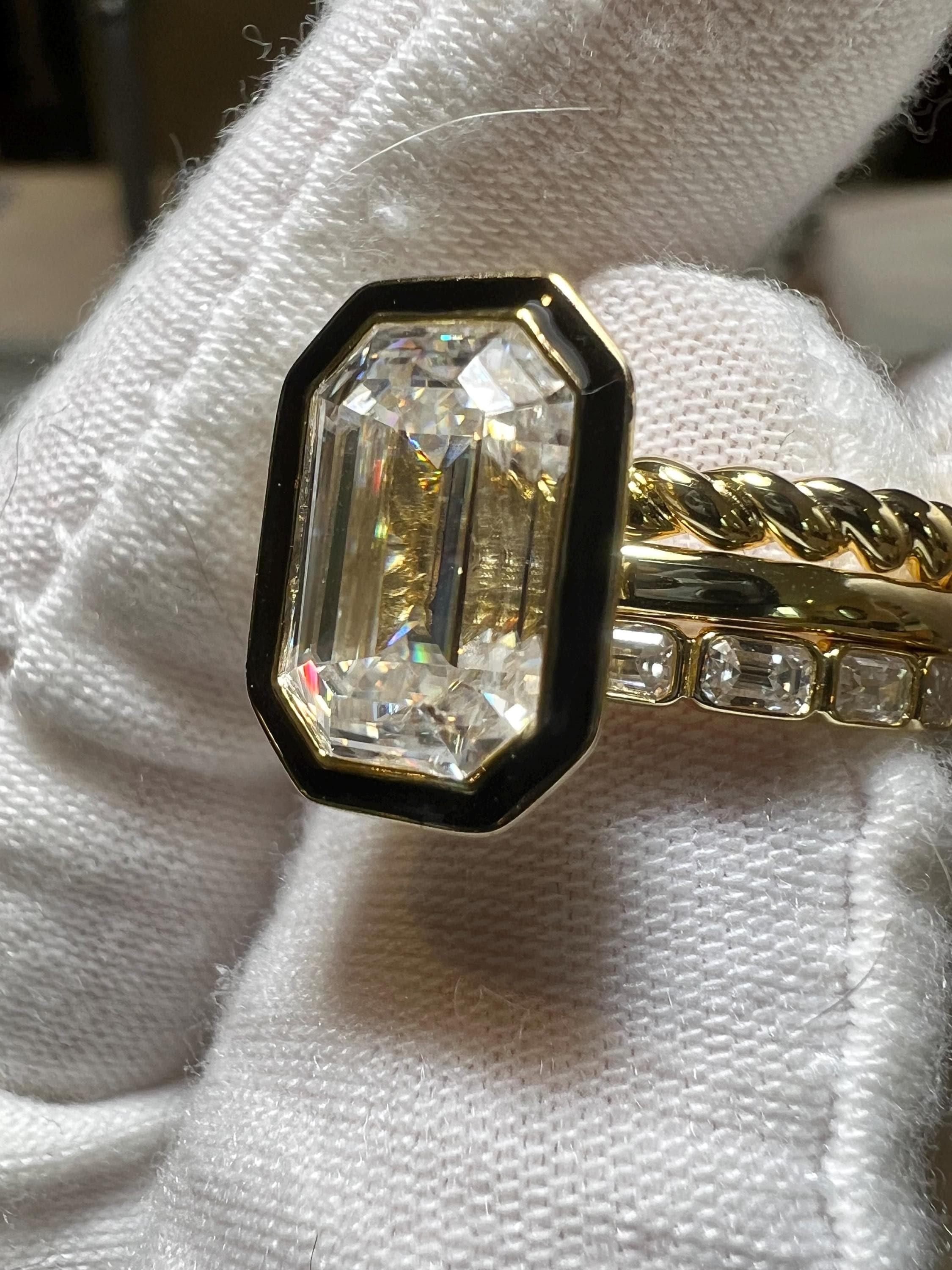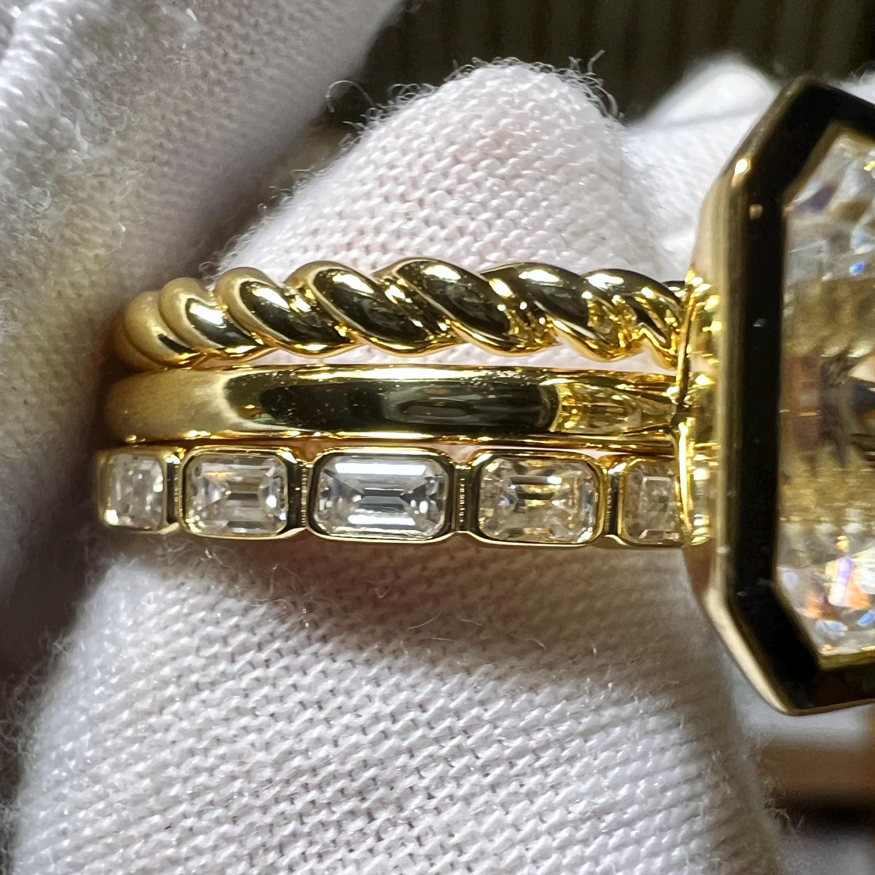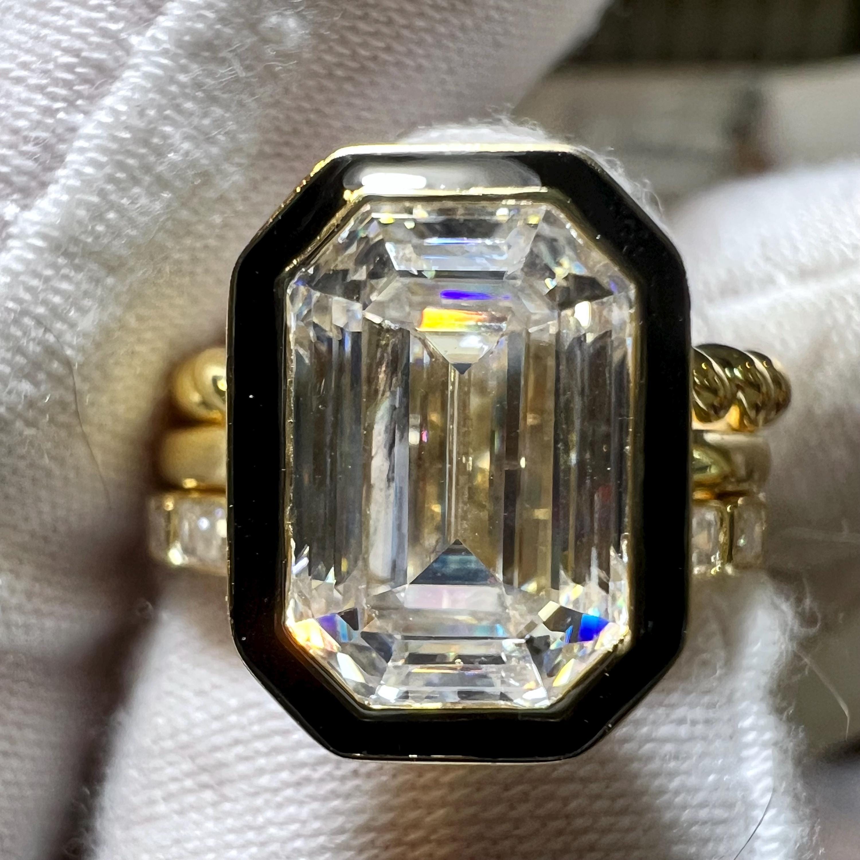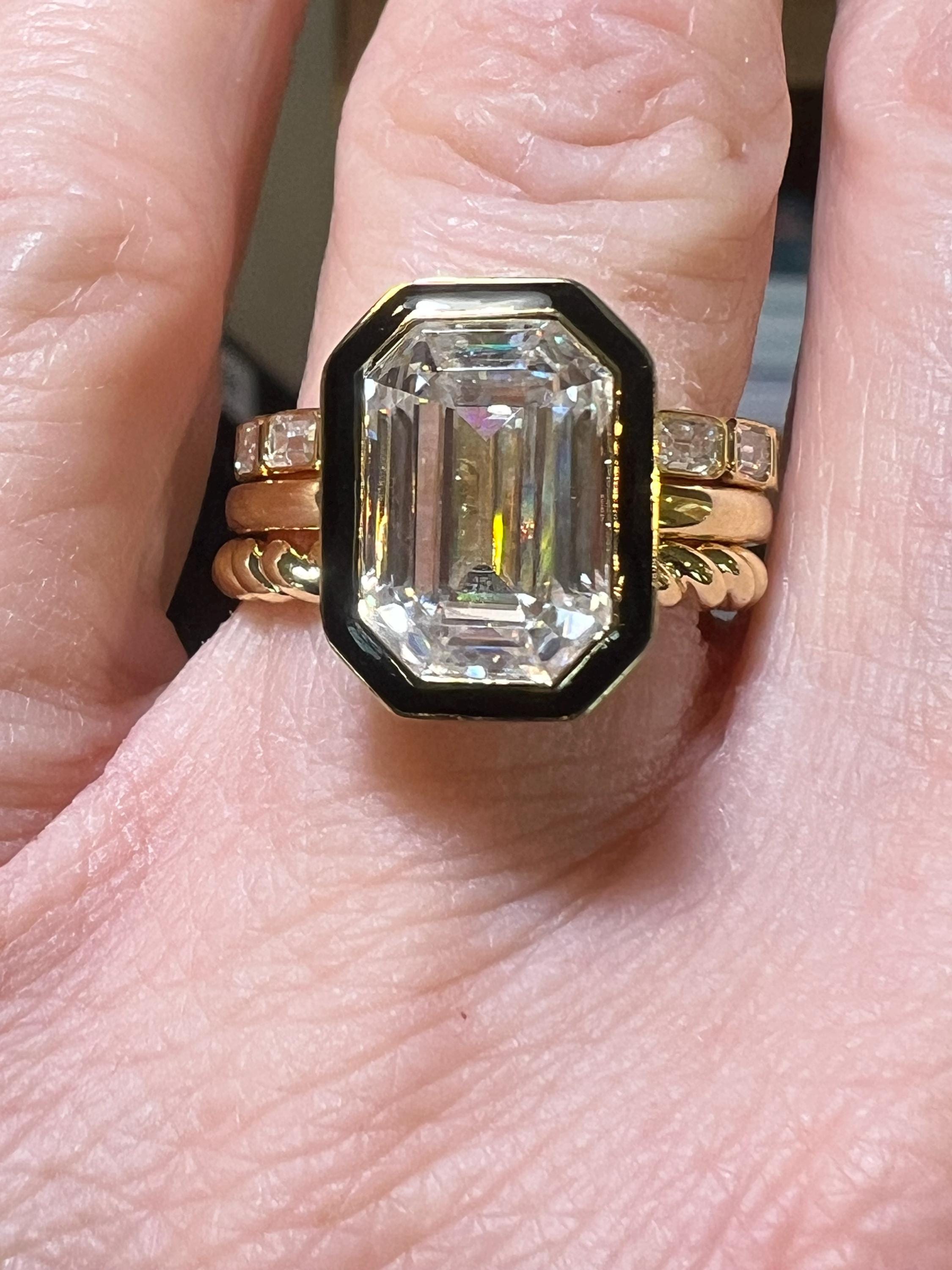 Rare Certified 4.51CT D VVS2 Modified Rectangular Cushion Step Cut Lab Grown Diamond Three Ring Set