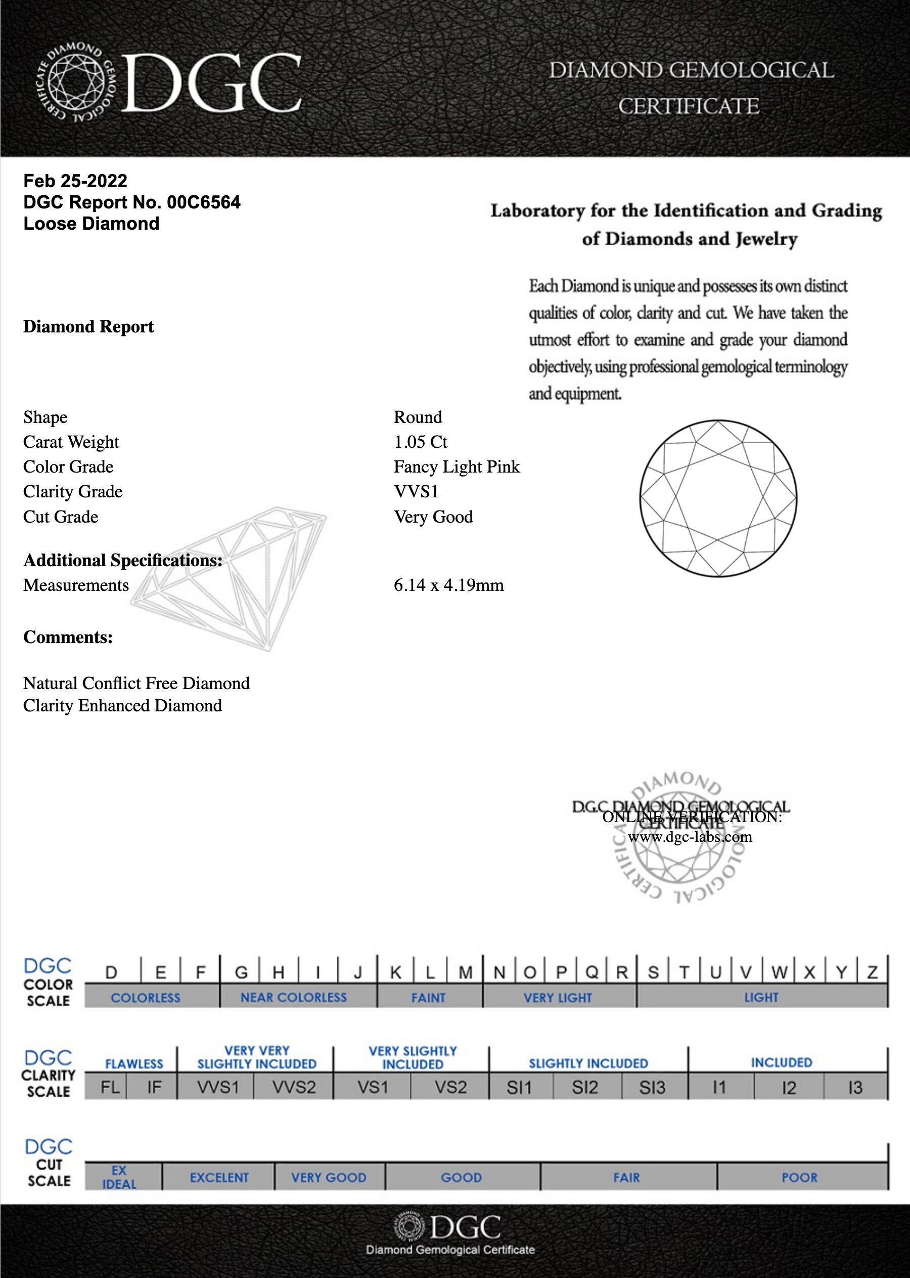 A Certified Earth Mined Fancy Light Pink VVS1 Diamond 14K Rose Gold Size 6.5