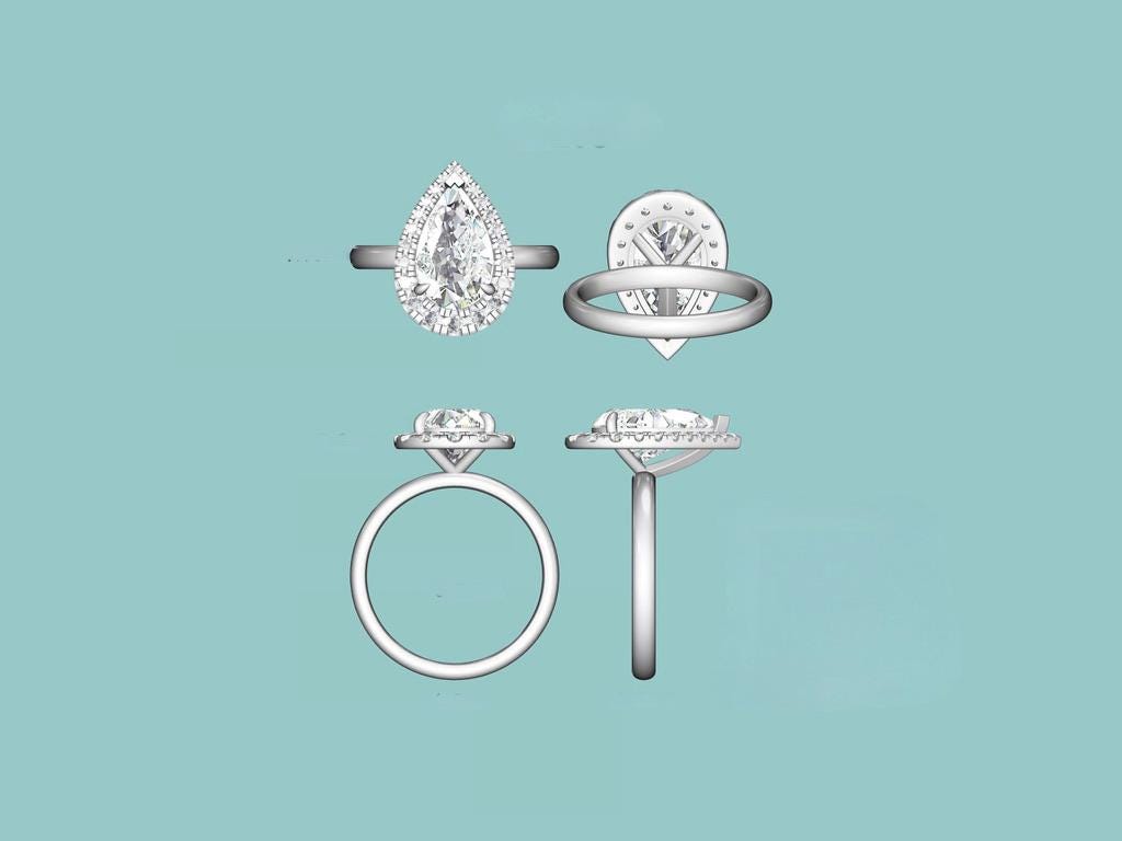 GIA Pear 3ct N SI1 2EX Earth Mined Diamond Engagement Ring