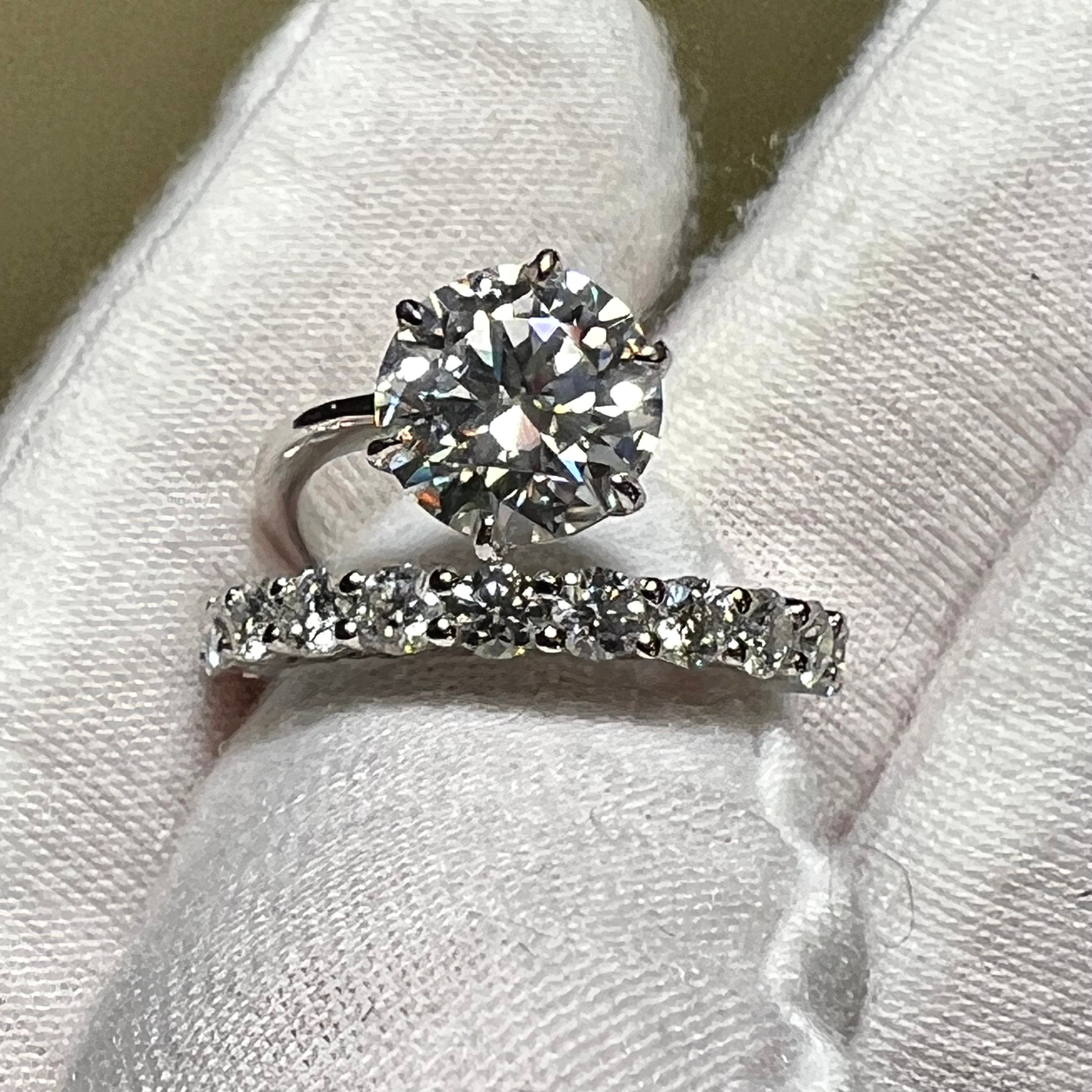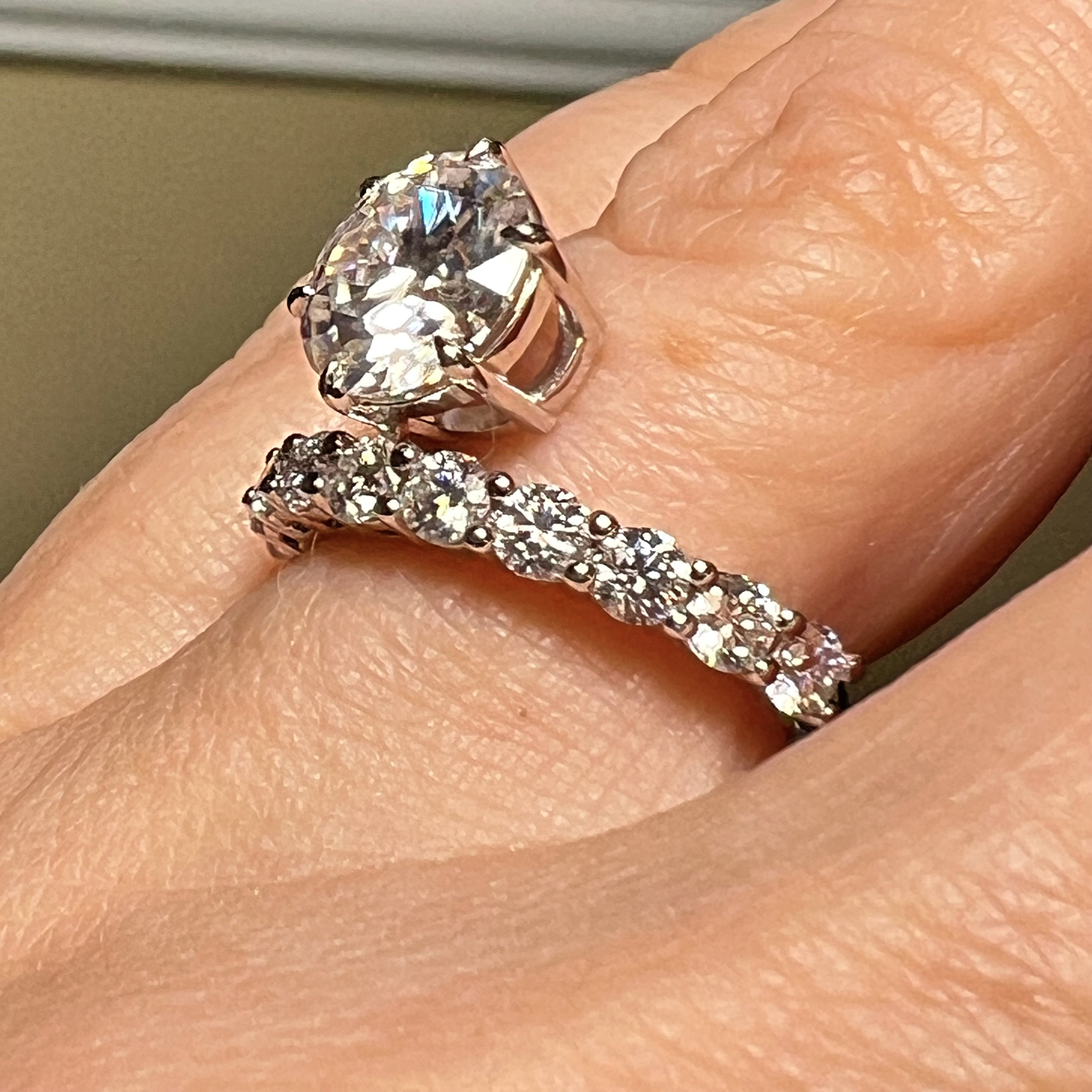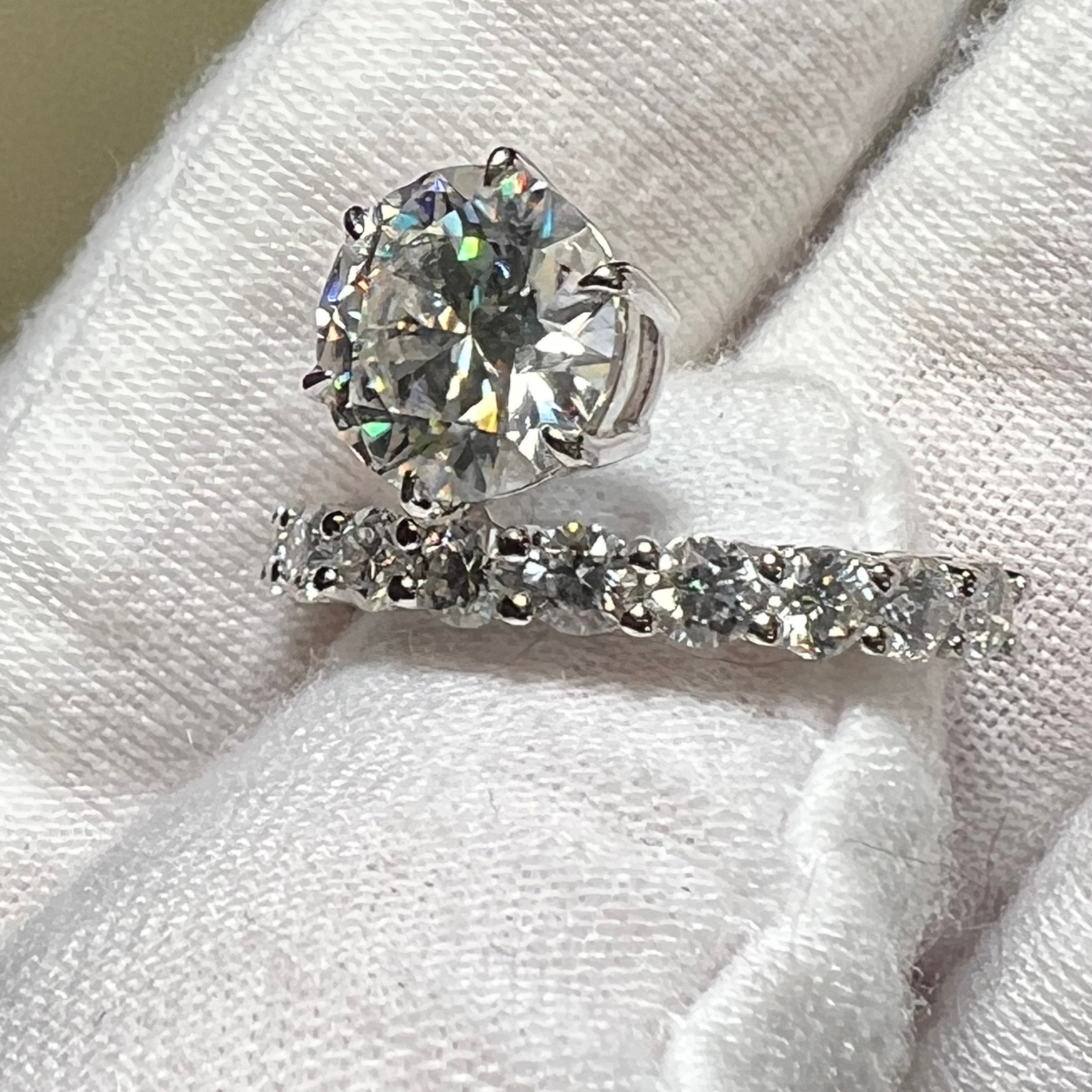 Certified 3CT Round Brilliant Cut Vanishing Edge Half Eternity Ring / Bridal Set