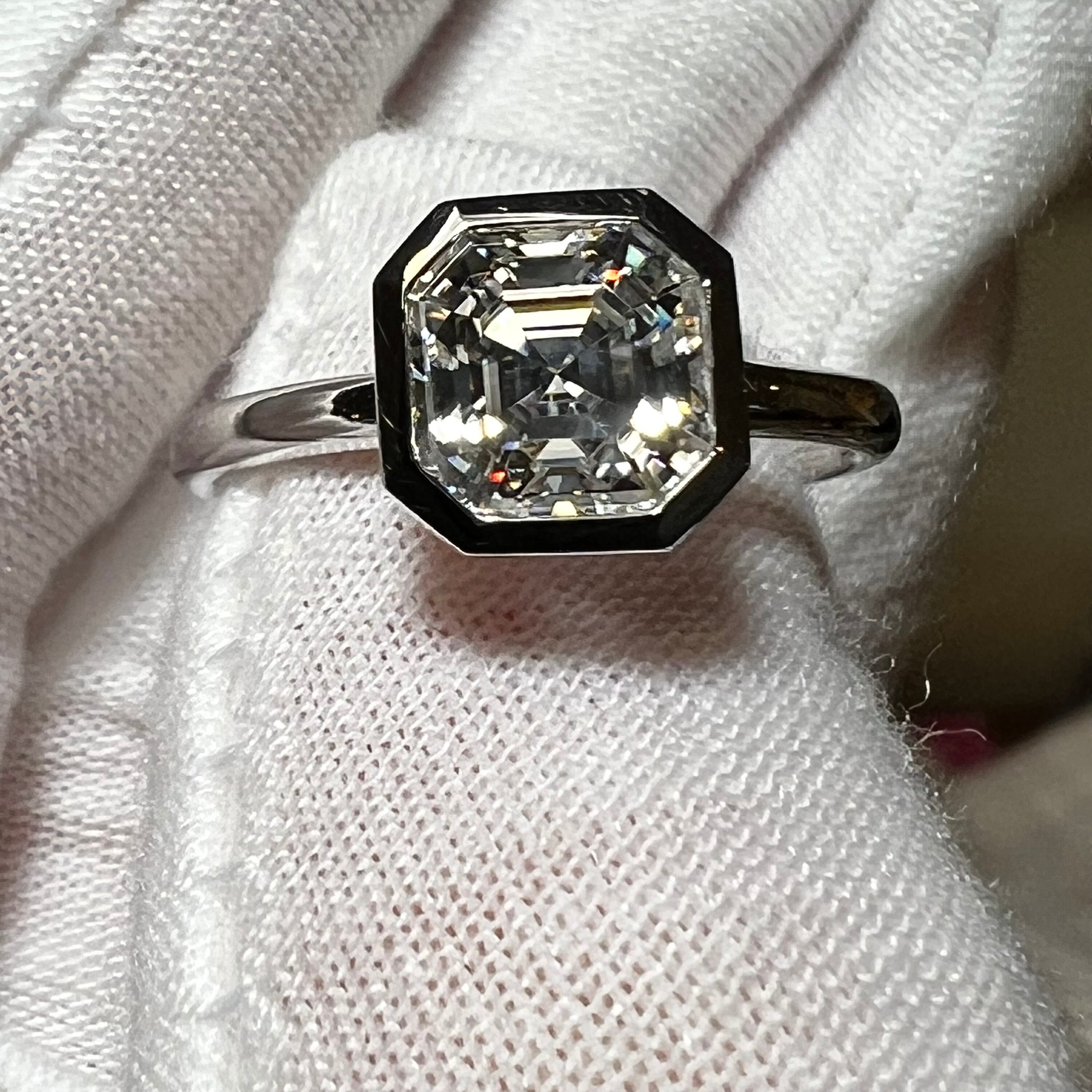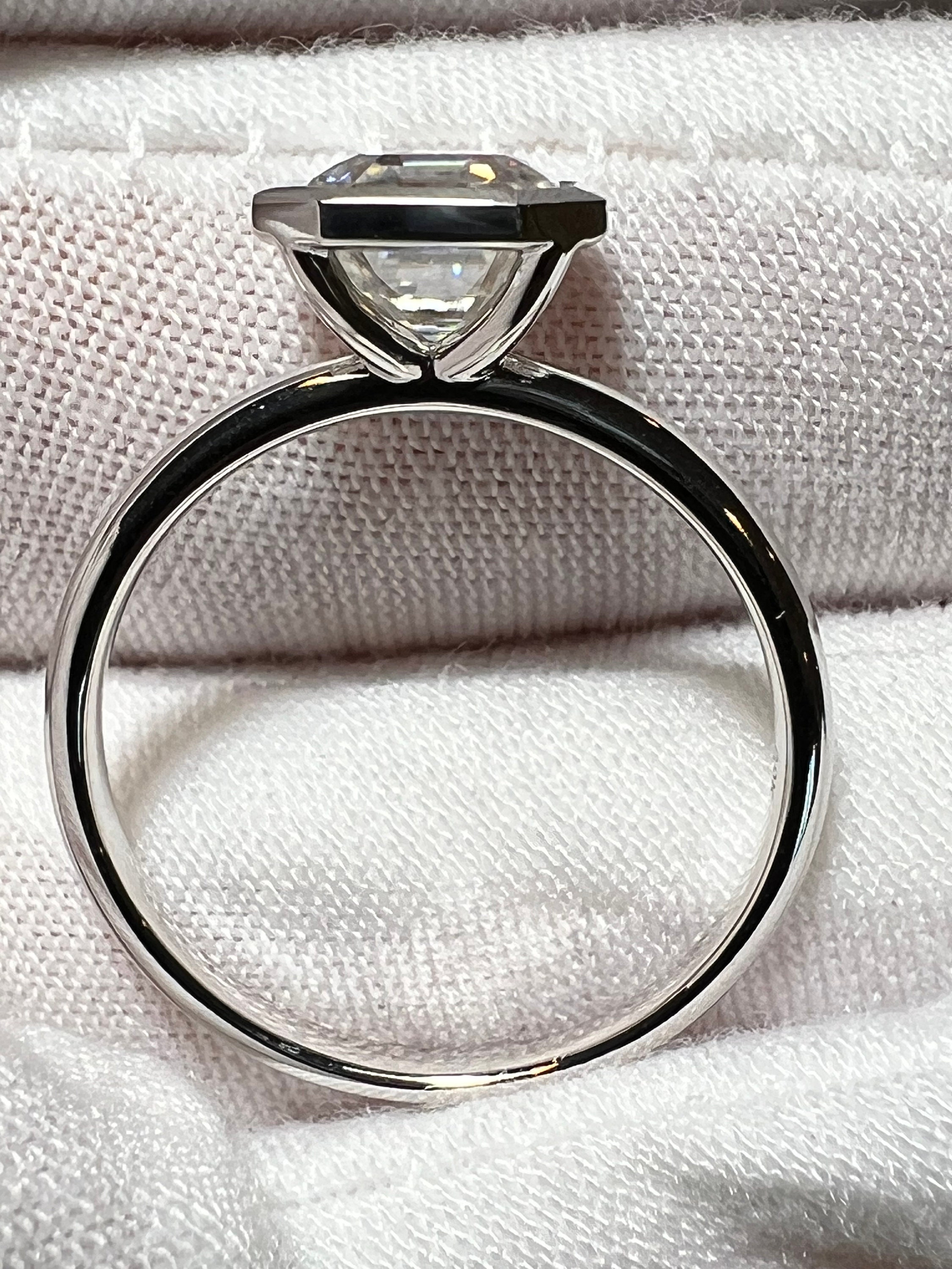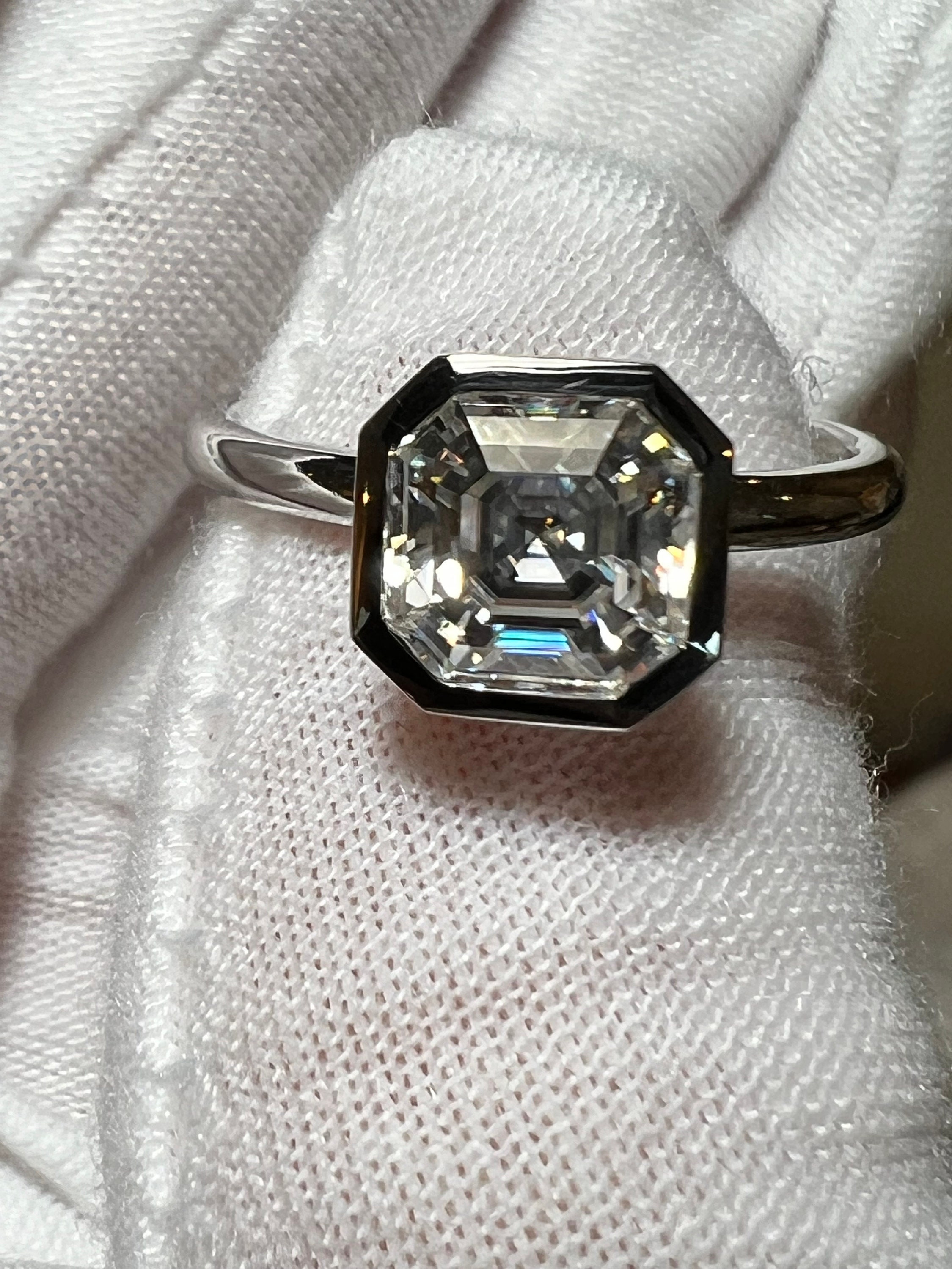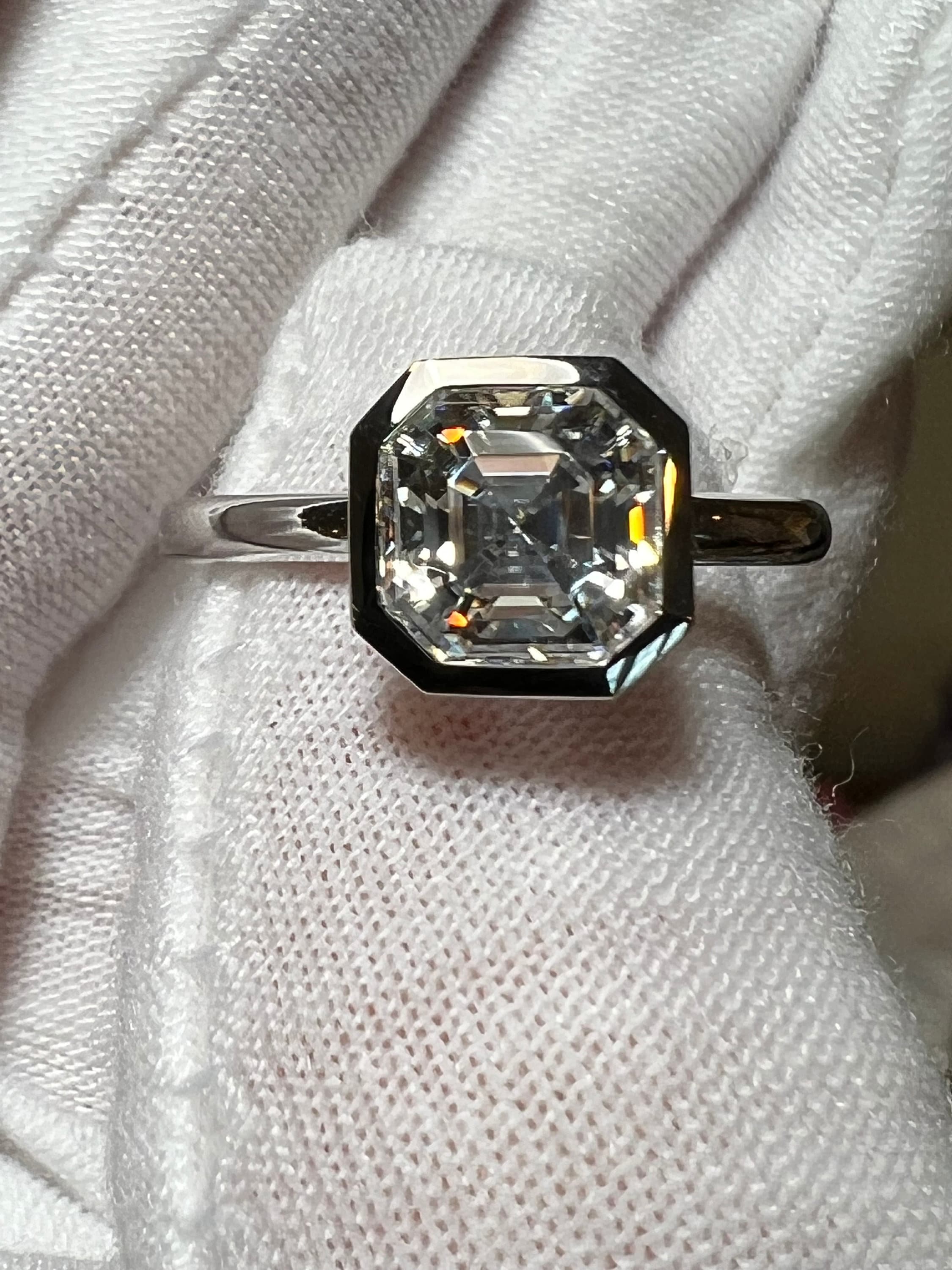 IGI 2CT Asscher Square Emerald F VVS2 2EX Bezel Set Diamond Engagement Ring - Customizable, message me.