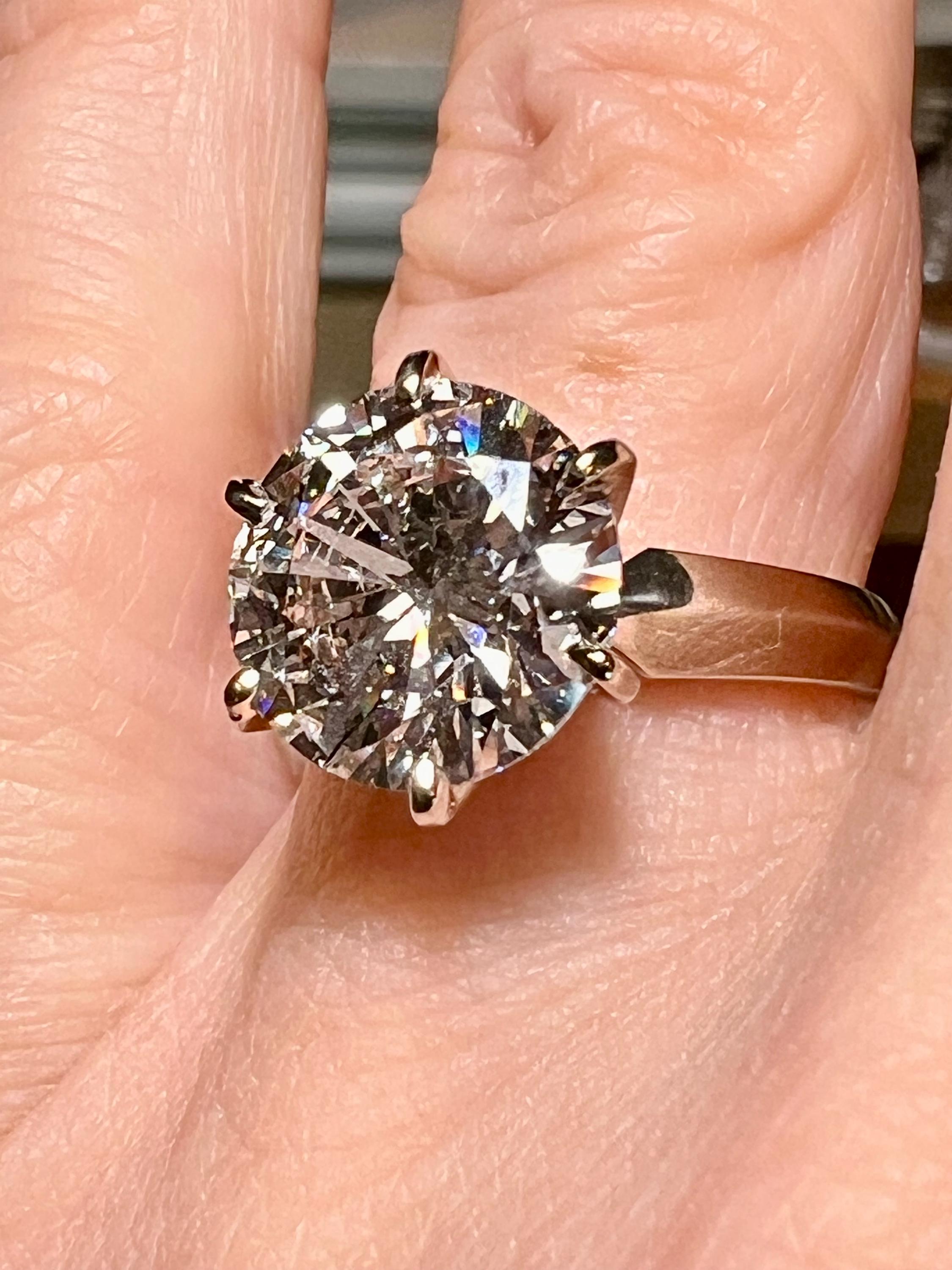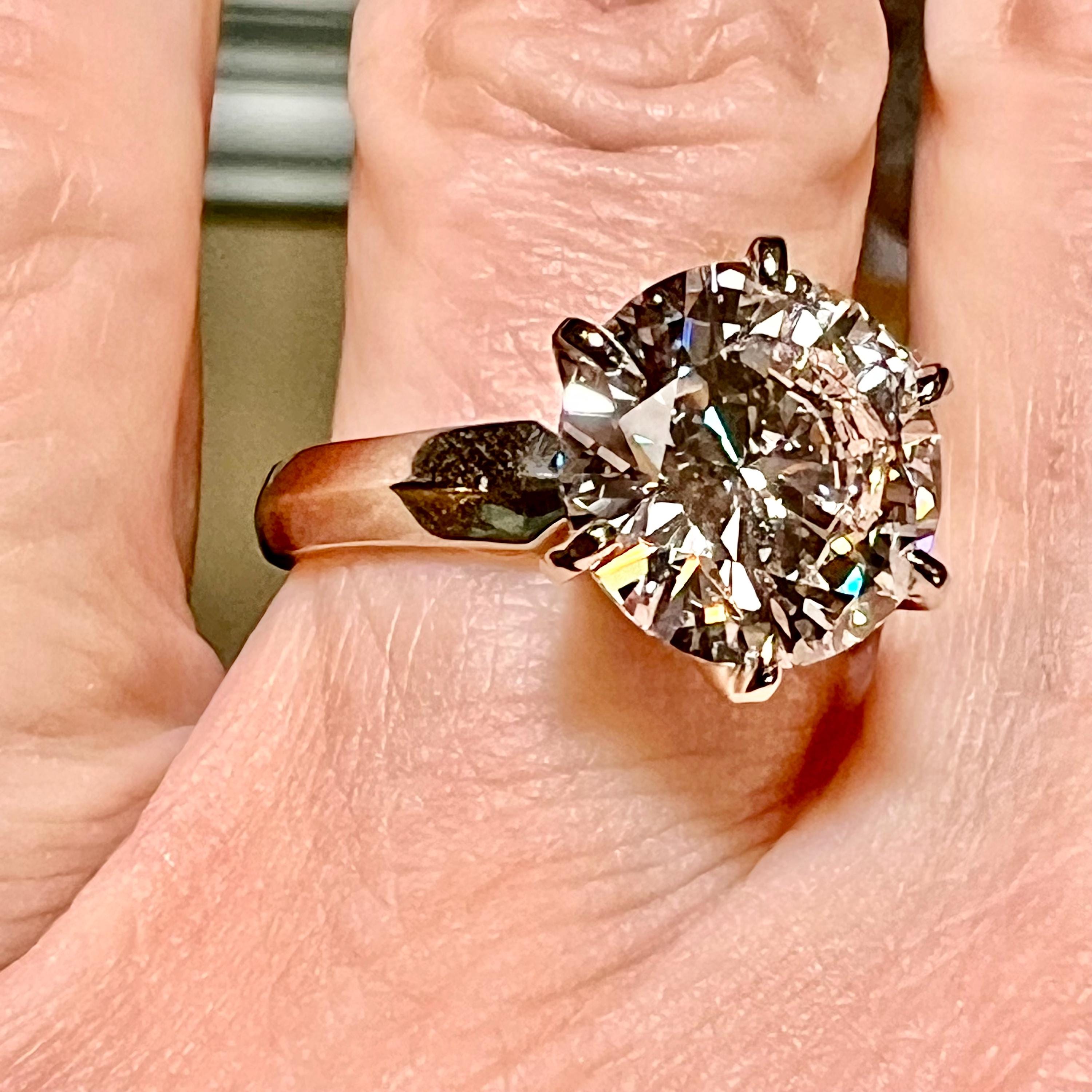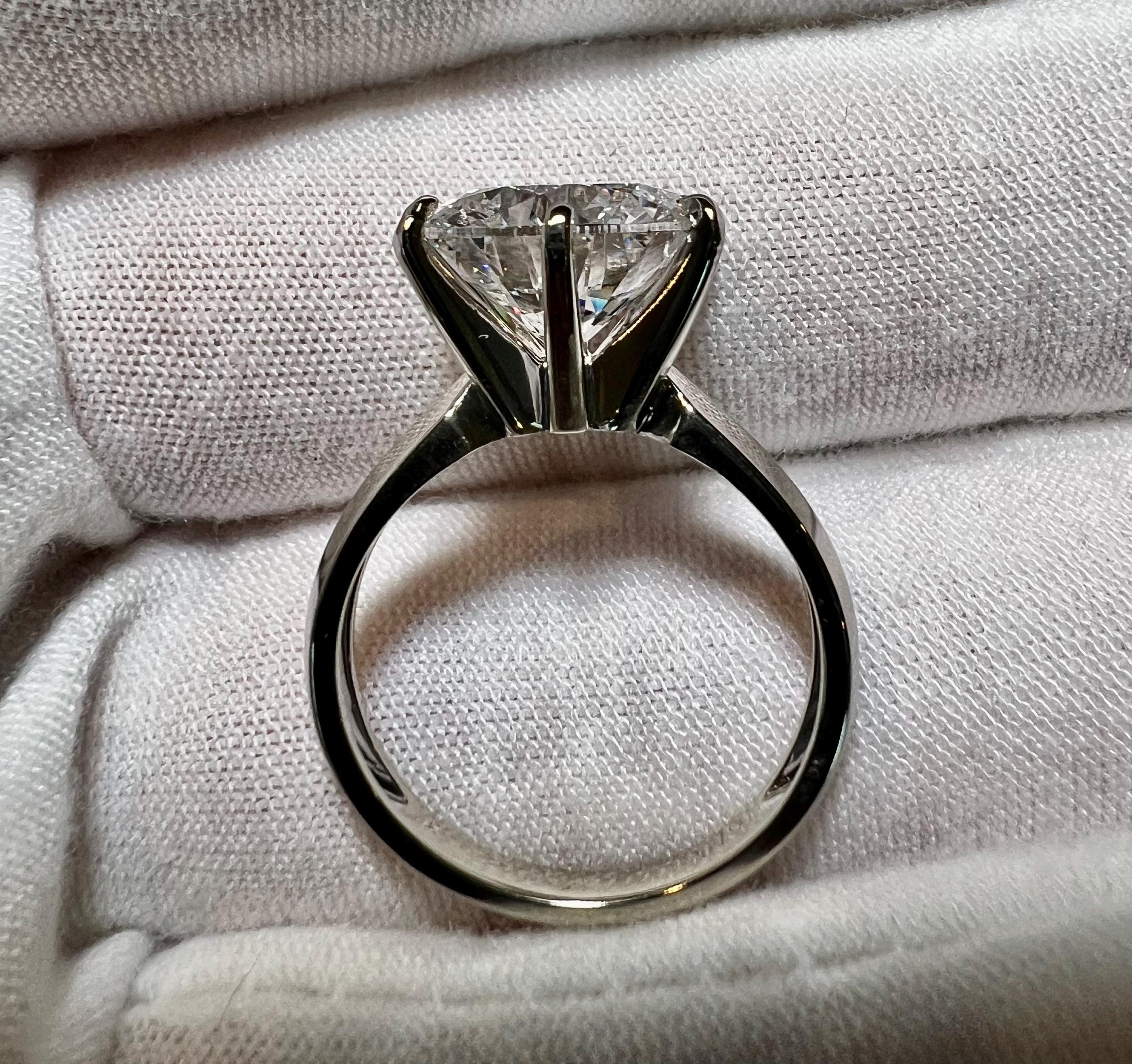 Certified 14K White Gold 5.02CT Round Brilliant Cut G SI2 3EX Lab Grown Diamond Engagement Ring Size 7. Love the classic 6-prong, knife edge classic Tiff style setting with the extra-wide band.