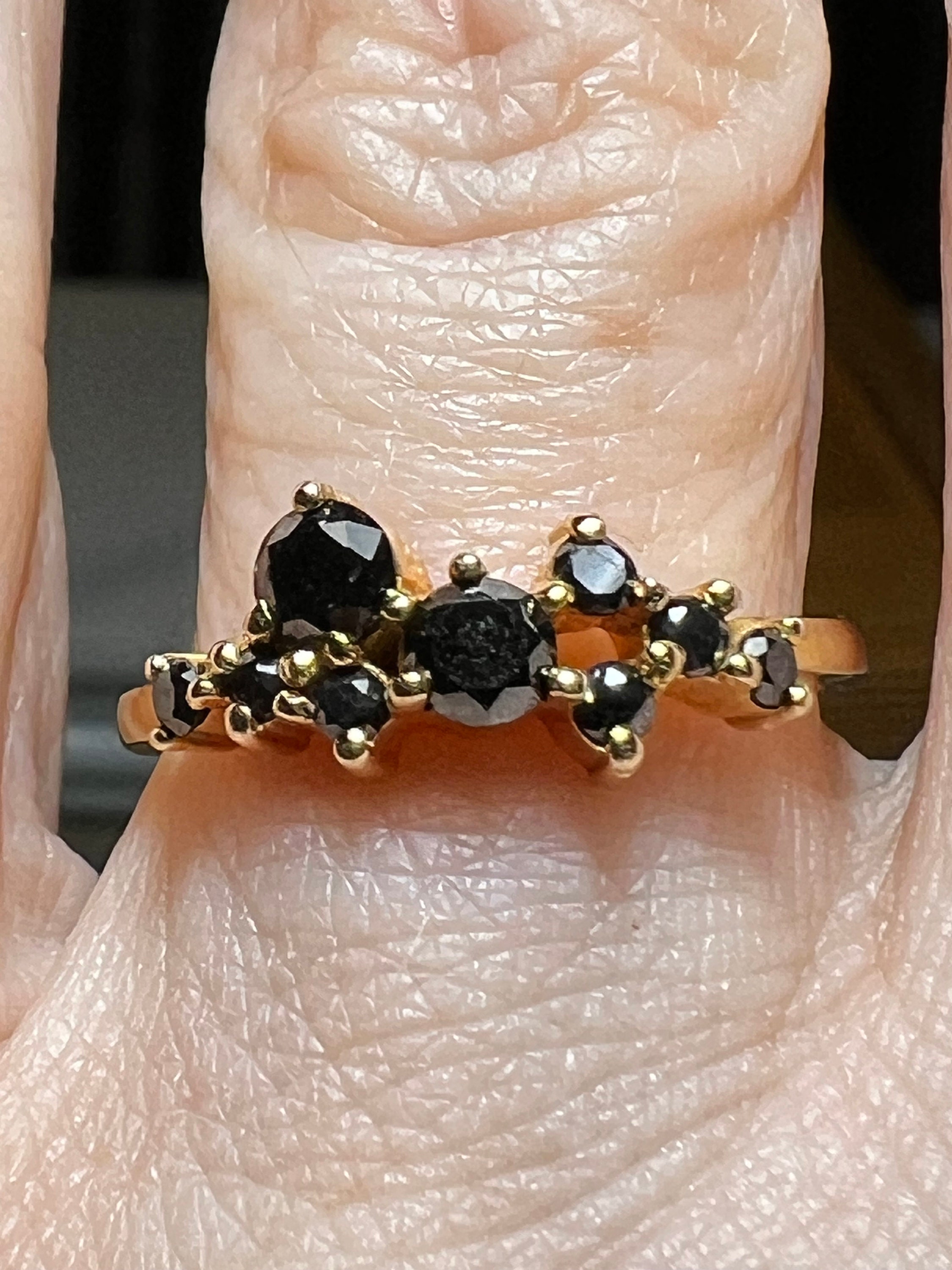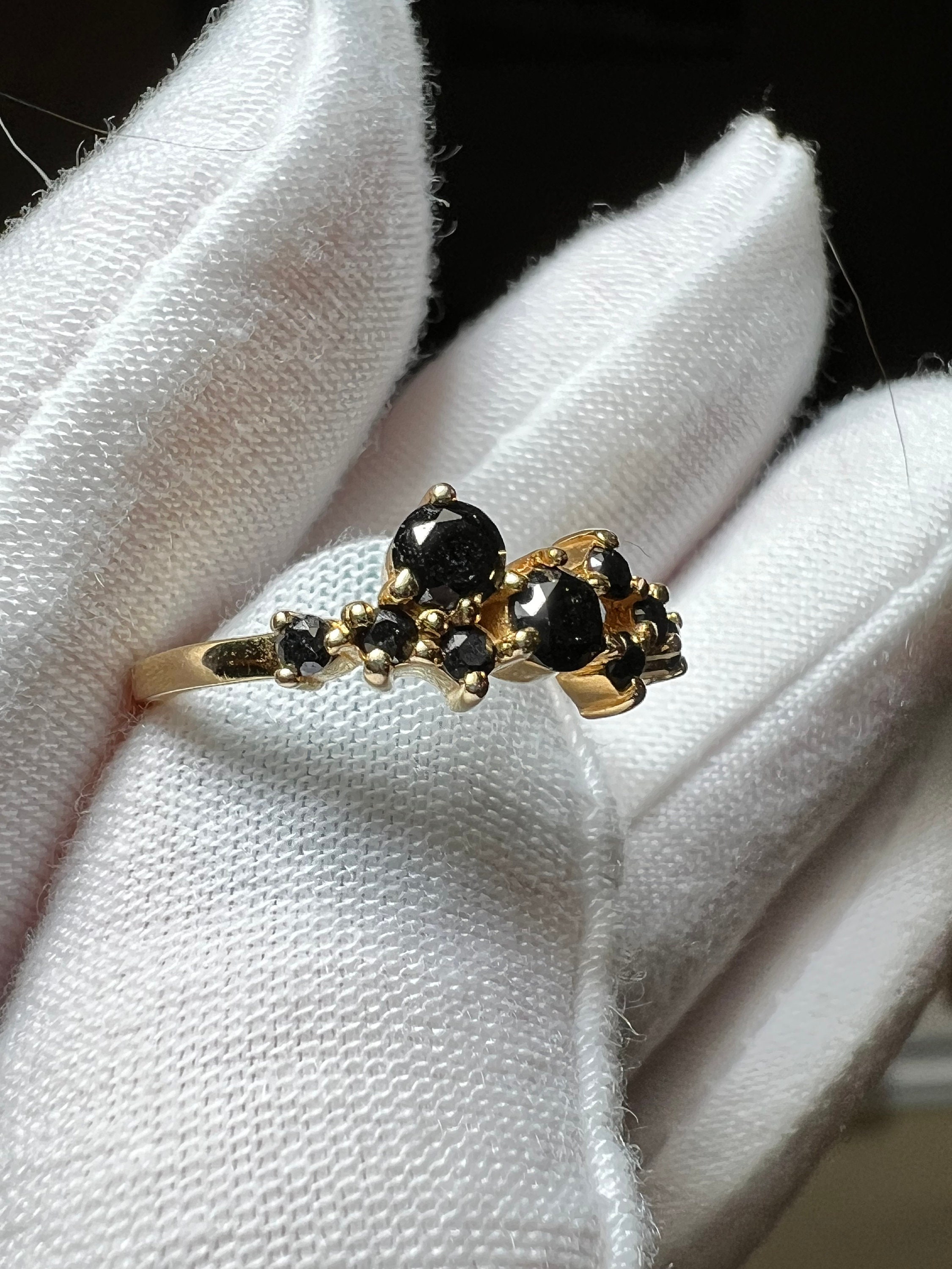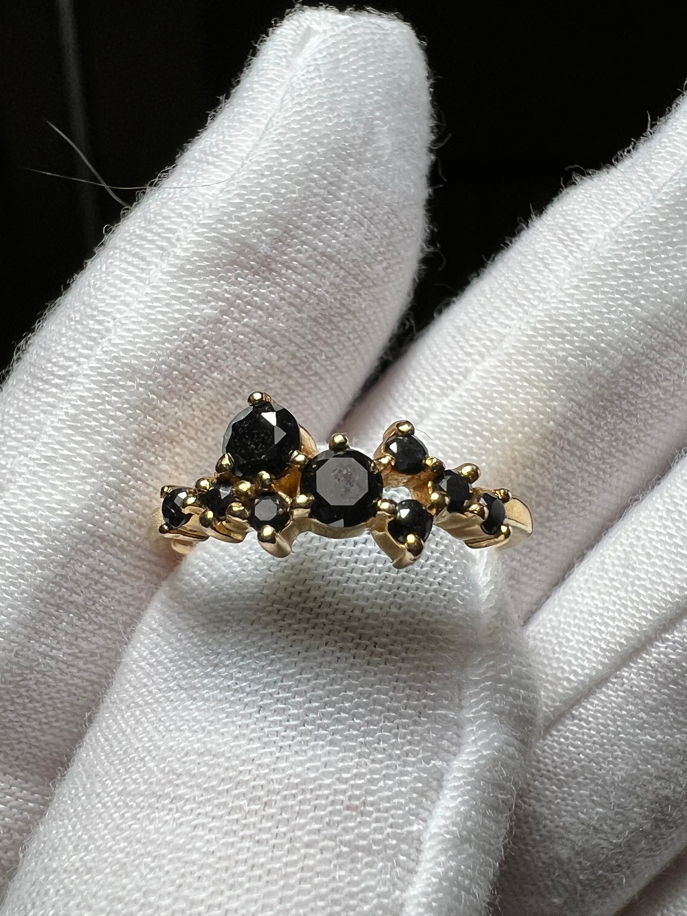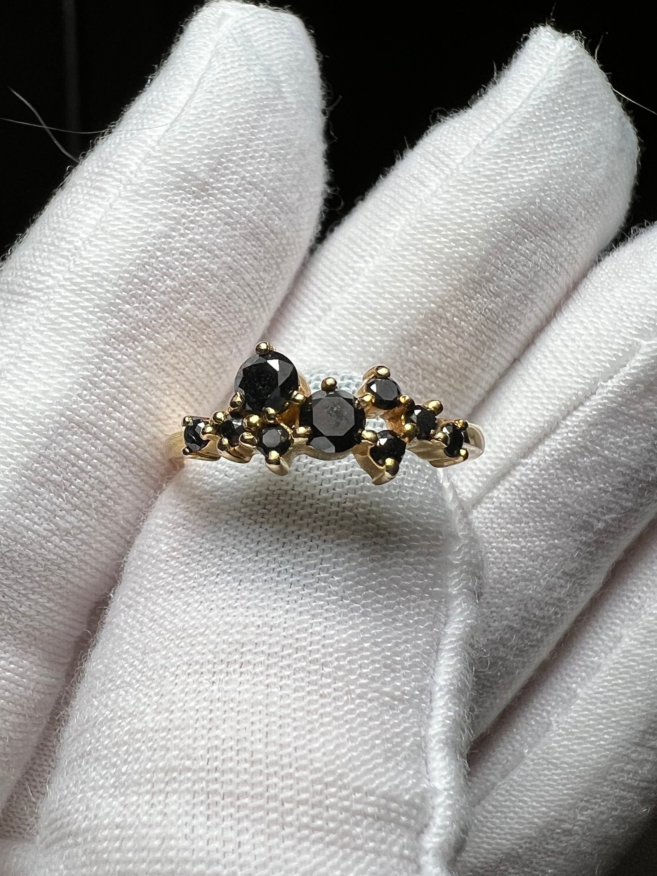 14K Yellow Gold Natural Black Diamond Constellation Ring