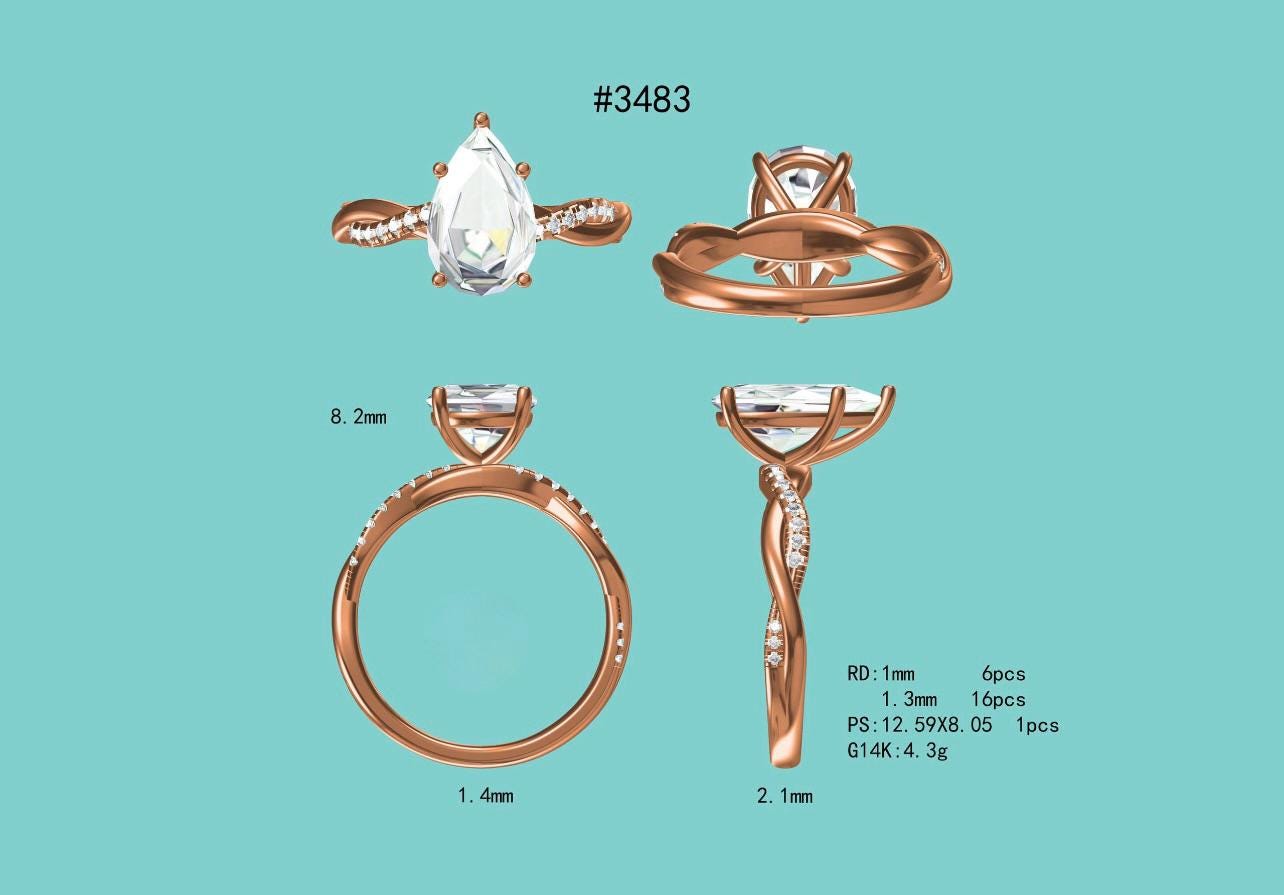1.05CT Pear H VS2 2EX Lab Grown Loose Diamond /Engagement Ring Custom