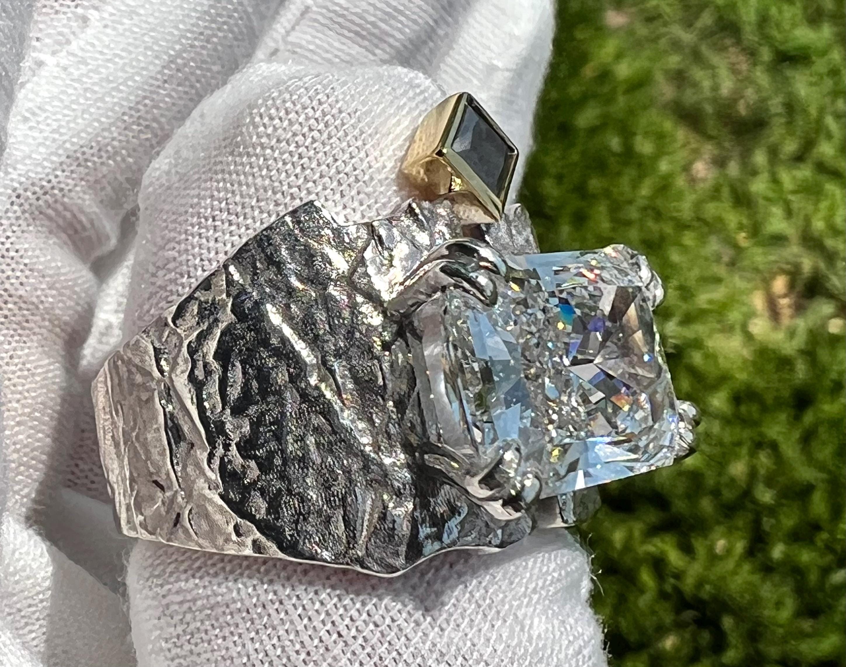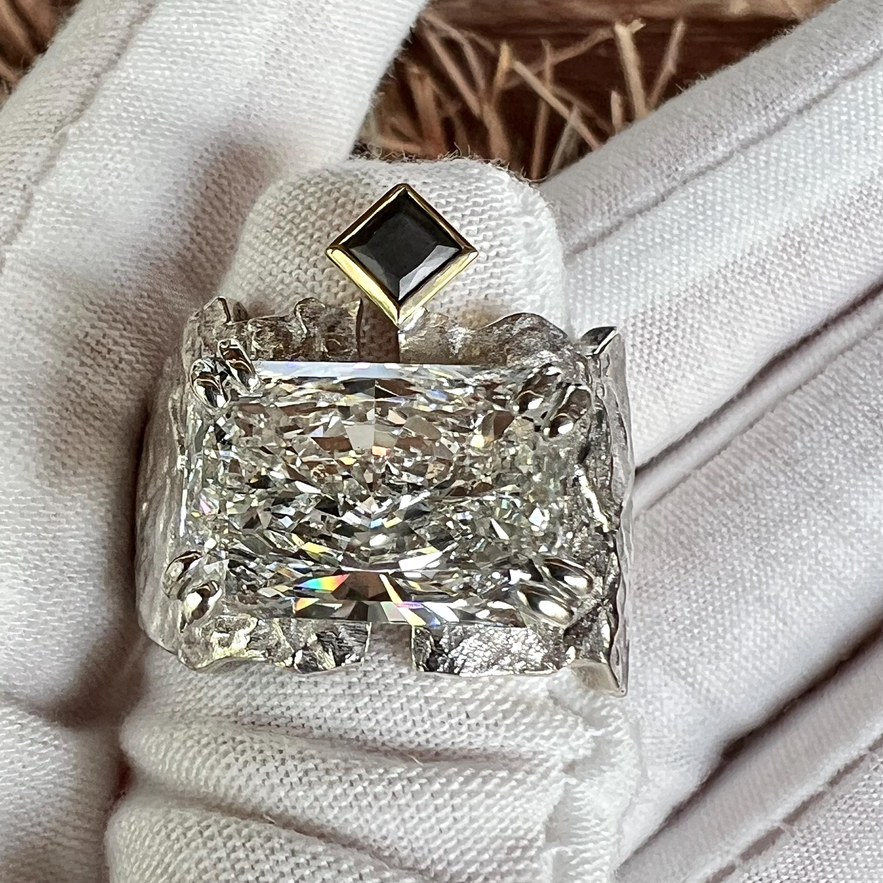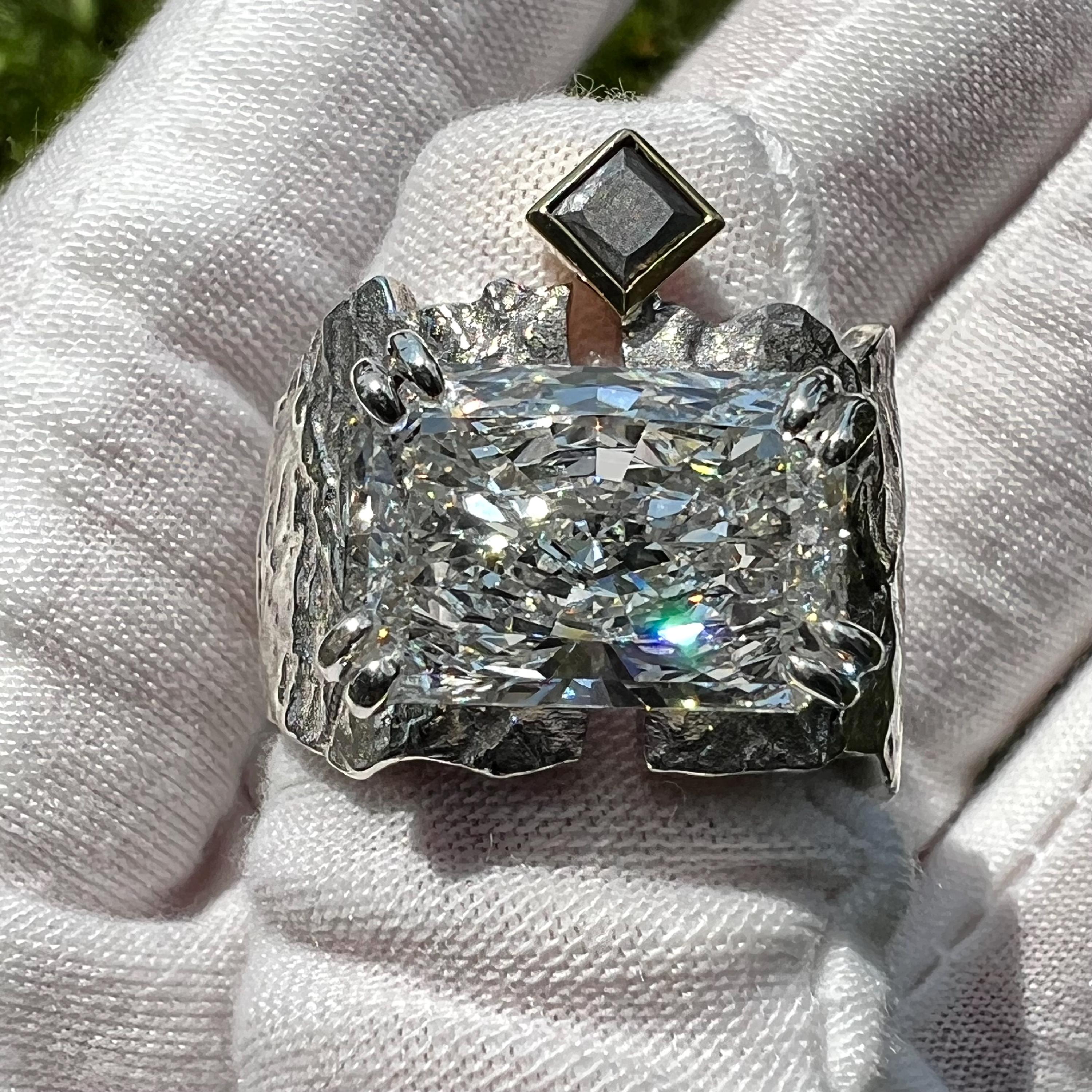 Certified 10CT Radiant F VVS2 2EX Lab Grown Diamond & Black Diamond Ring / Customizable