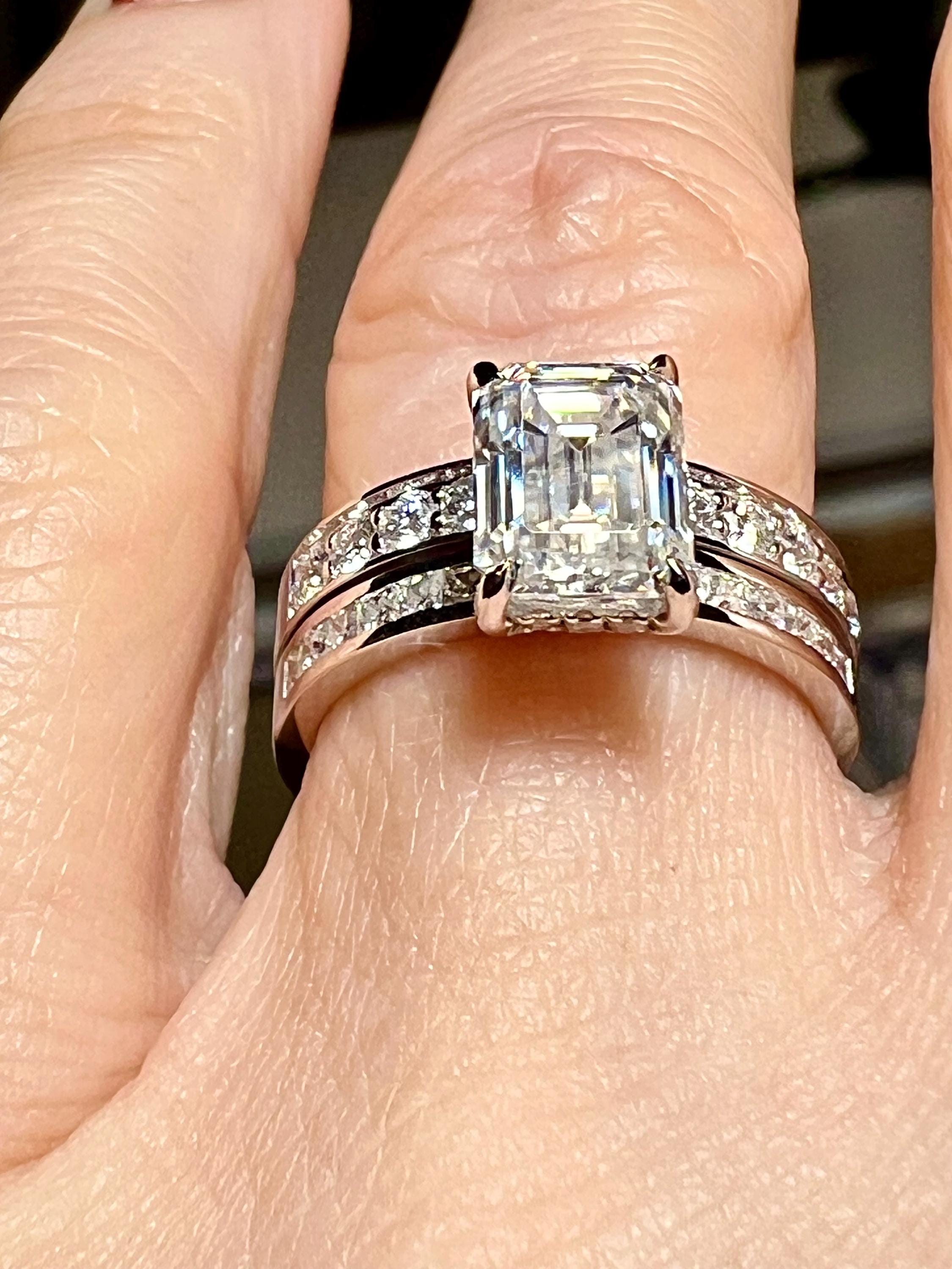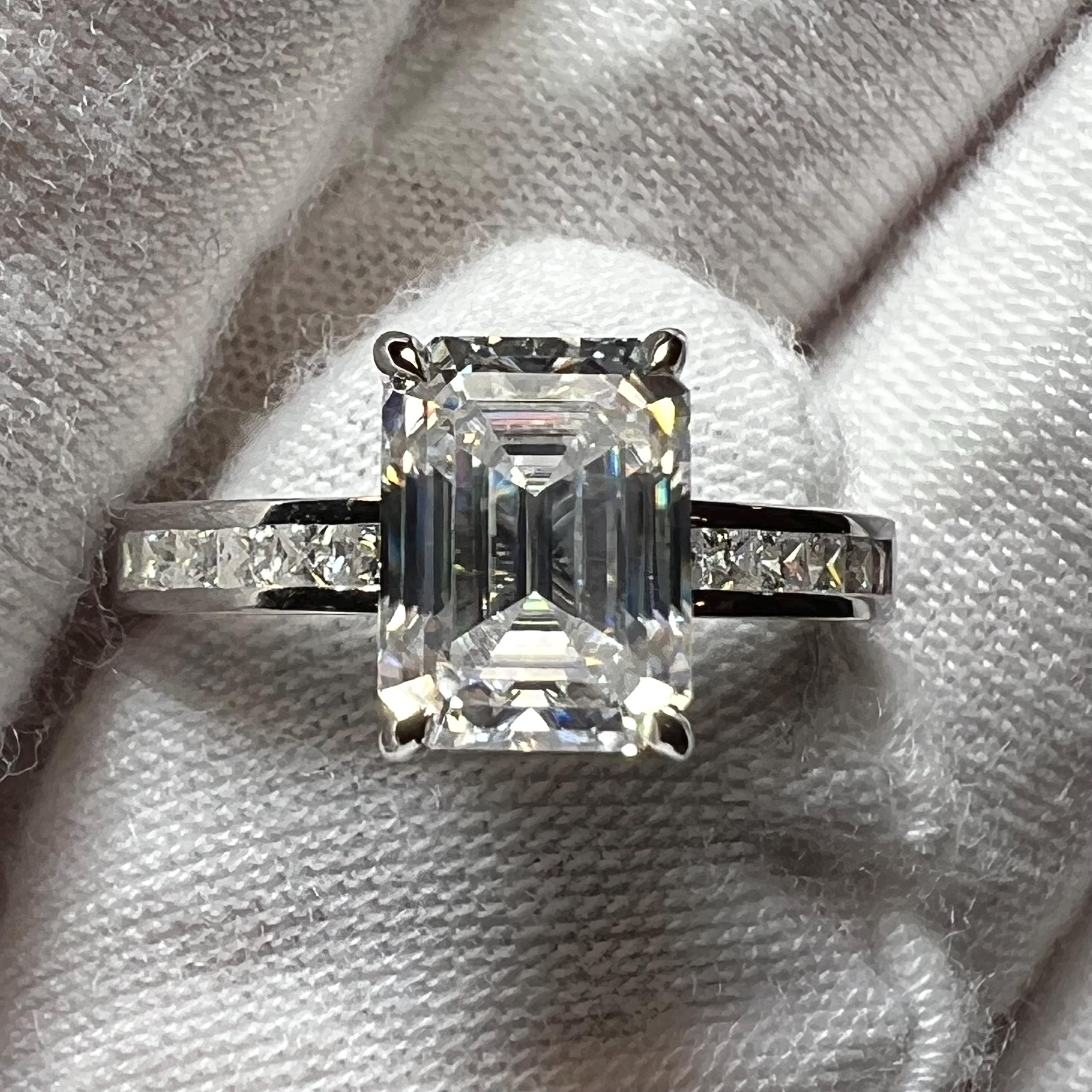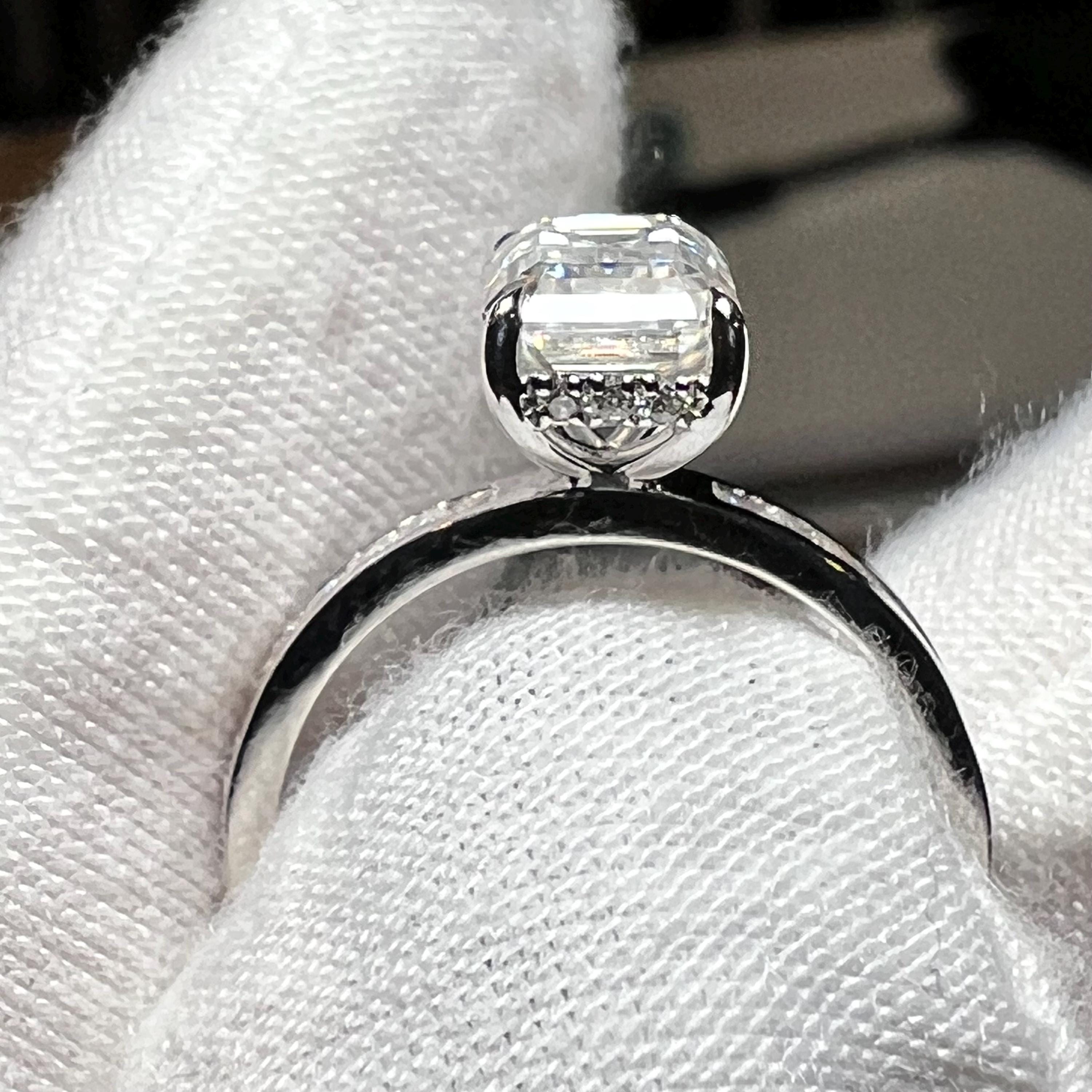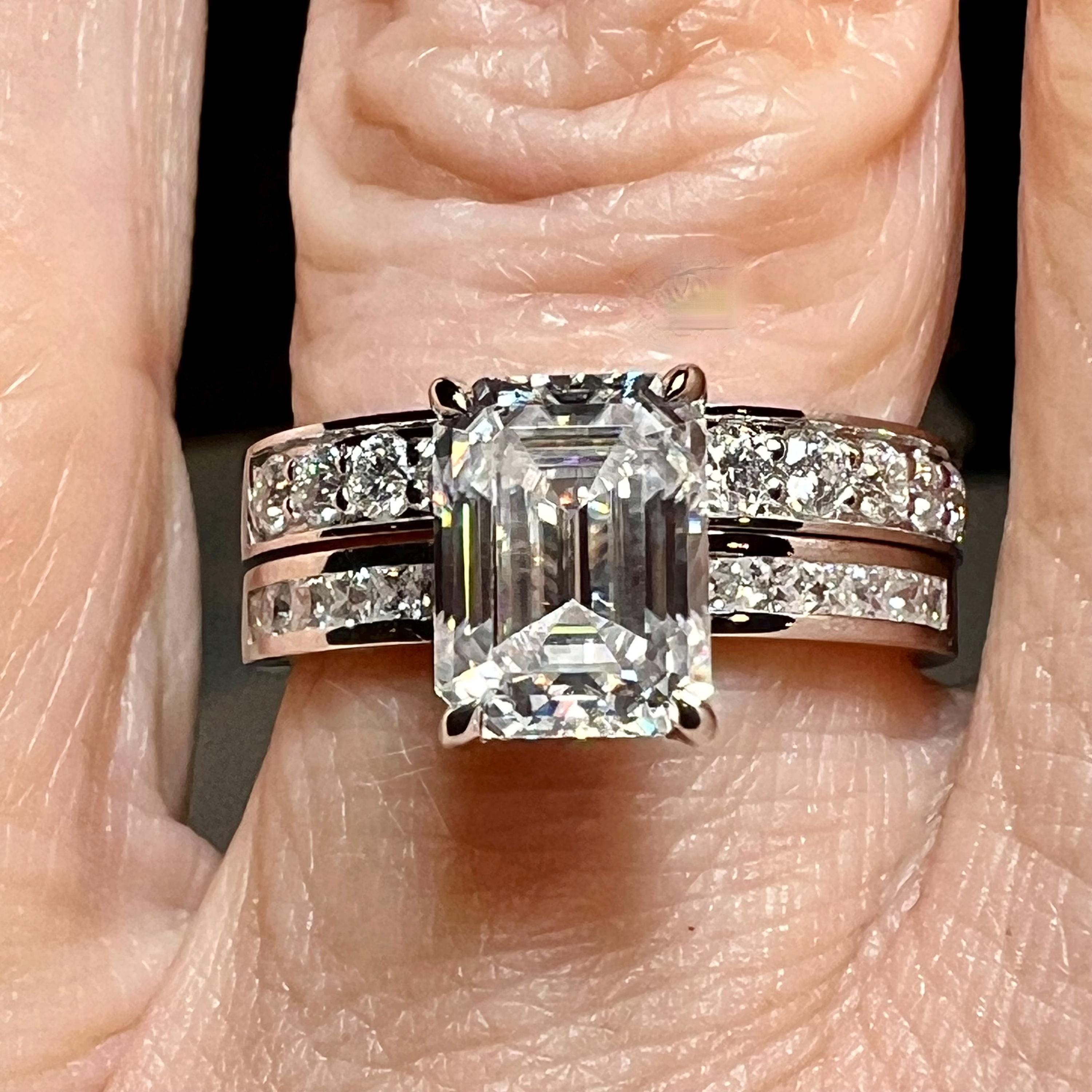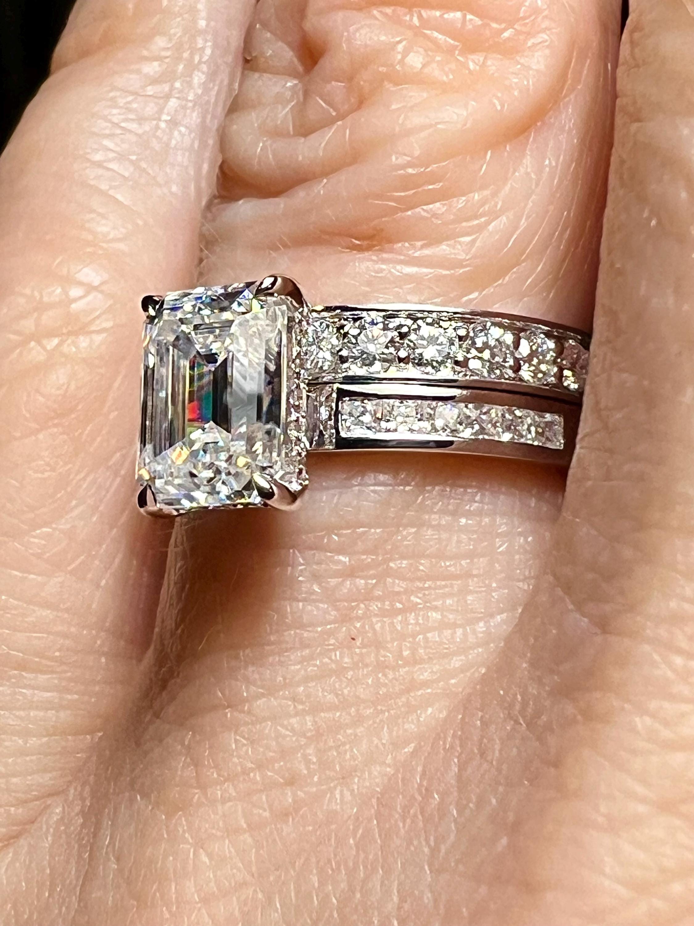 Certified 2CT Emerald Cut H VS1 2EX Lab Grown Diamond Hidden Halo Channel Set Bridal Set