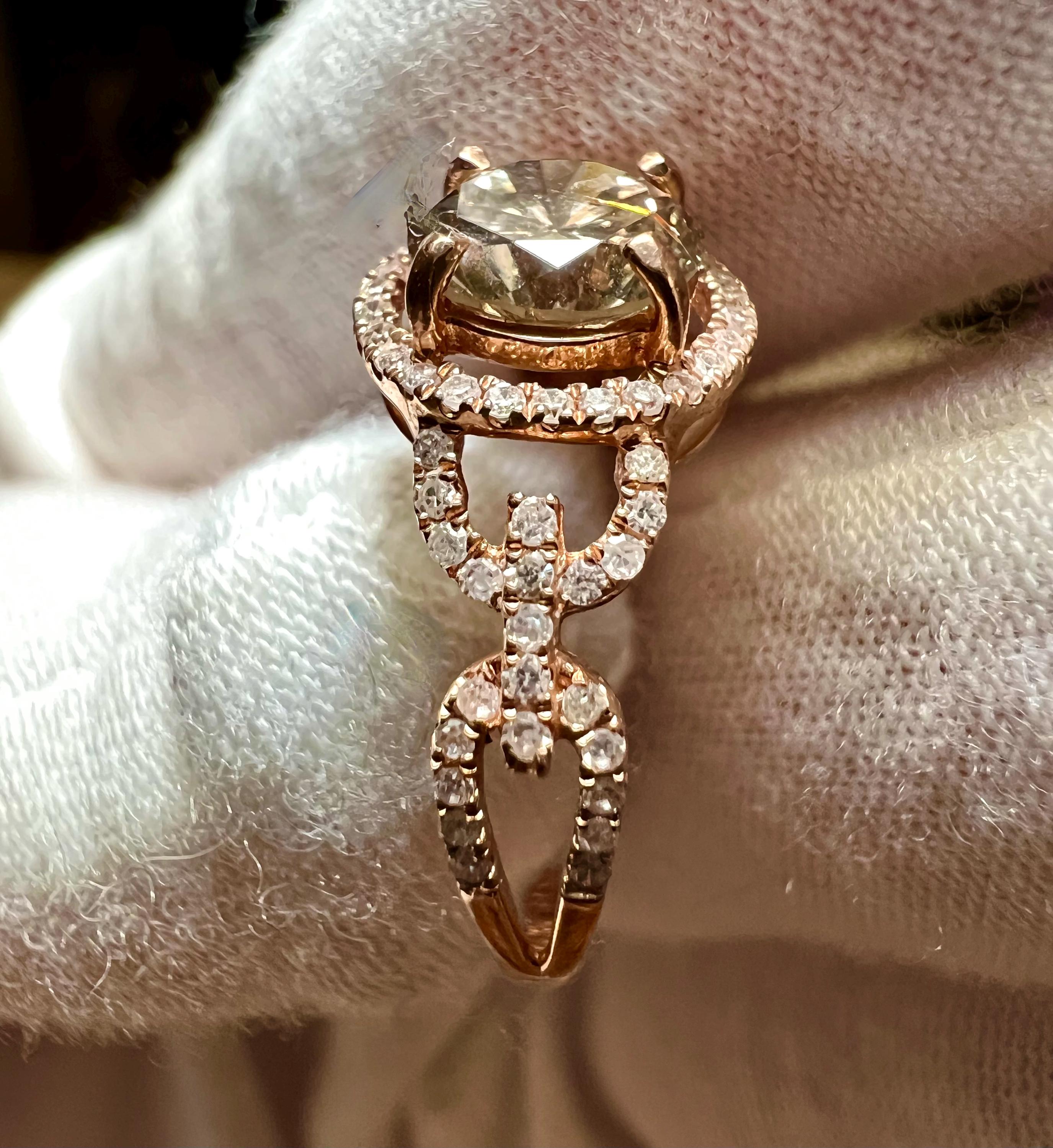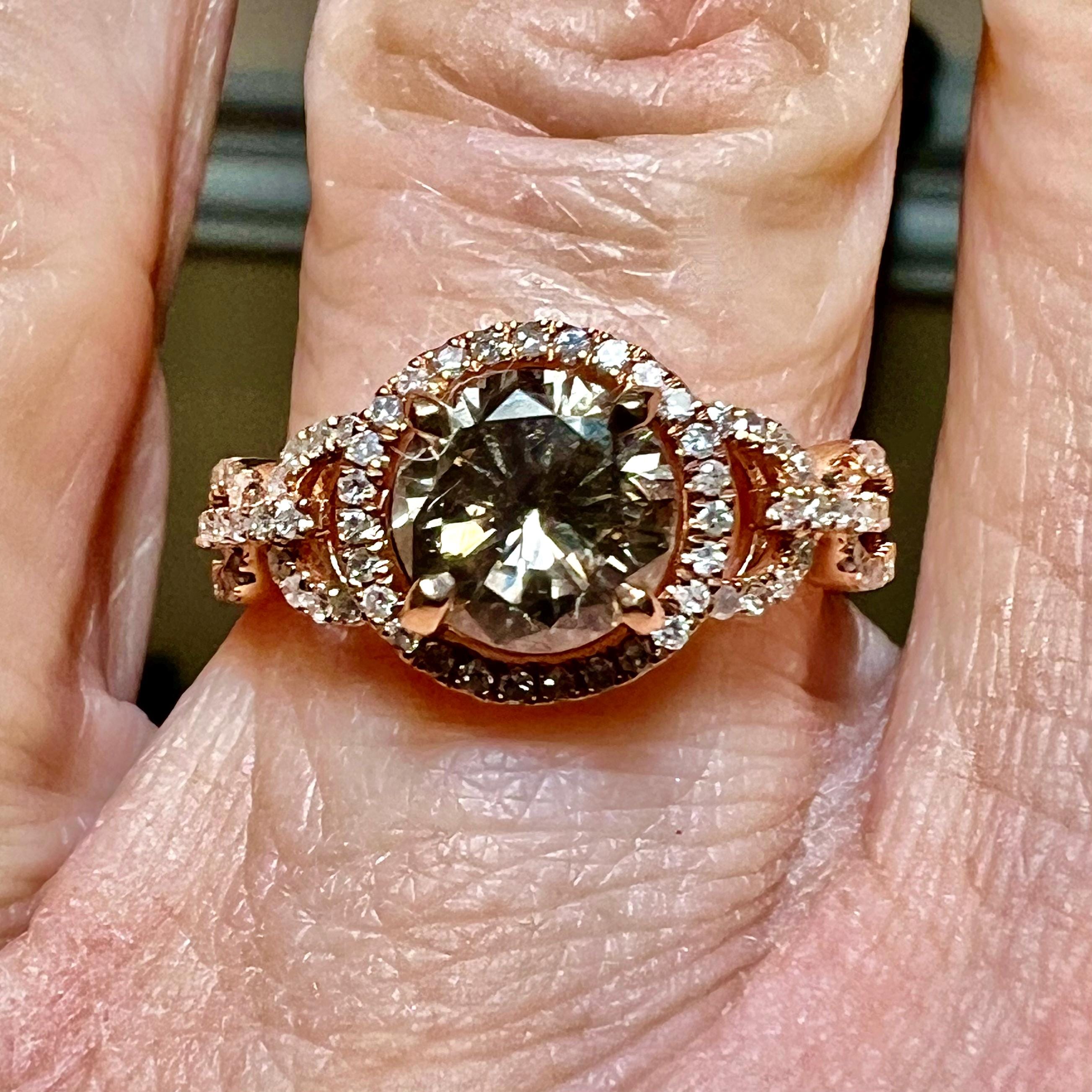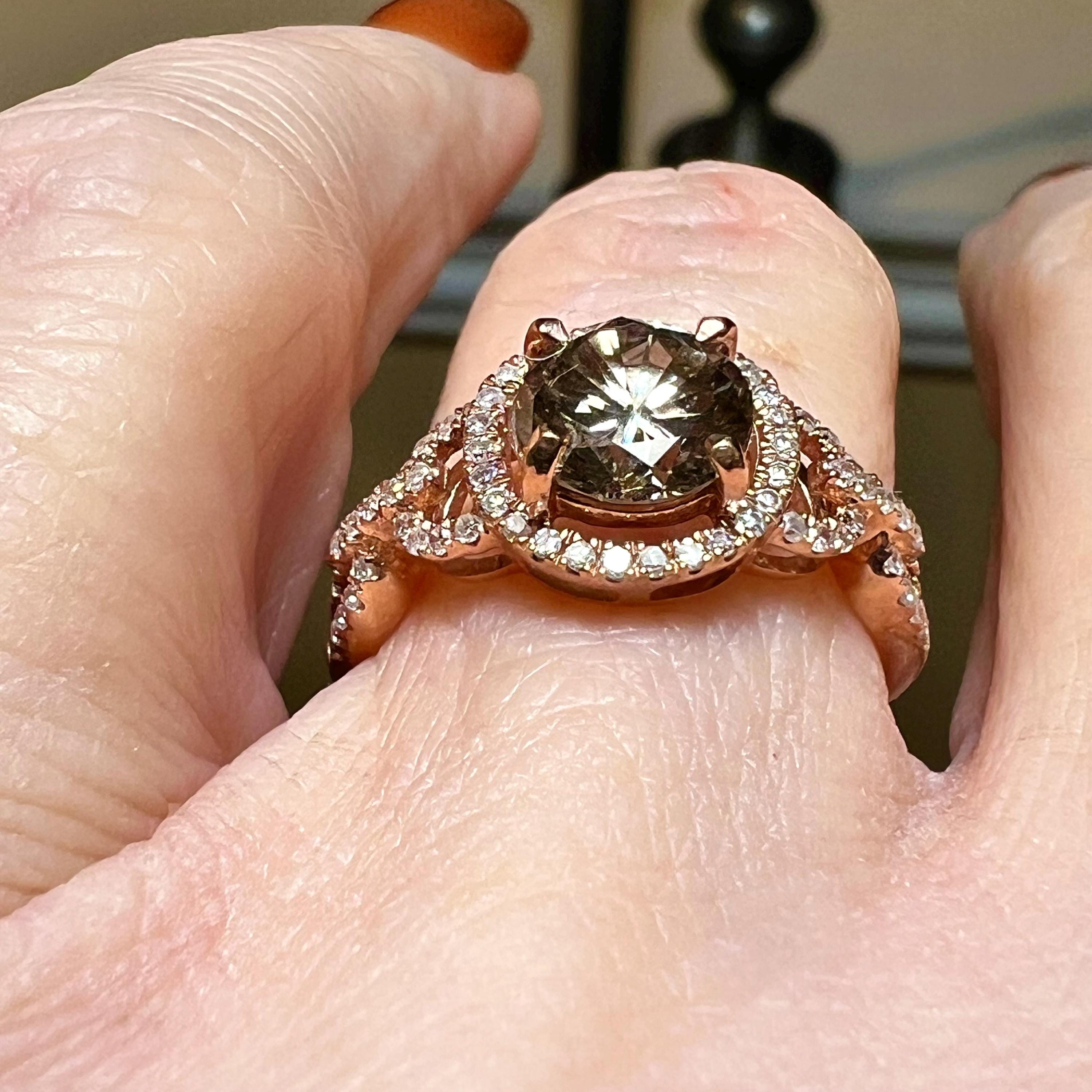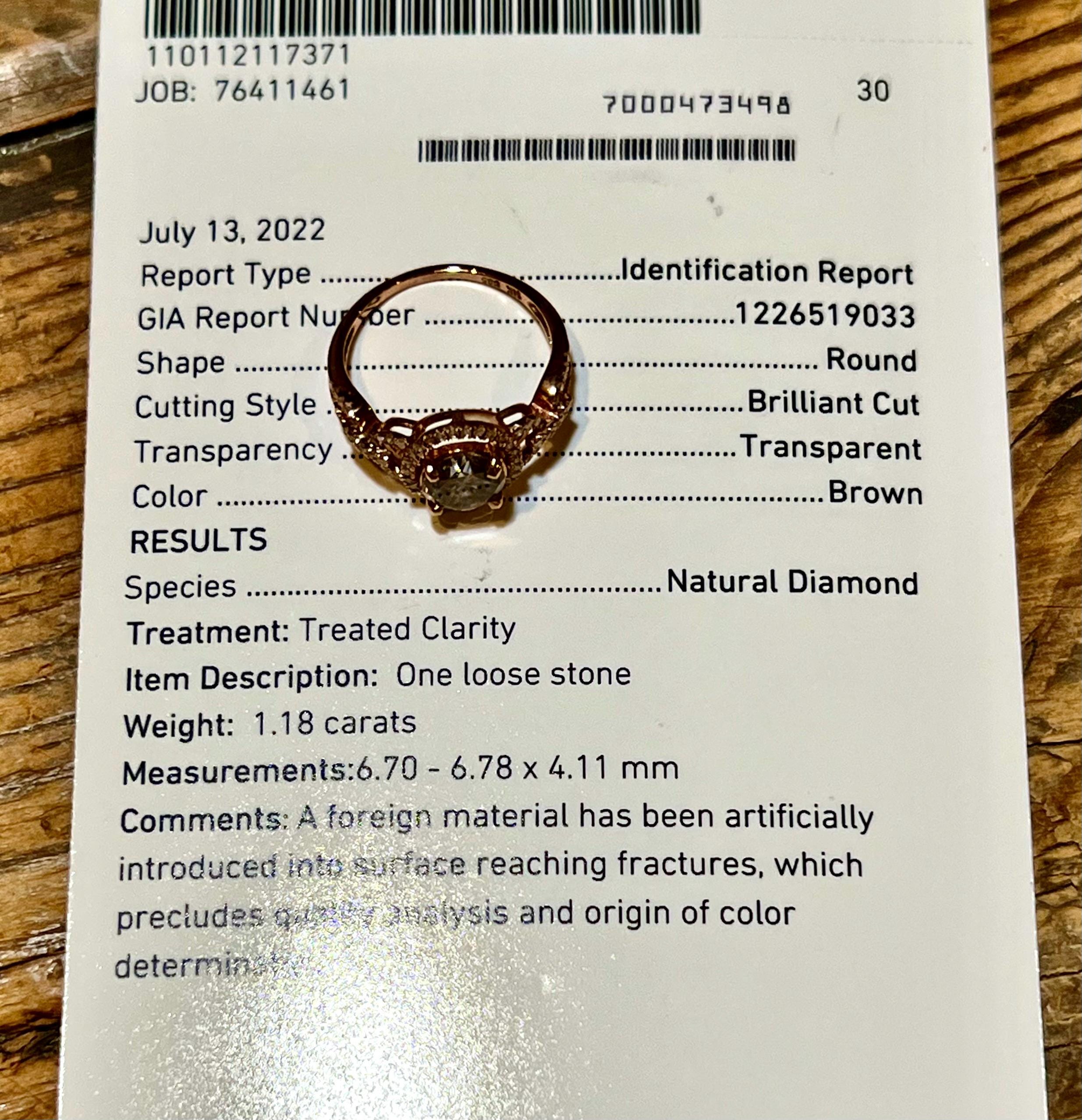14K Rose Gold GIA Natural (Earth Mined) 1.18CT Round Brilliant Cut Fancy Chocolate Brown Diamond Engagement Ring Size 6.5US