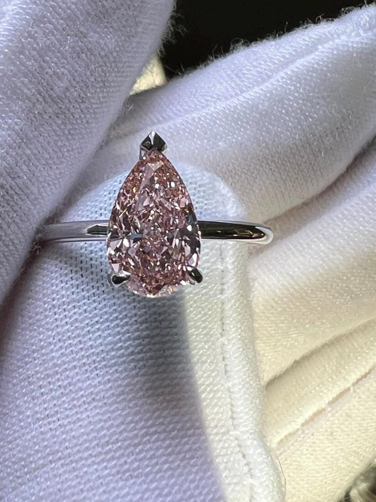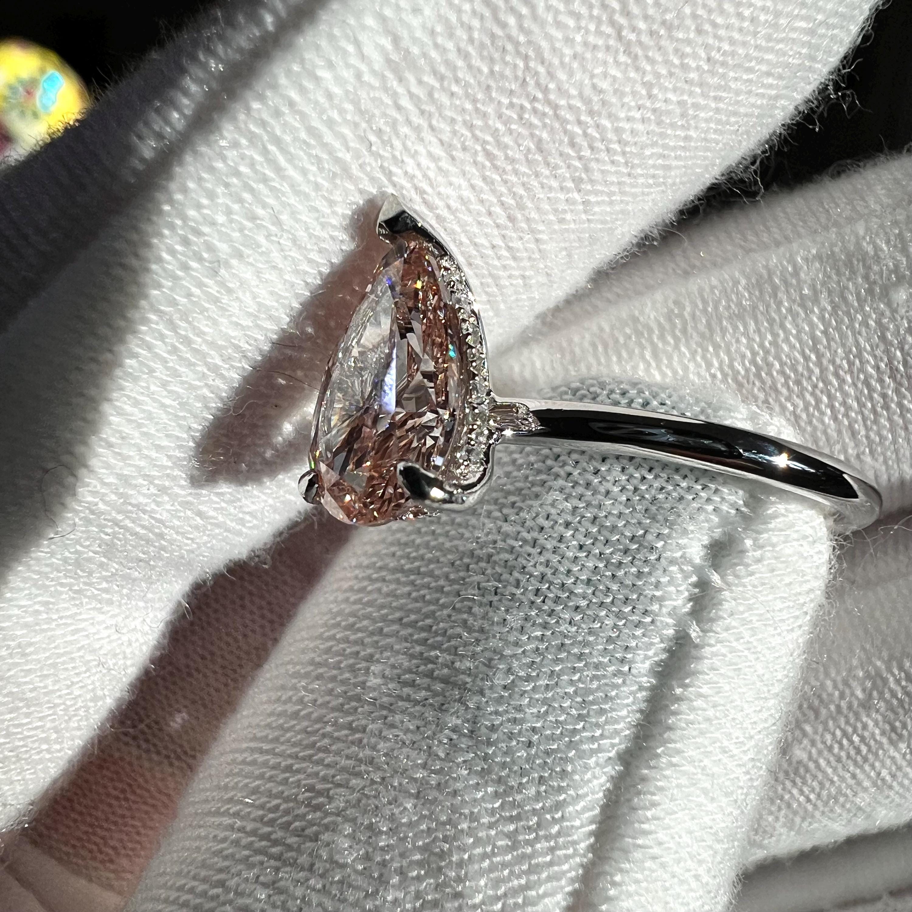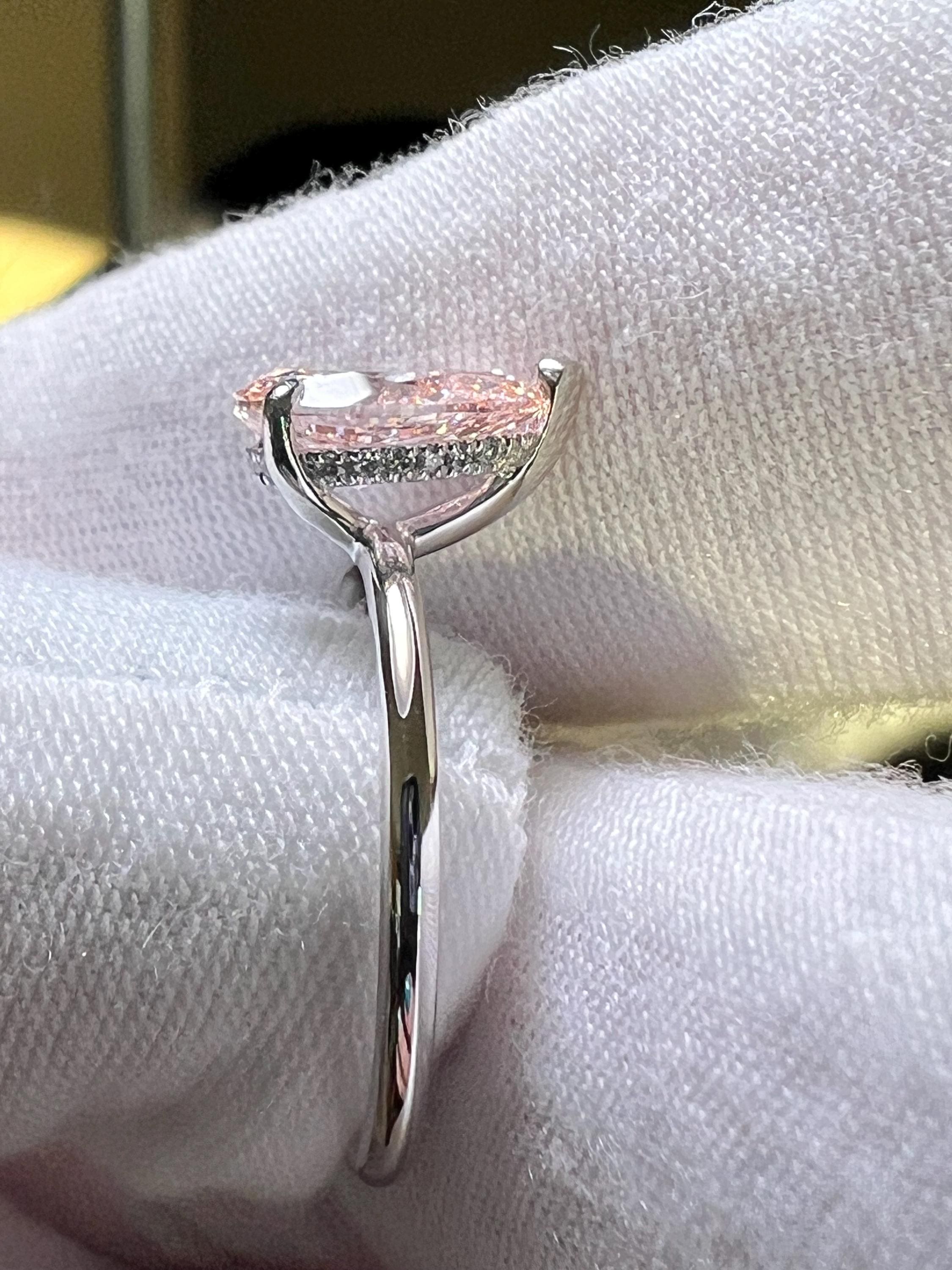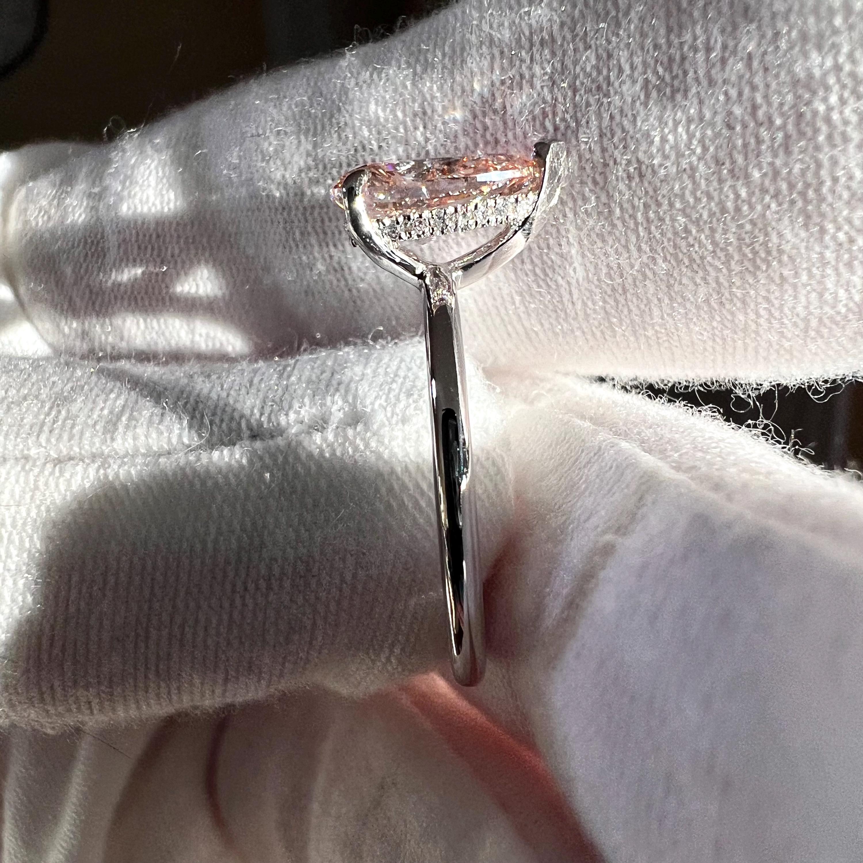 Certified Platinum 2CT Pear Fancy Intense Pink VS1 2EX Lab Grown Diamond Hidden Halo Engagement Ring