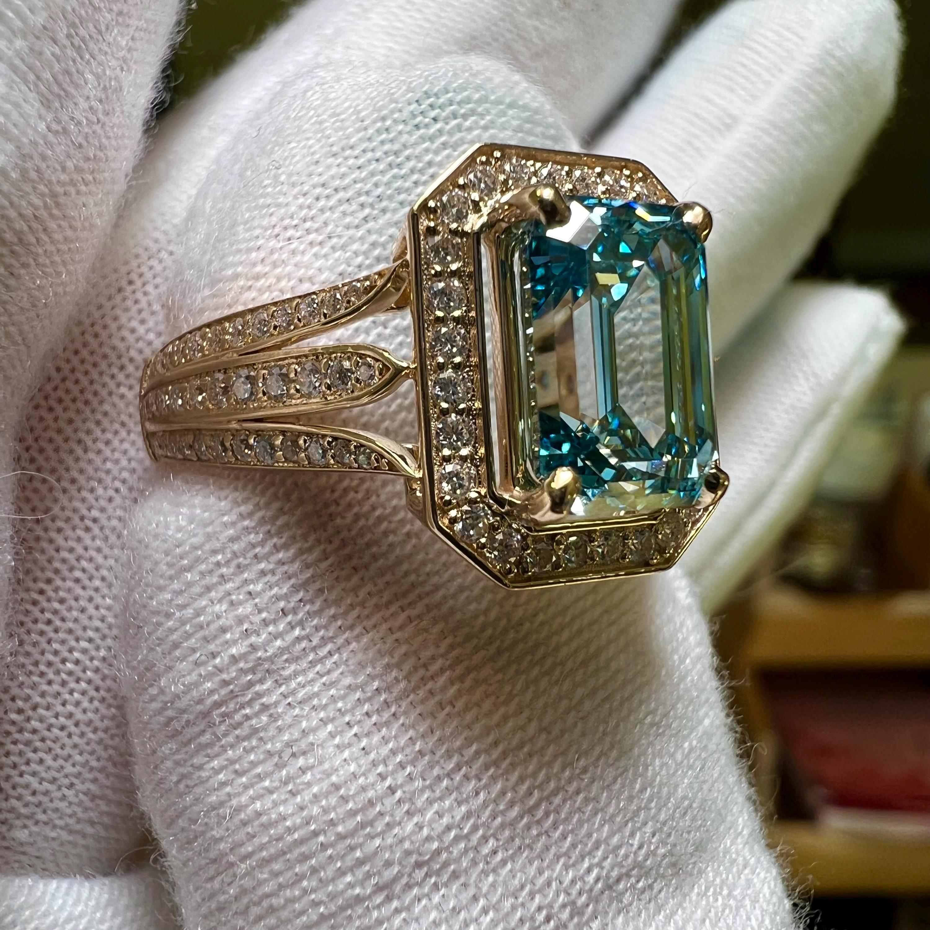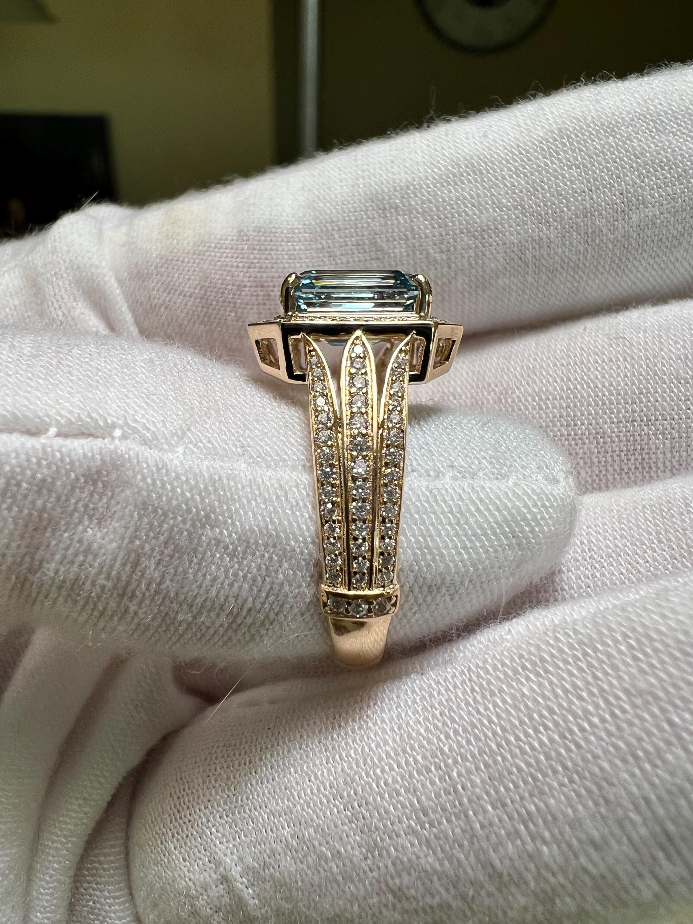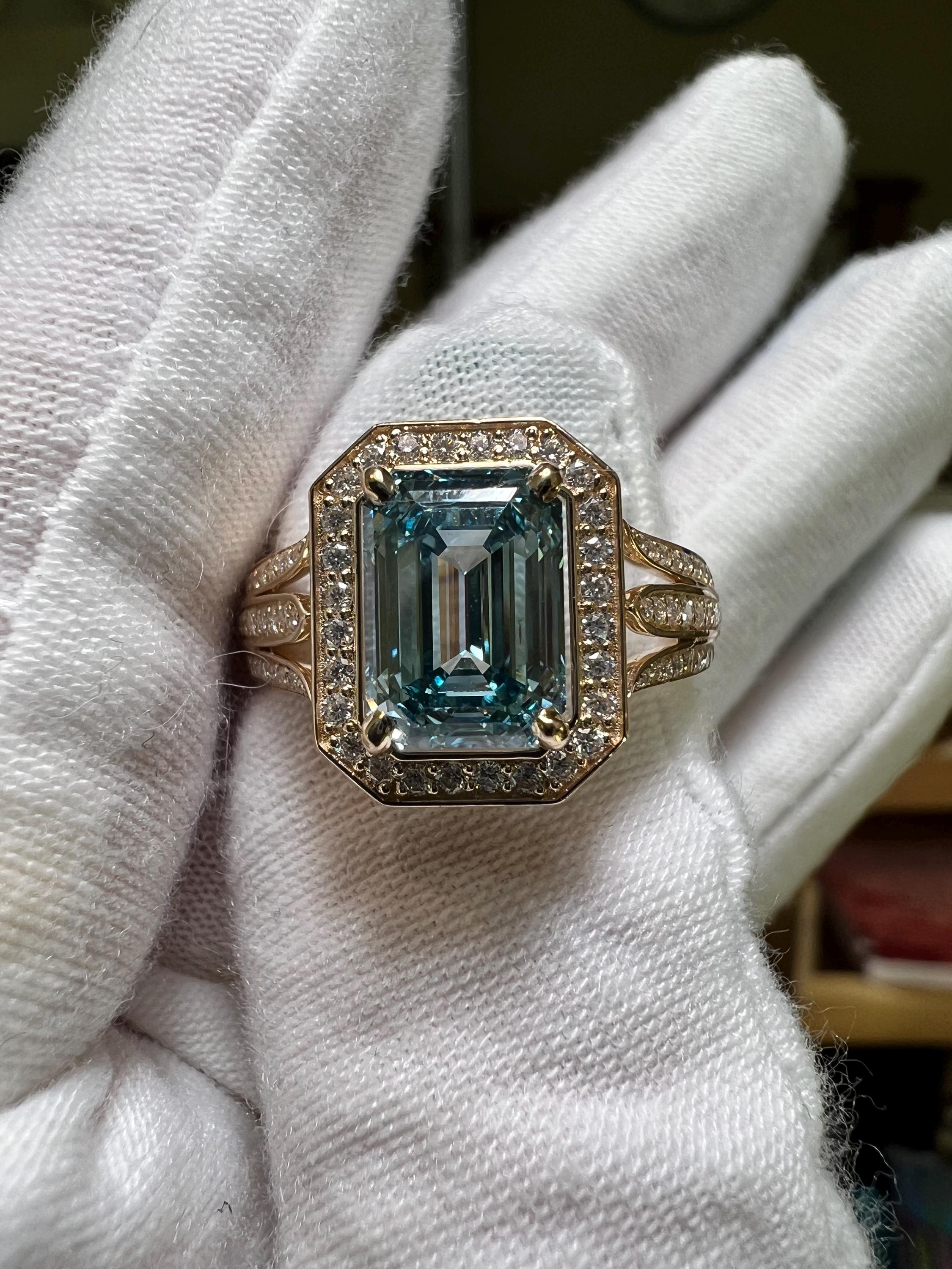 Certified 3CT Emerald Cut Blue Green Lab Grown Diamond Engagement Ring 14K Yellow Gold