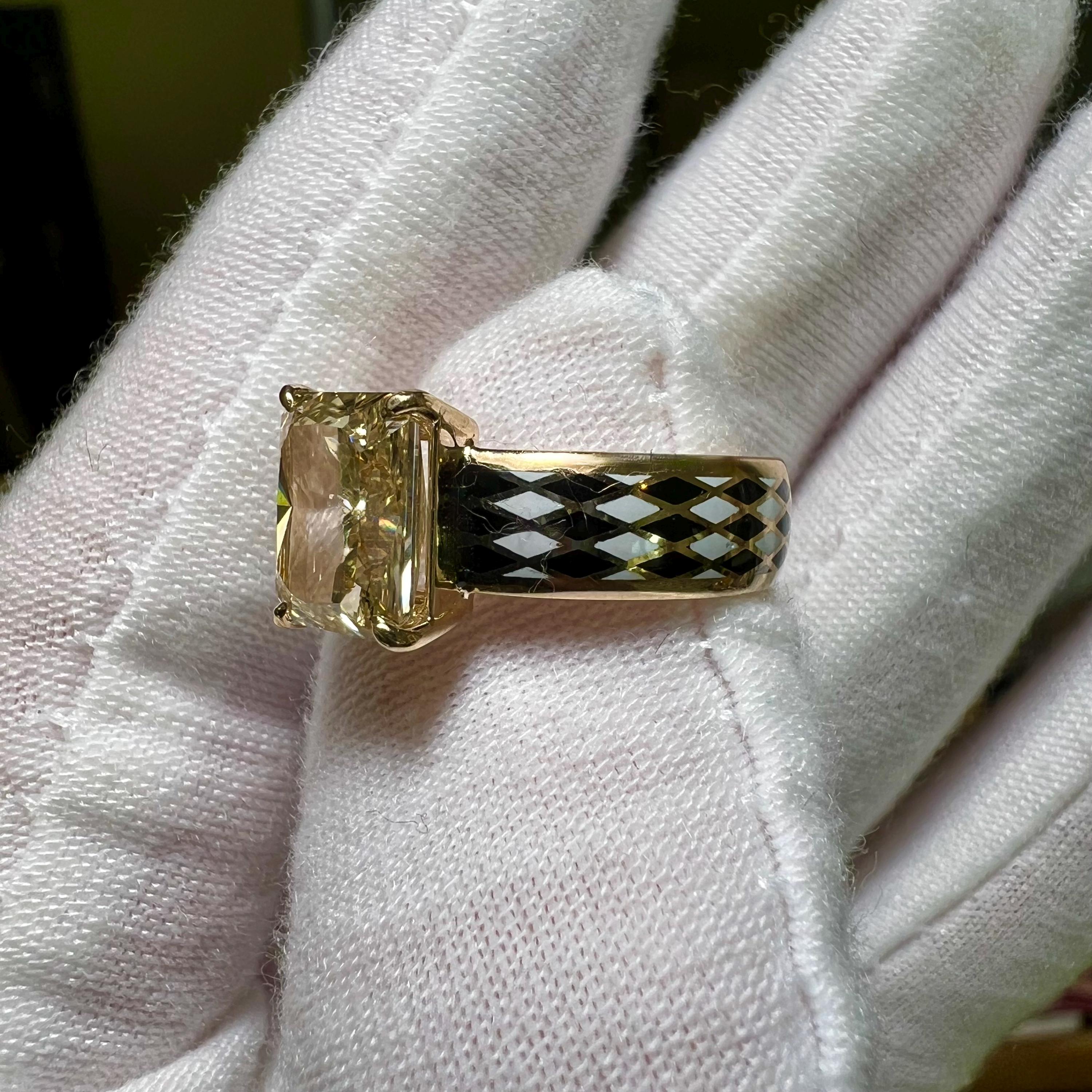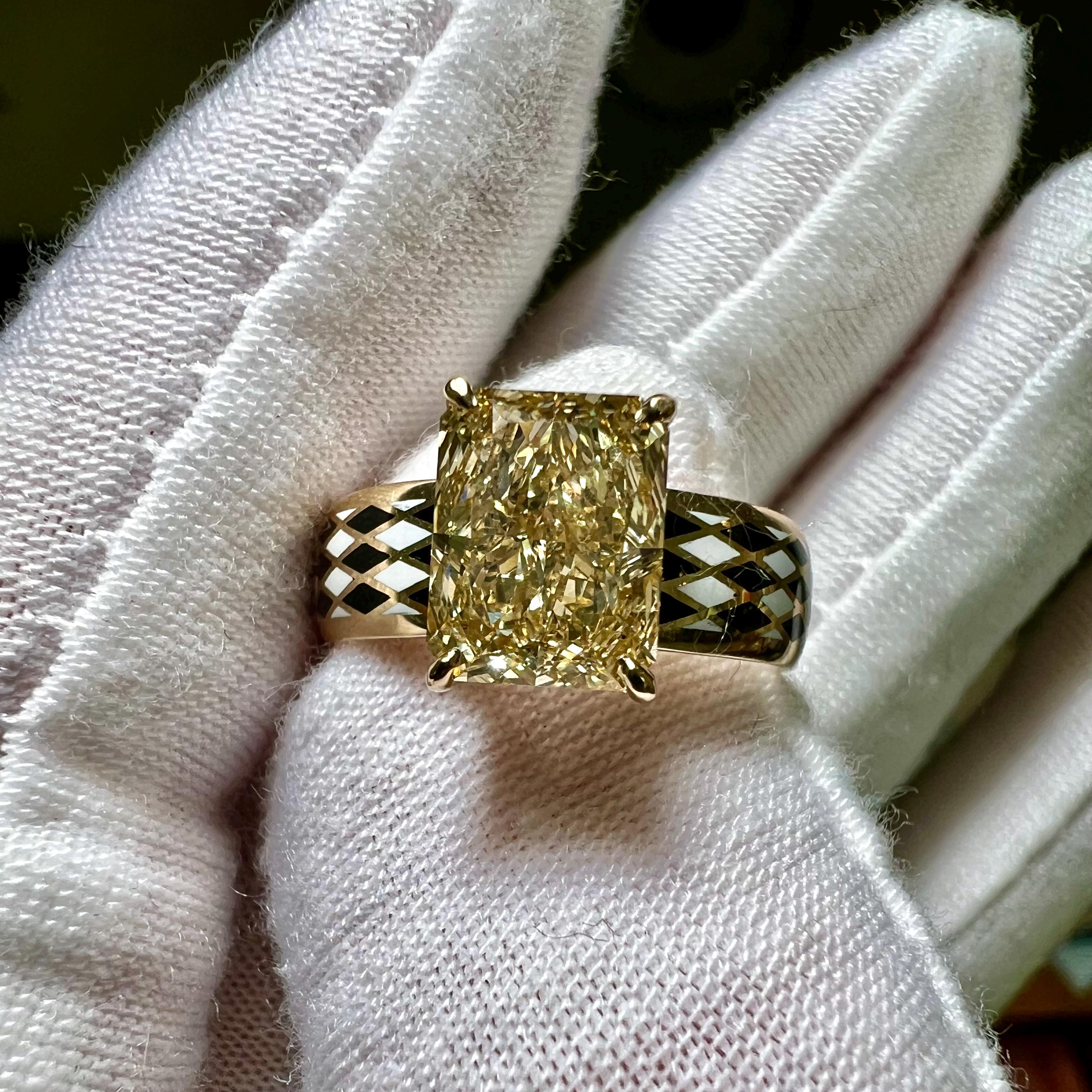 ⚜️I fell in love with this fancy canary light yellow diamond, the sparkle is amazing! I knew I wanted a unique design for the mount and so I brought back an art deco era checkerboard creation I use a lot. The design came together beautifully. So Unique! You won't see it anywhere else, and if you do, message me! If you need any customization to this ring, or have a vision for yourself, message me.