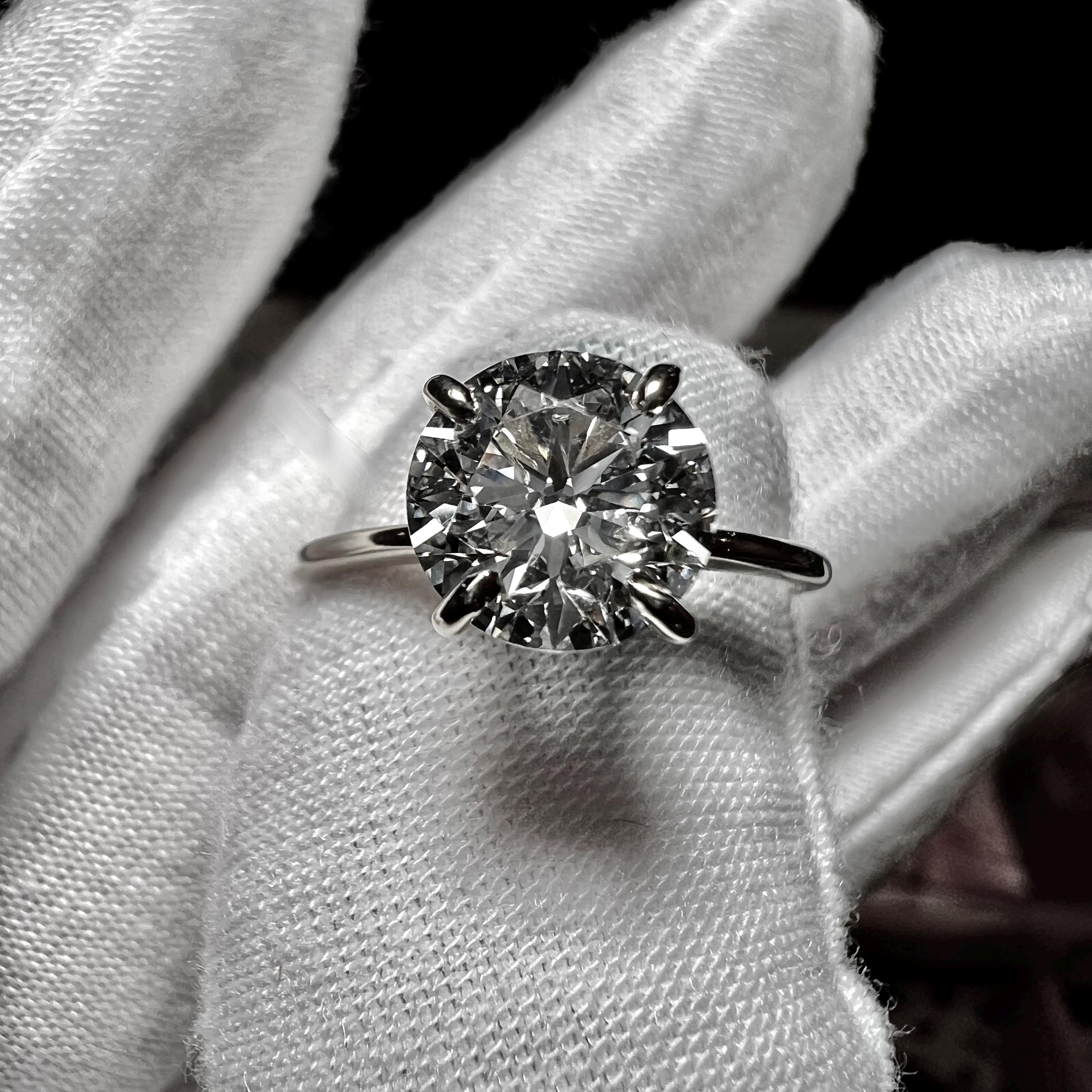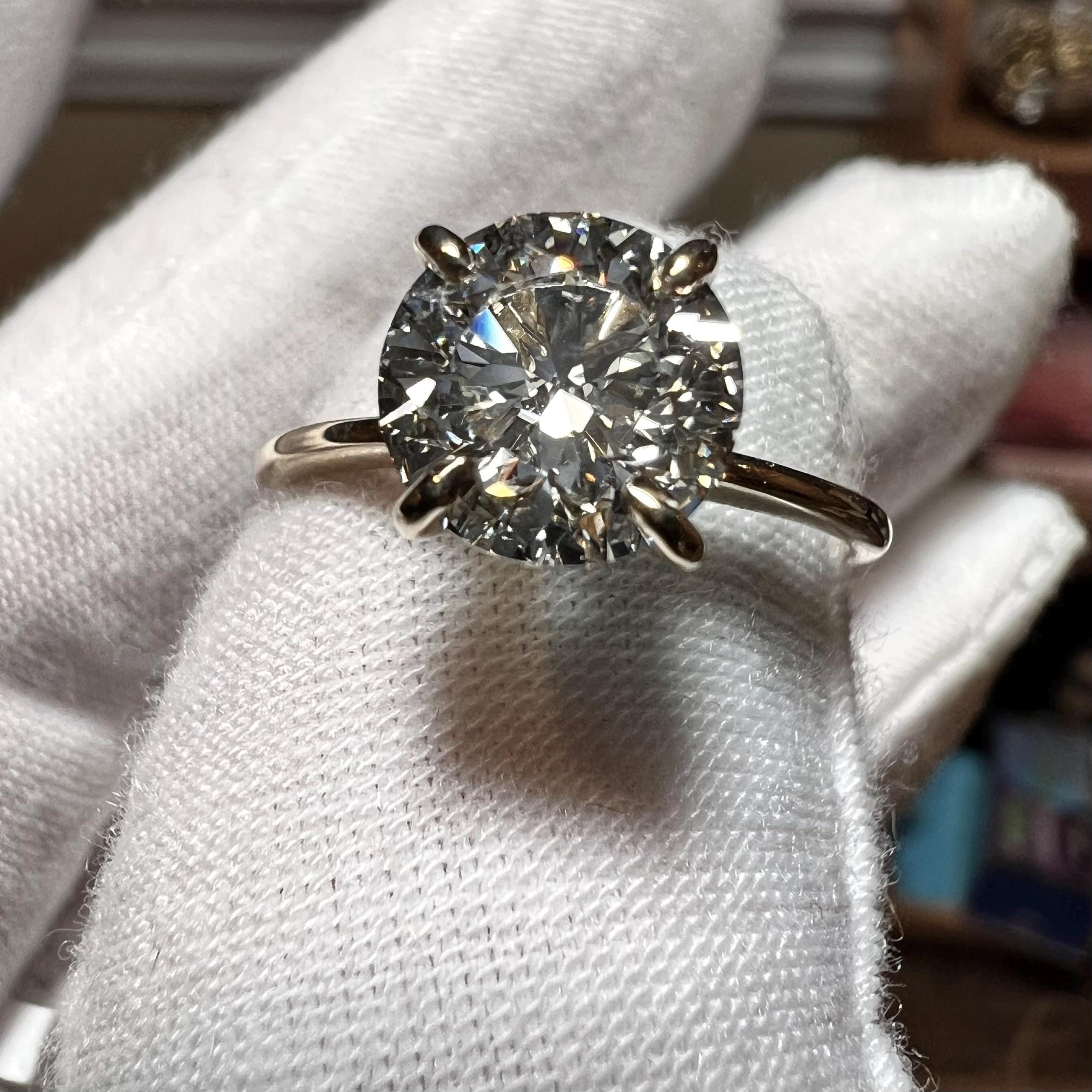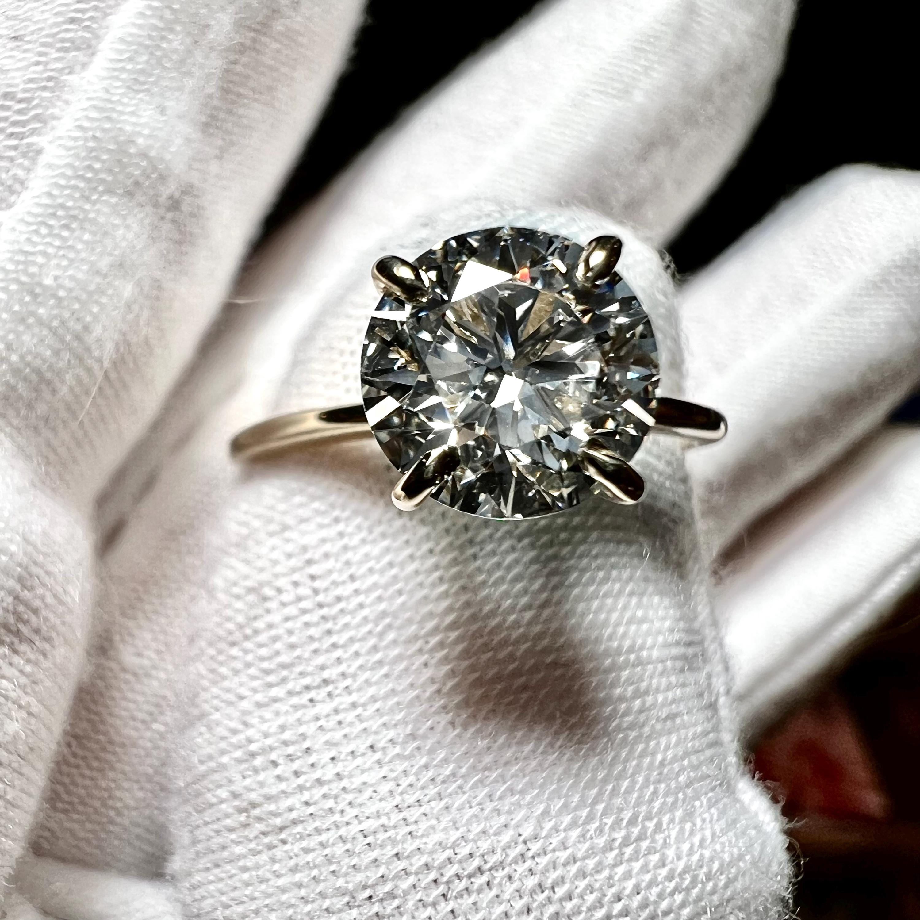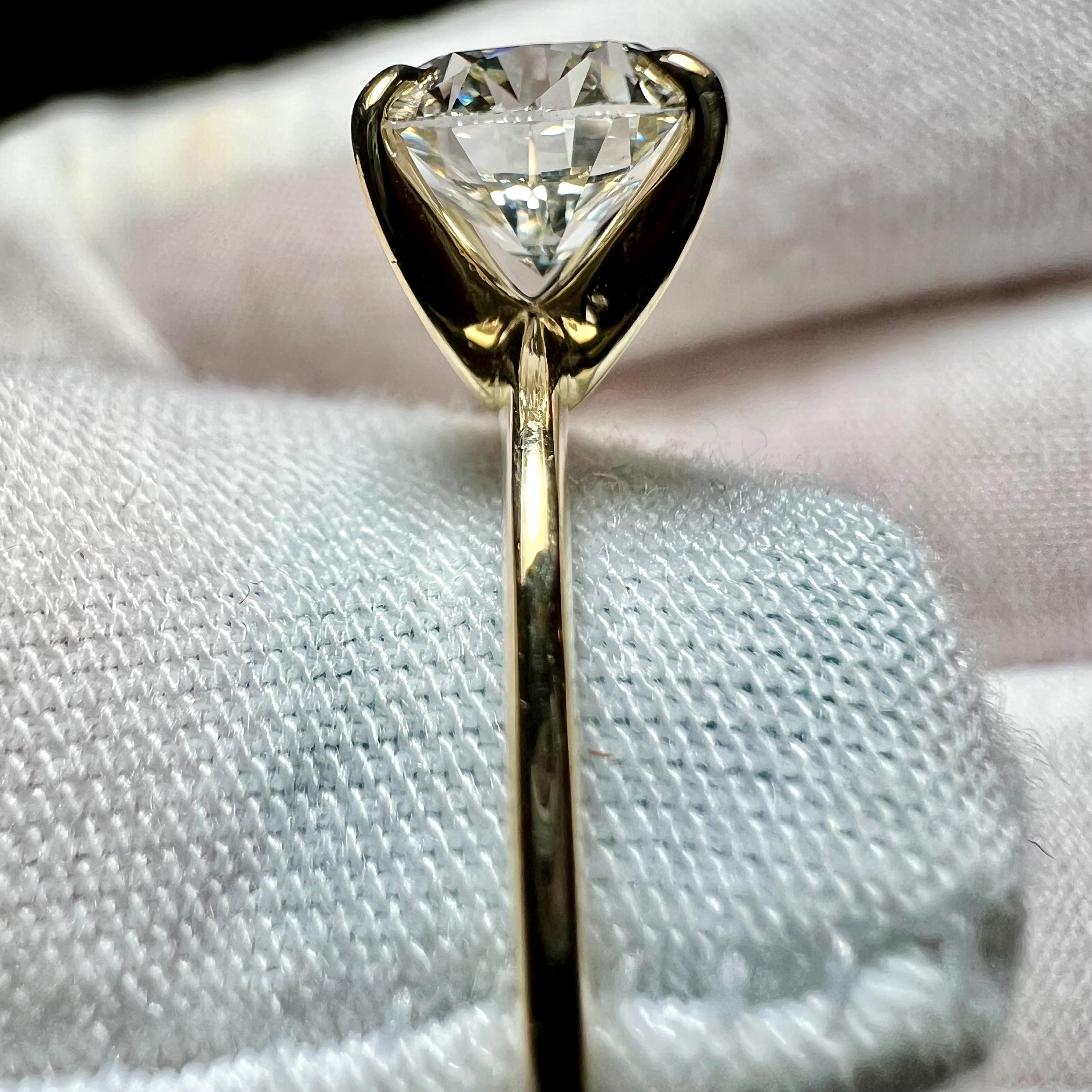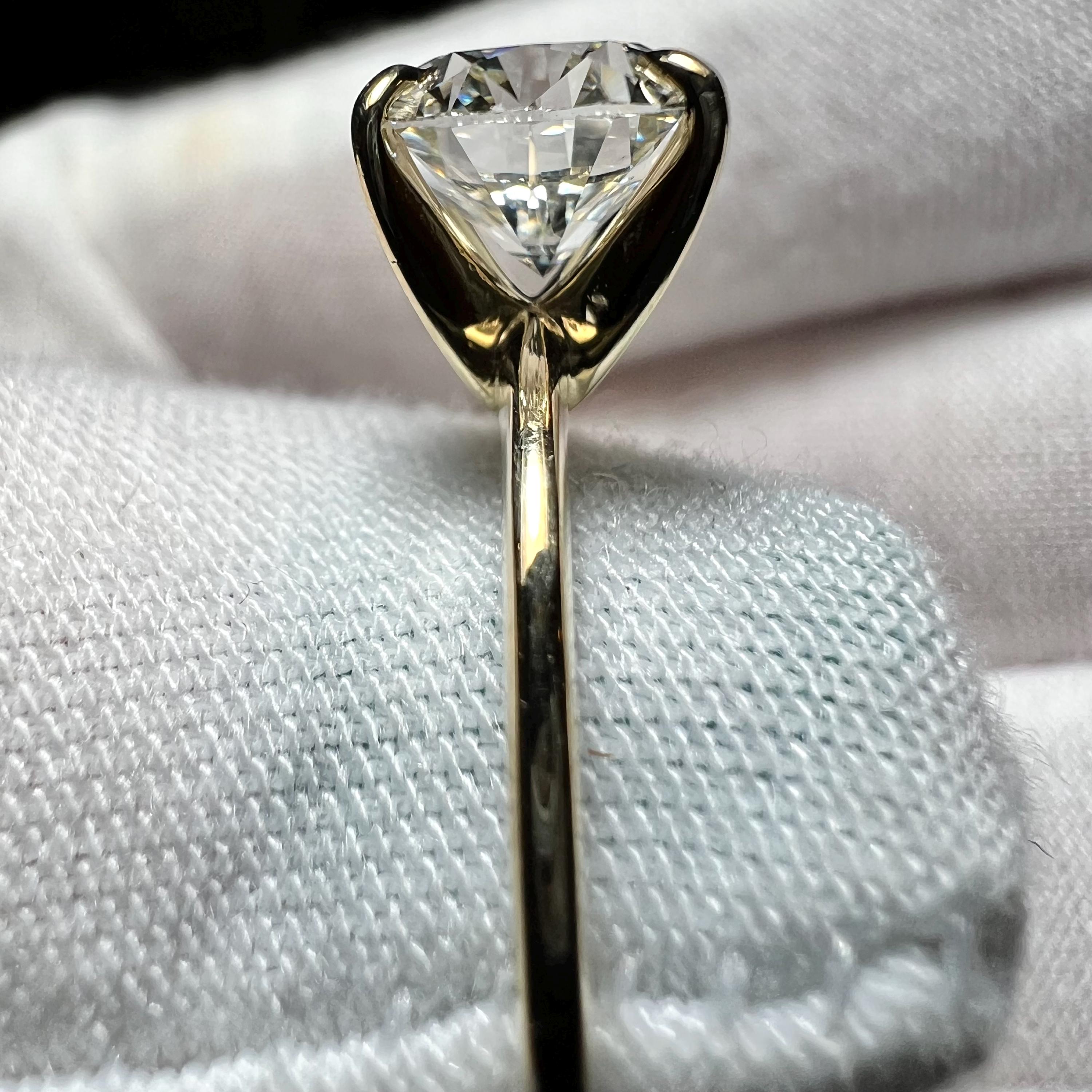 Certified 2CT Round Brilliant Cut H VS2 ID 2EX Lab Grown Diamond 14K Gold 4-prong Engagement Ring