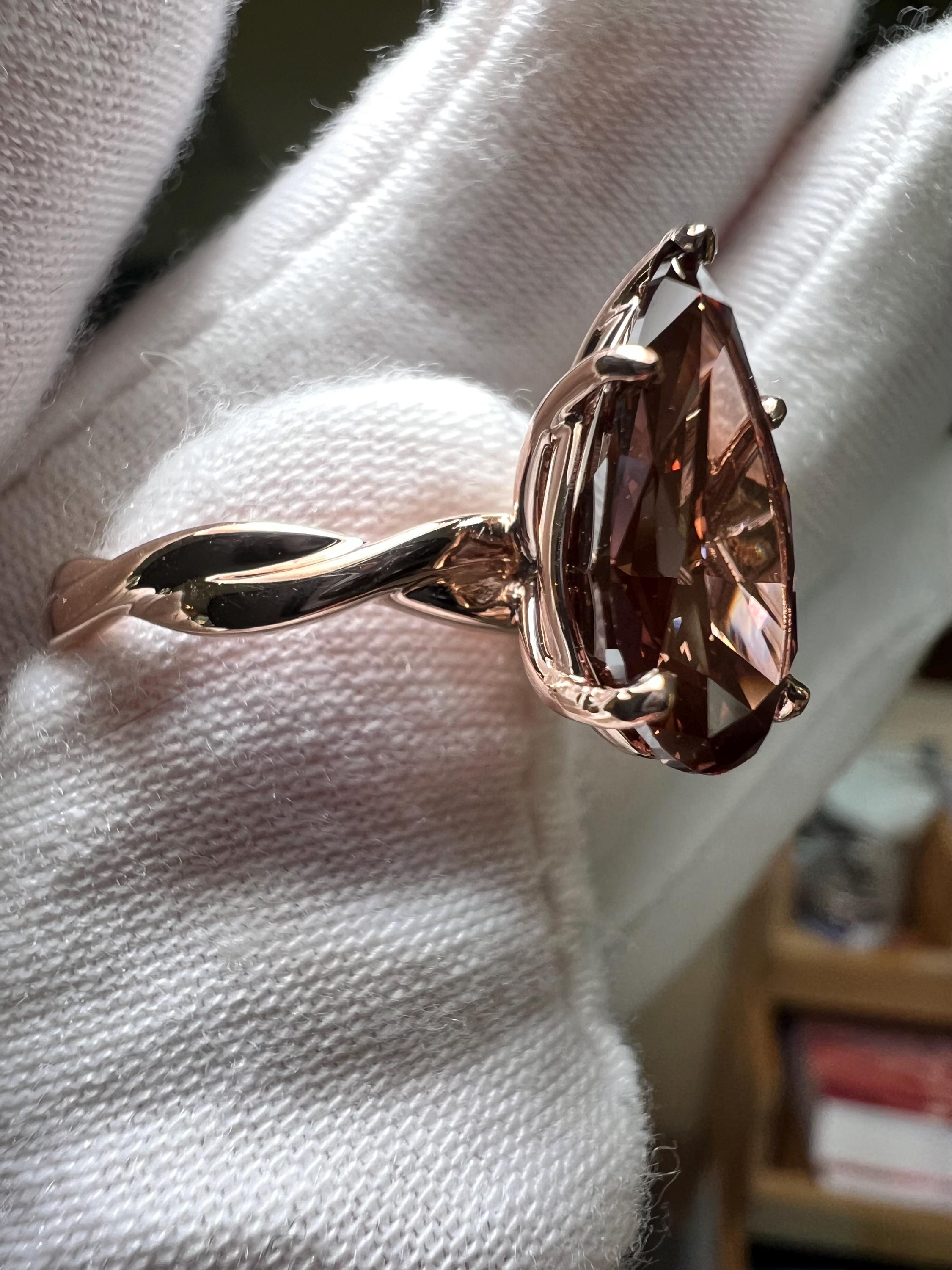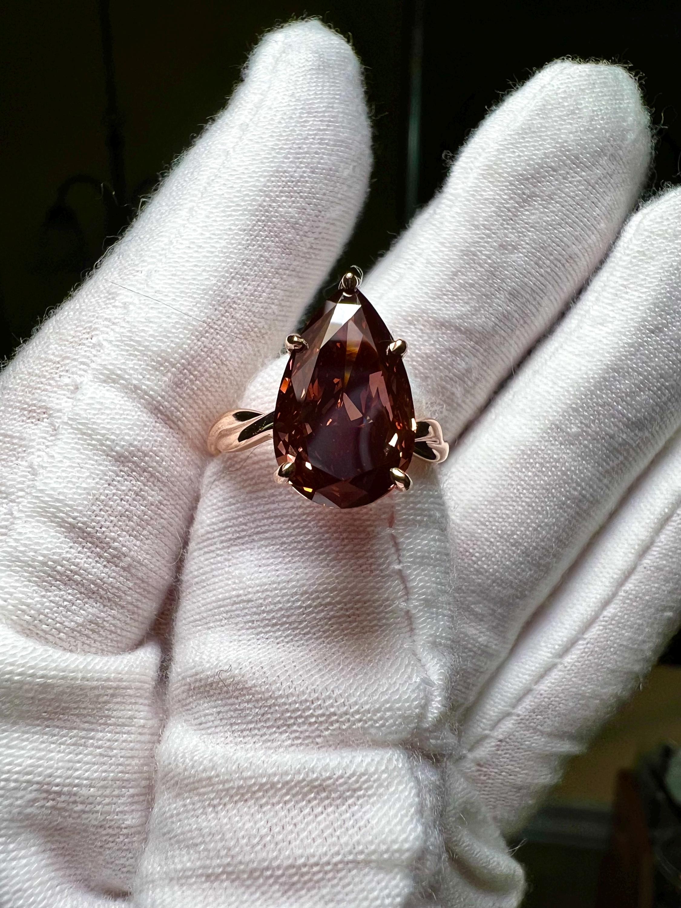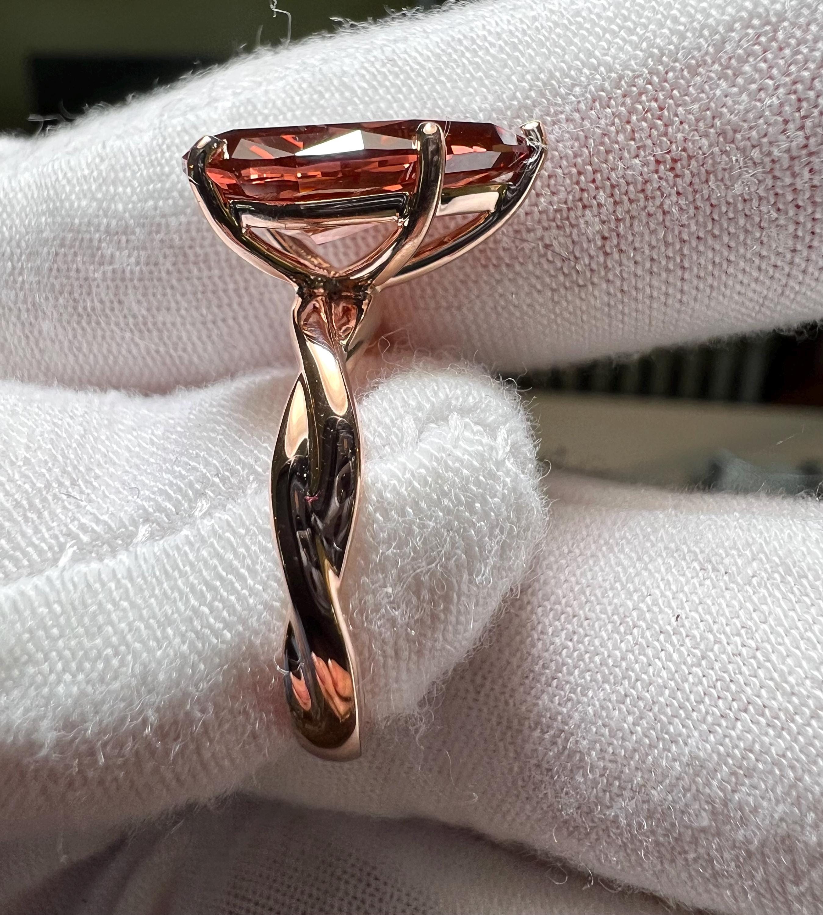Certified 14K Gold 5CT Pear Modified Brilliant Fancy Deep Pink Lab Grown Diamond Intertwined Engagement Ring