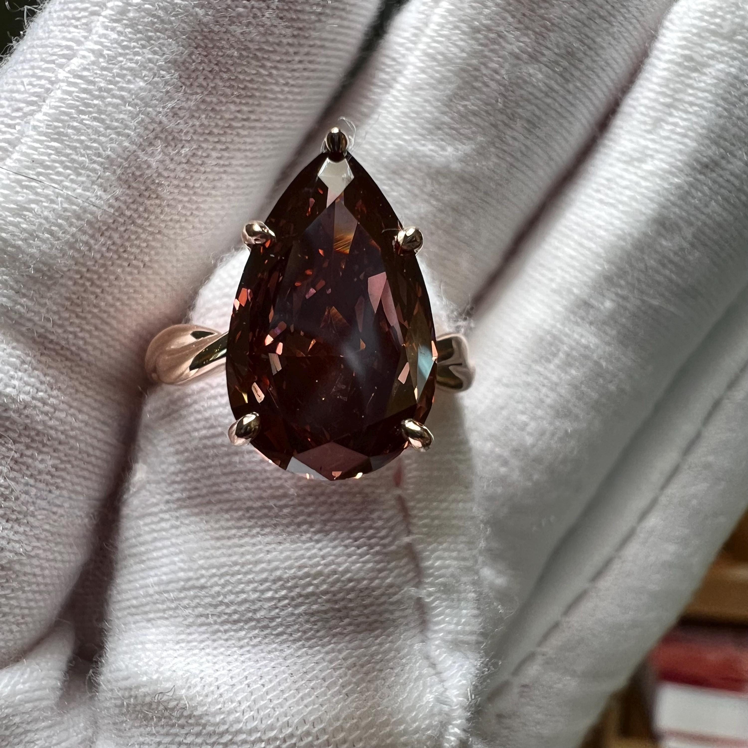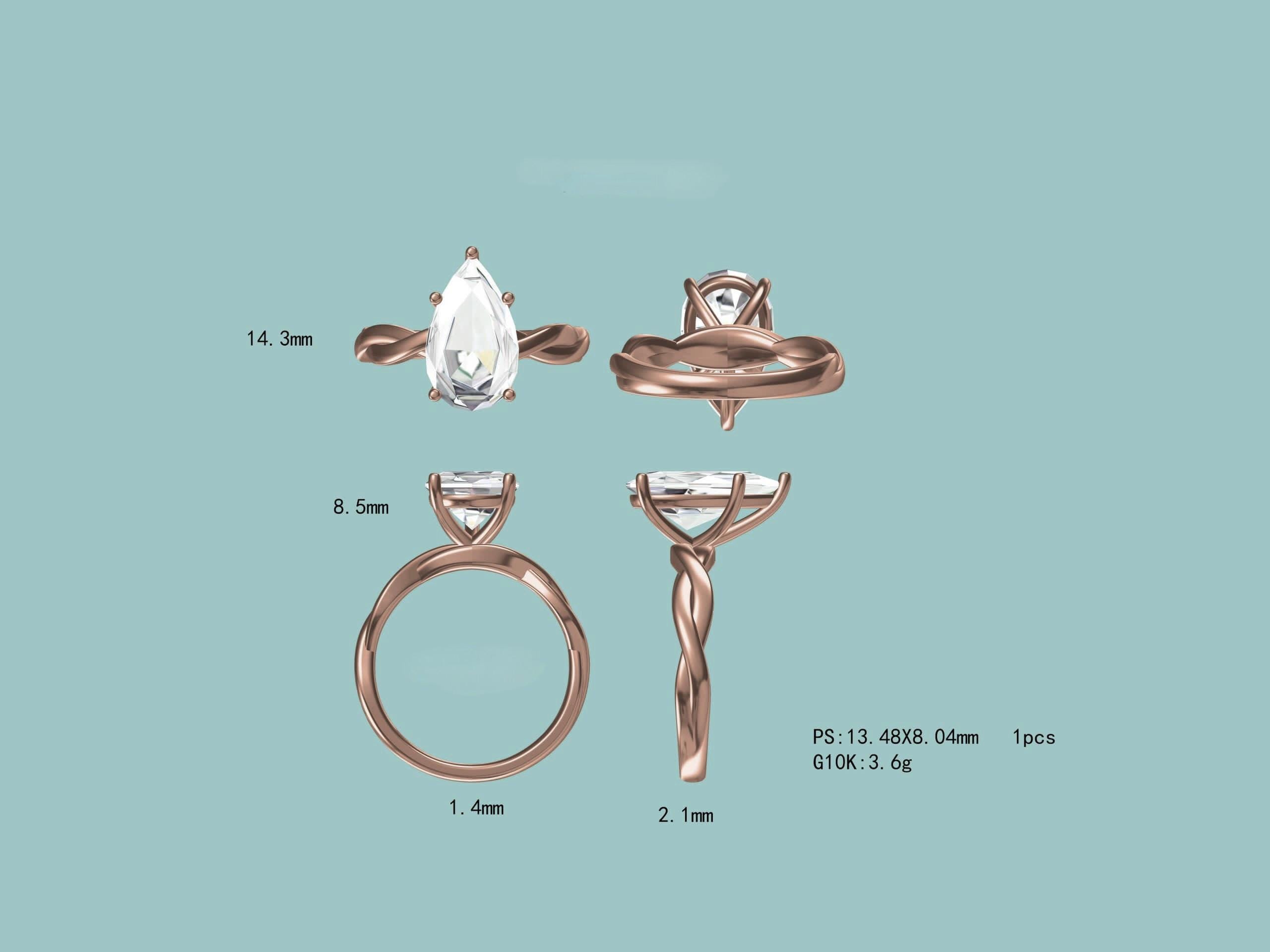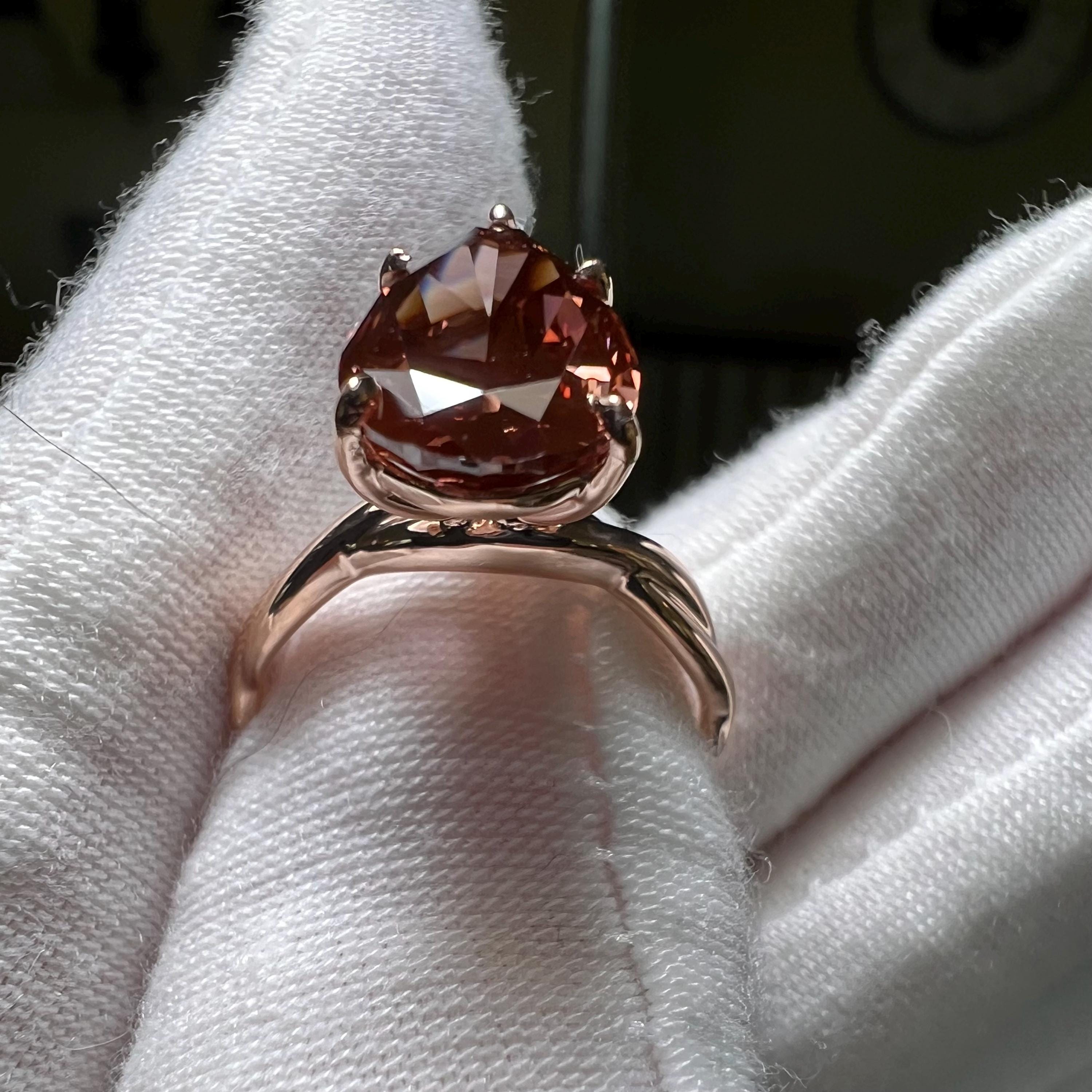 Certified 14K Gold 5CT Pear Modified Brilliant Fancy Deep Pink Lab Grown Diamond Intertwined Engagement Ring