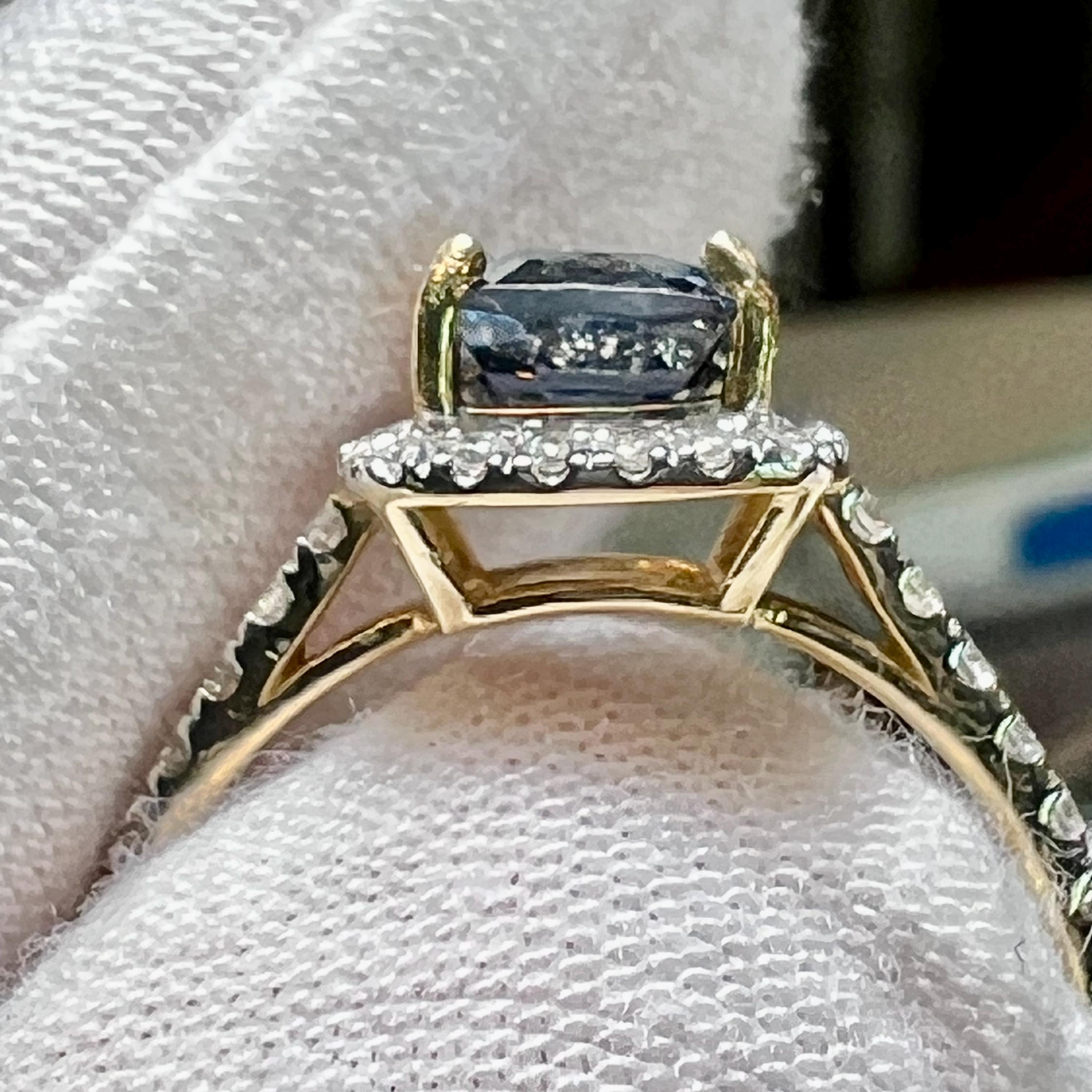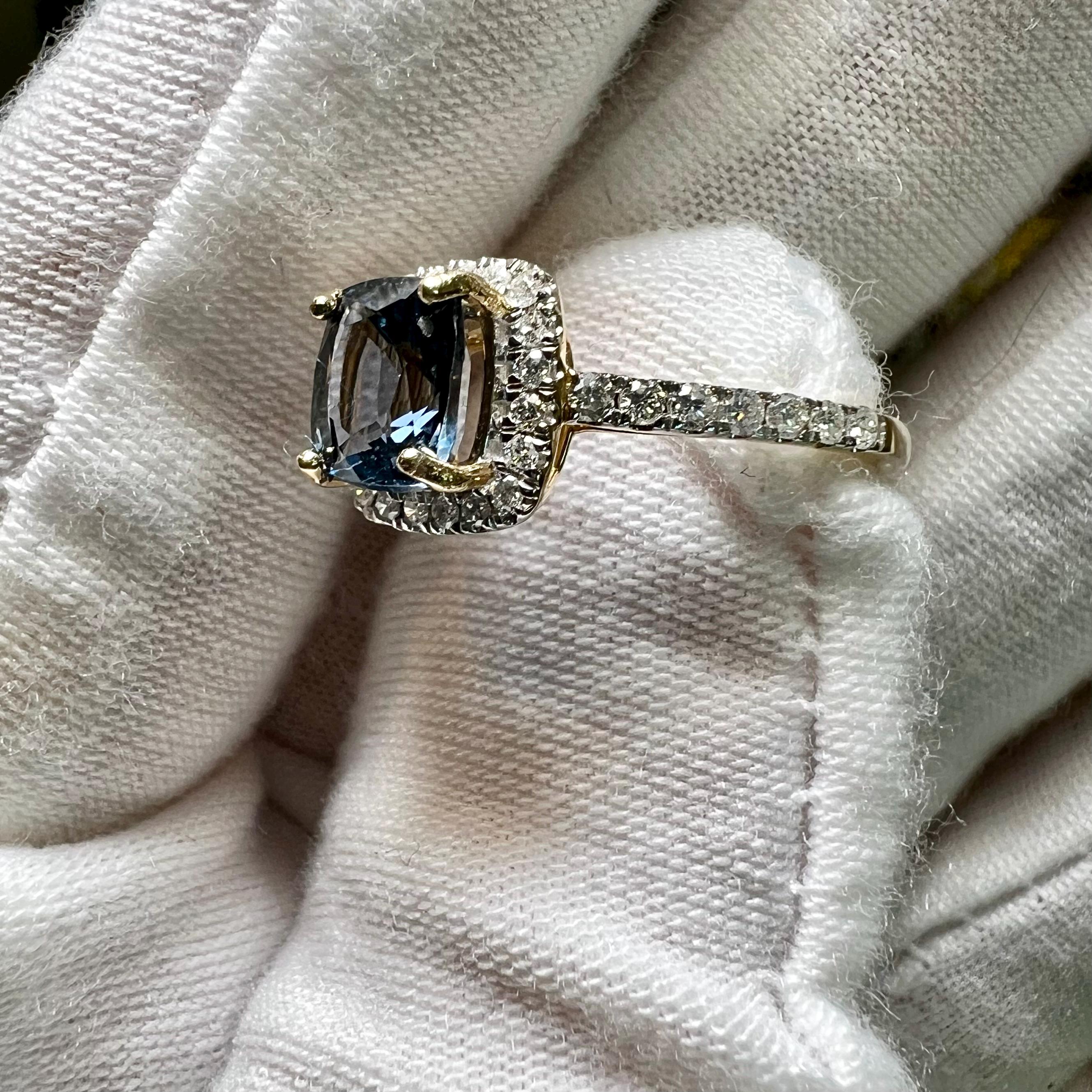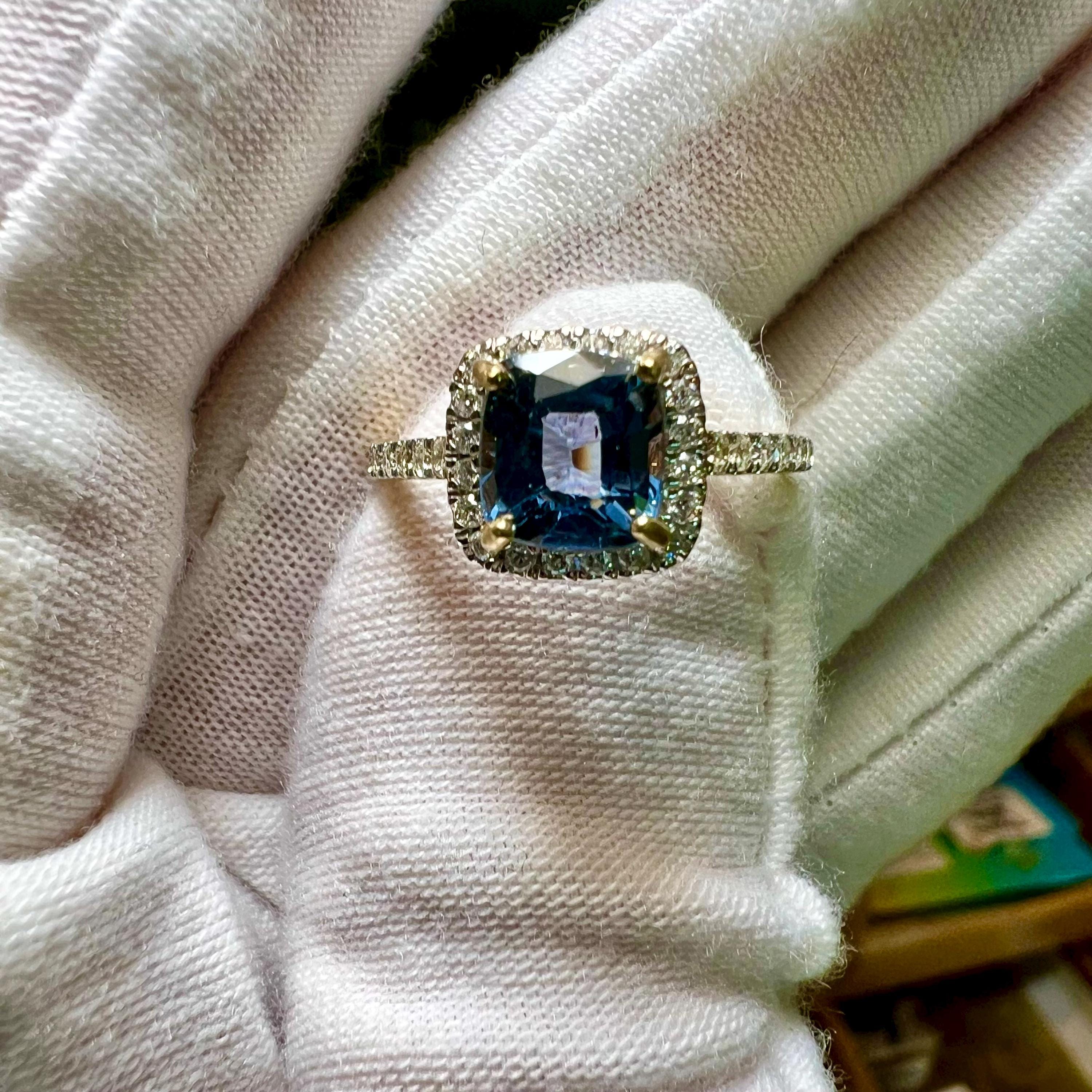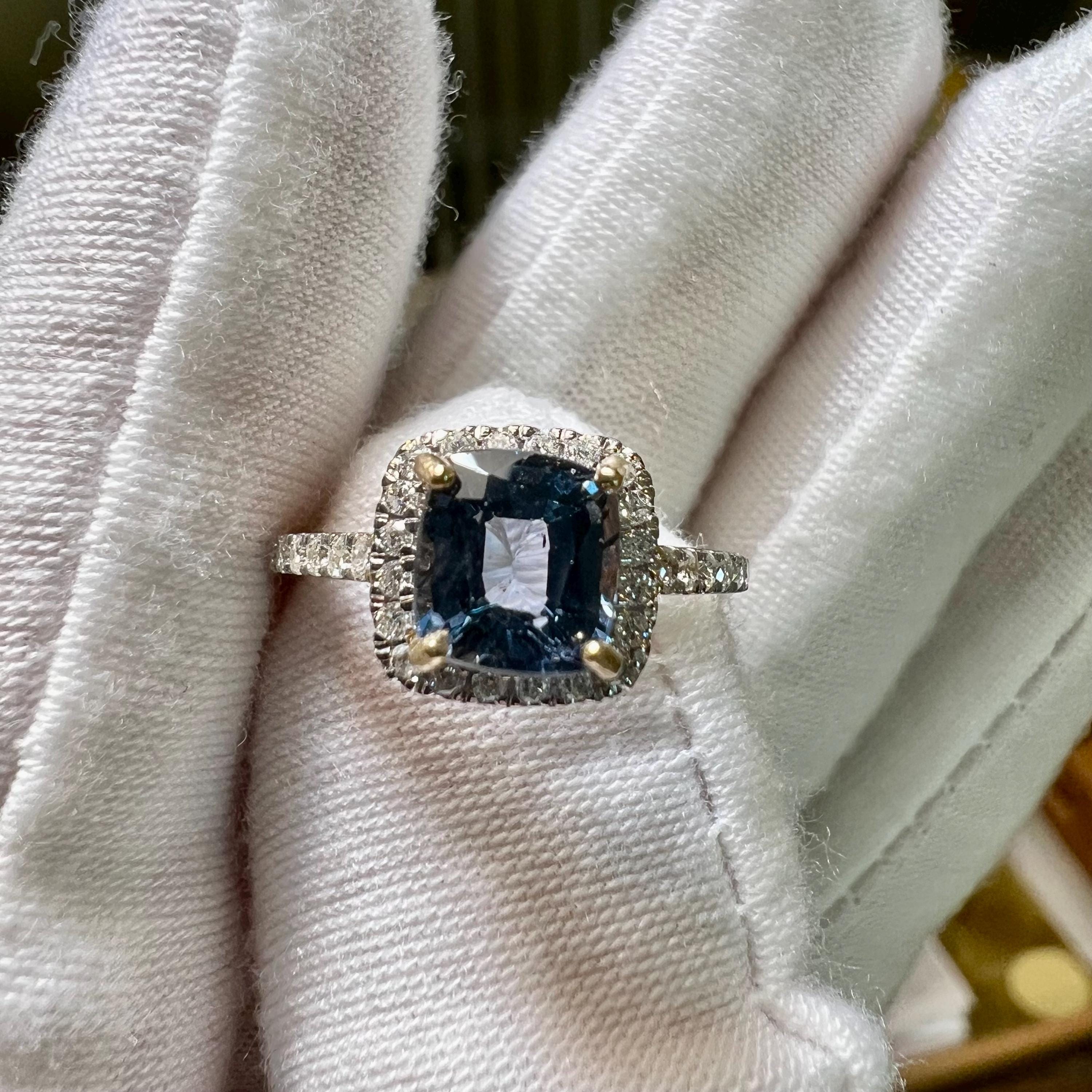 14K Yellow Gold GIA 1.59CT Brilliant Step Cut Cushion Natural Blue Spinel & Diamond Halo Engagement Ring Size 6.5 - Stunning!!!