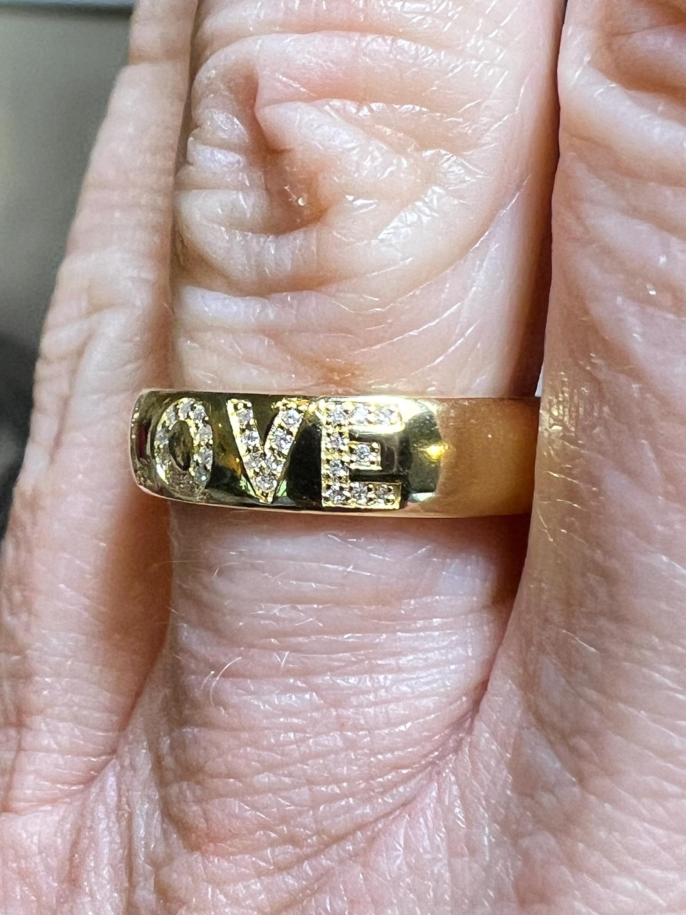 9K Yellow Gold Diamond Love Ring Wedding Band