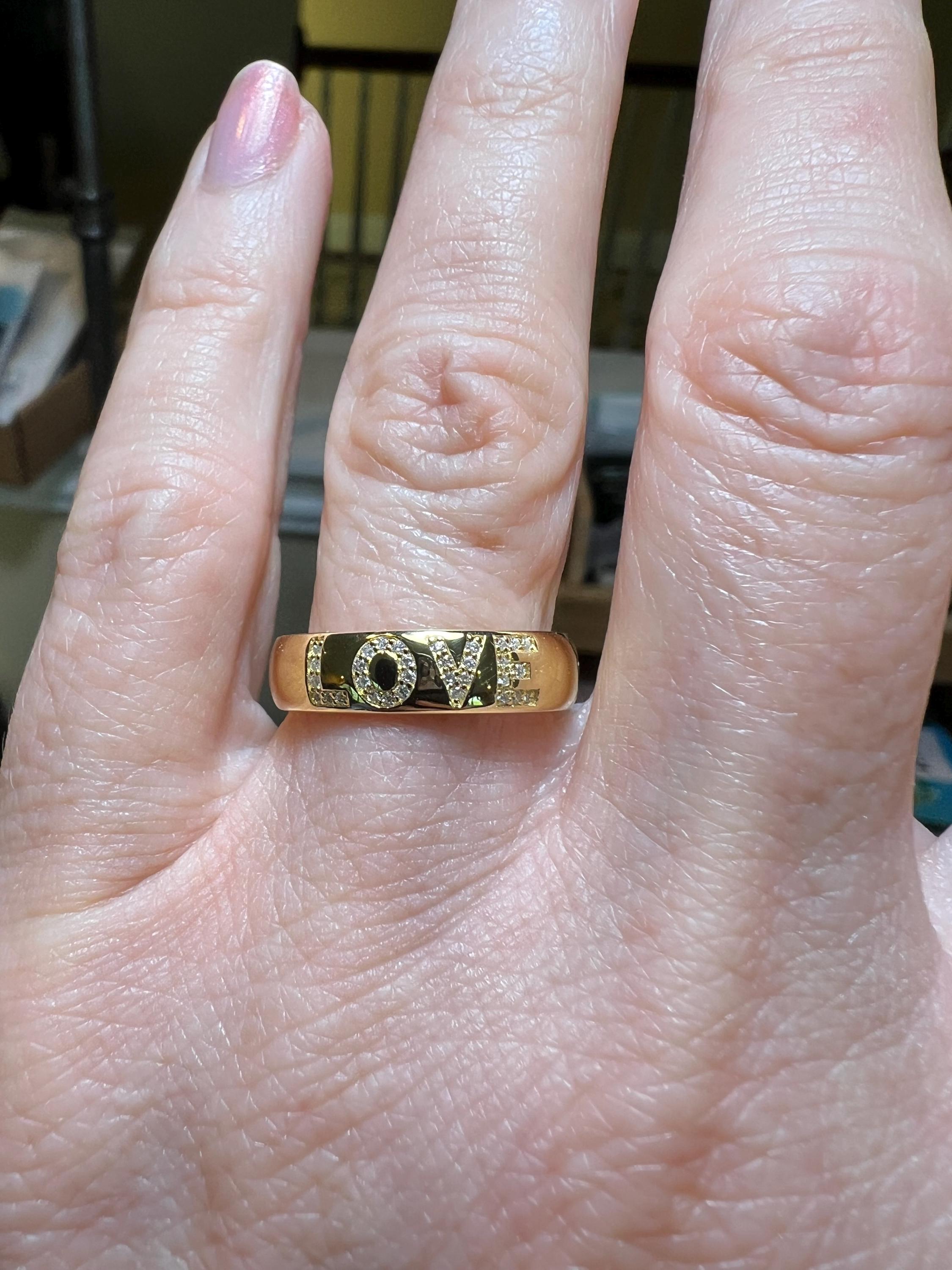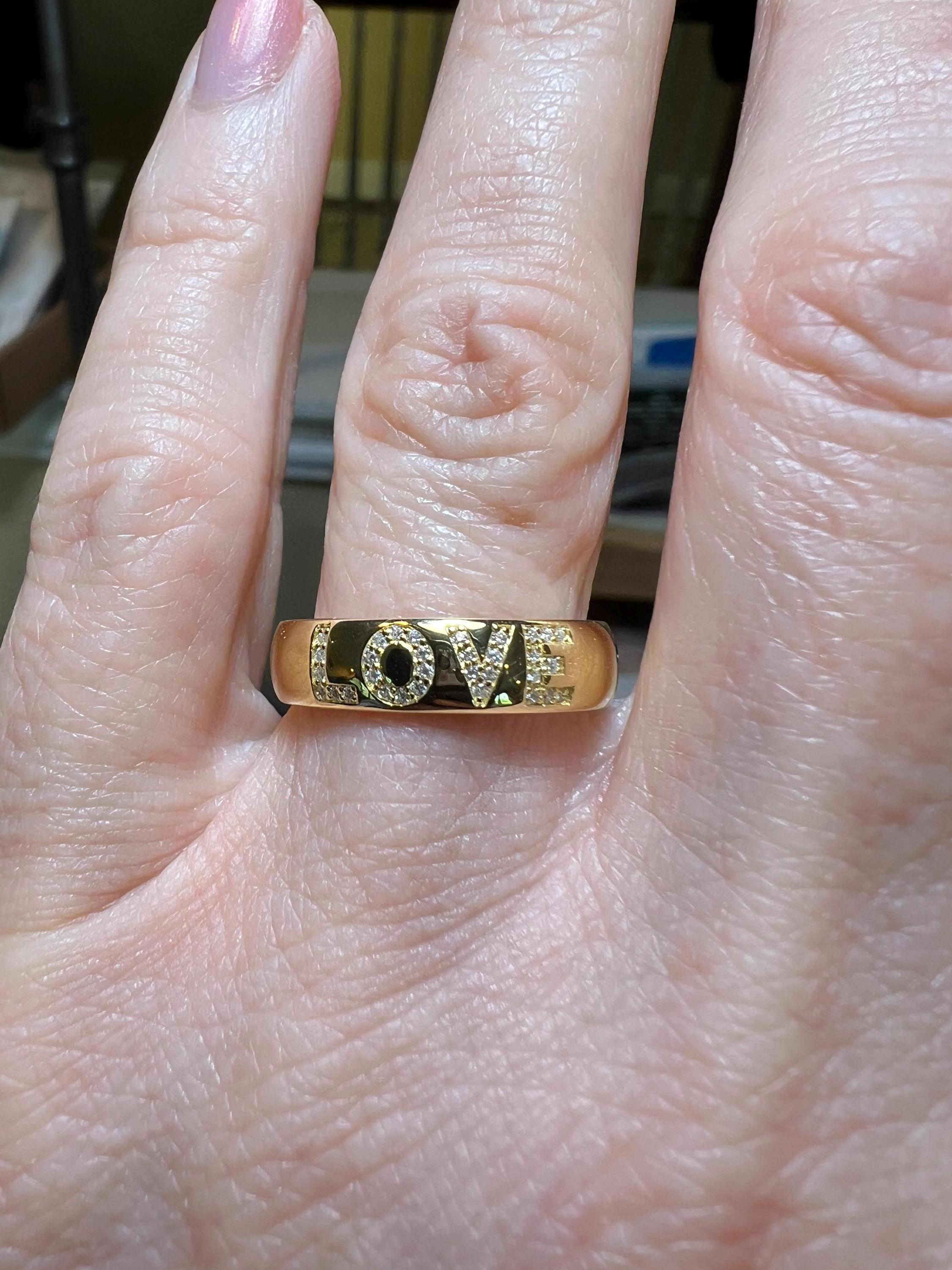 🪛This ring is available in any customization you can think of. We can do different golds, platinum and we can do different widths. The various words also can be customized. See also fancy color golds available. Message me.