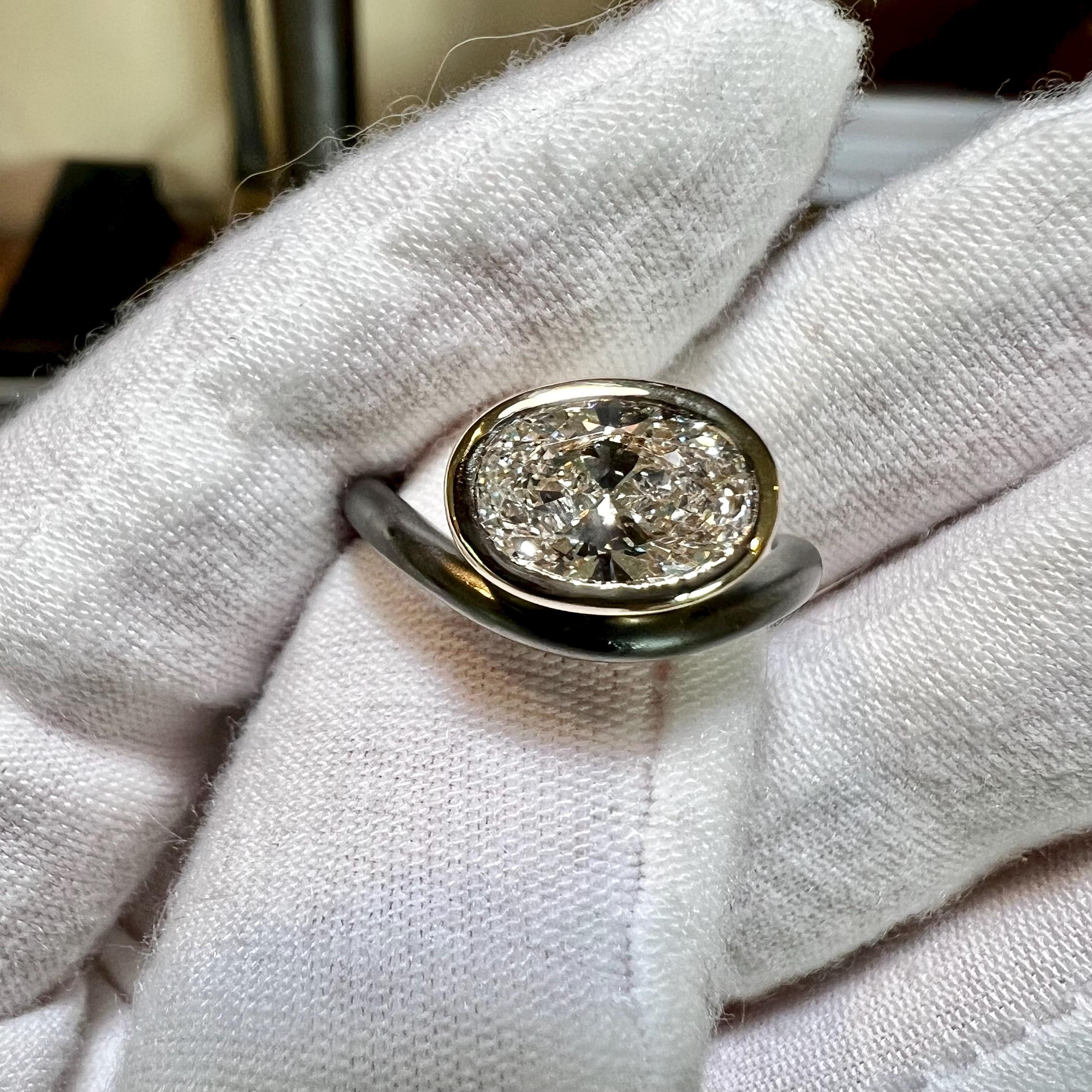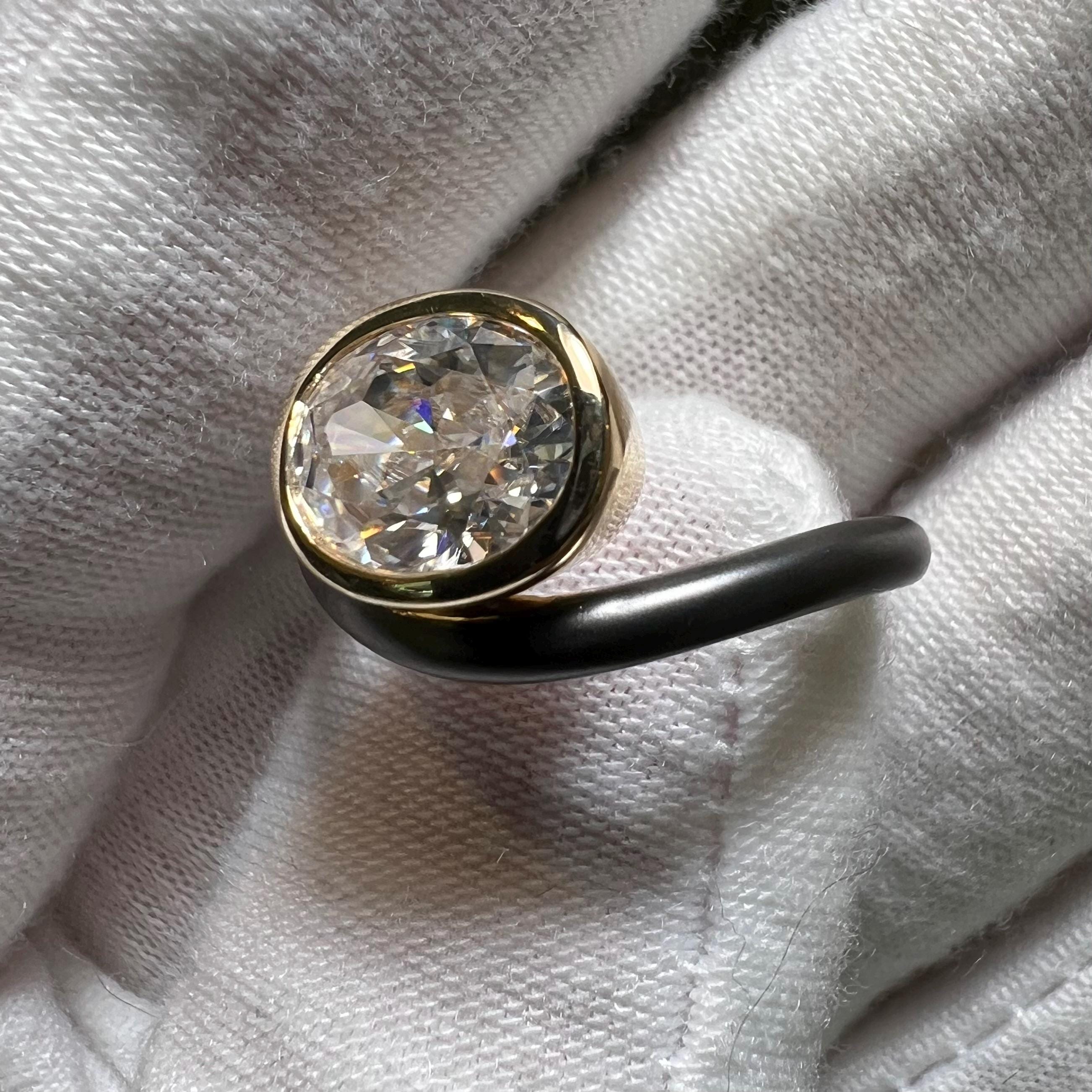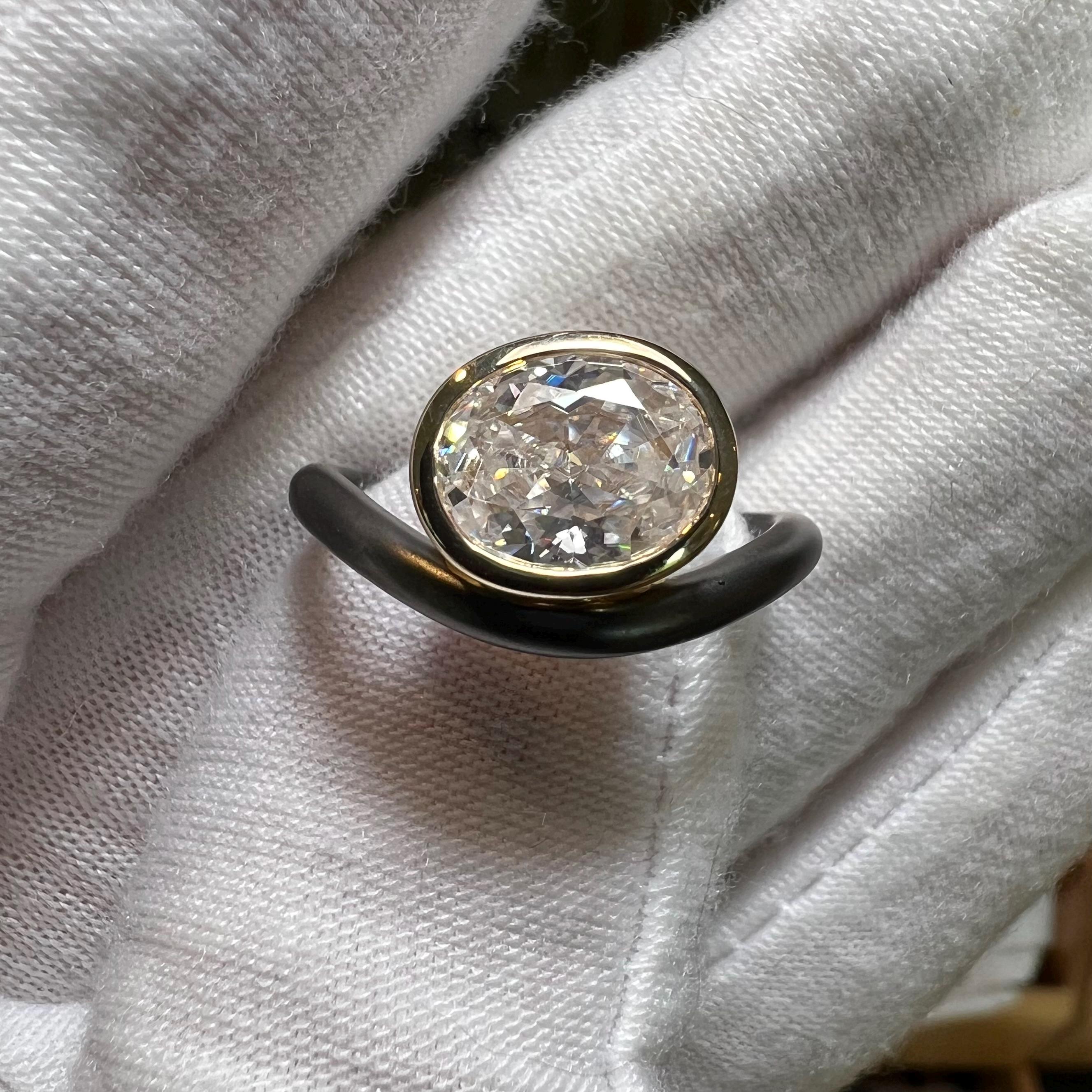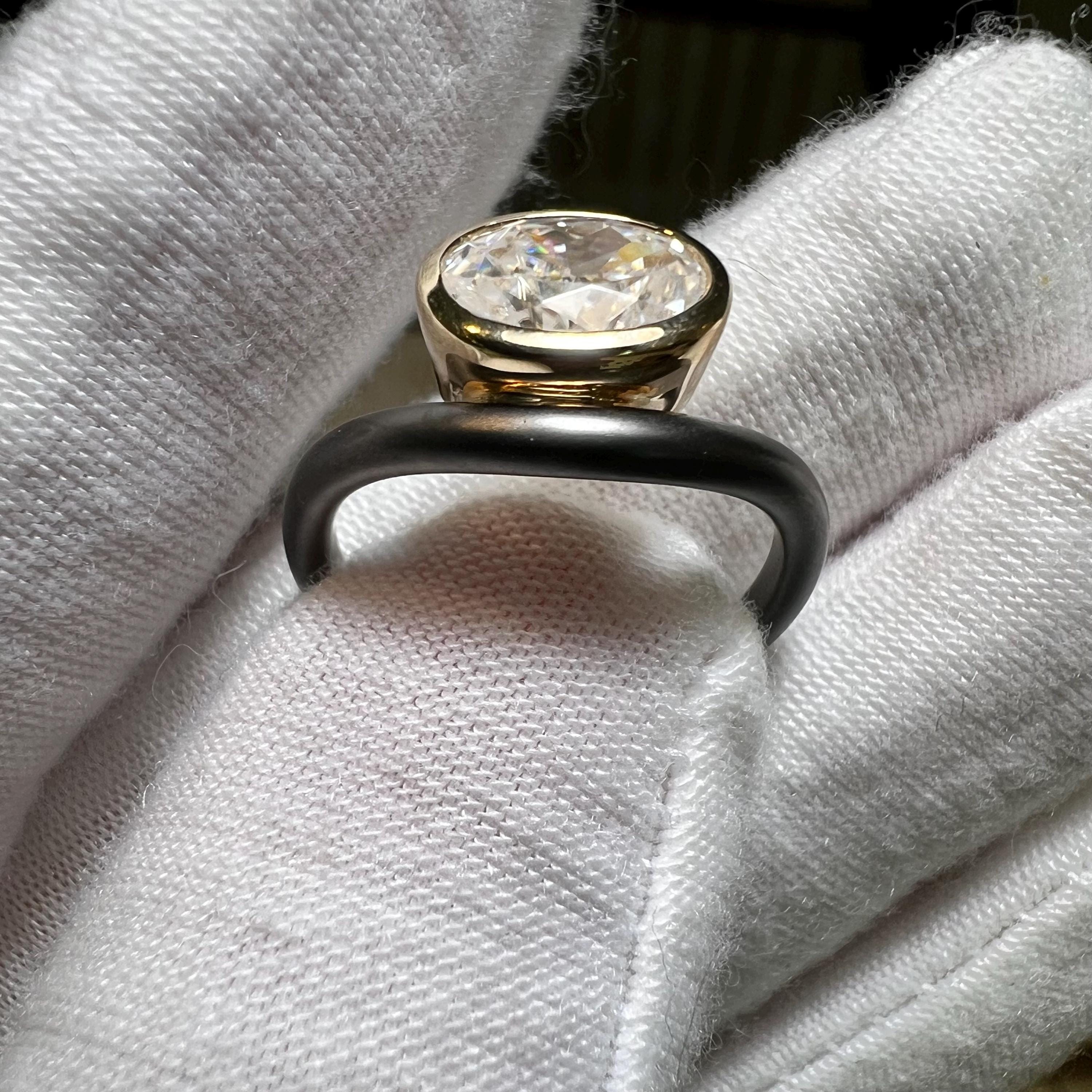 10K Yellow Gold 2CT Oval G VS1 2EX Lab Grown Diamond Bezel Black Rhodium Engagement Ring