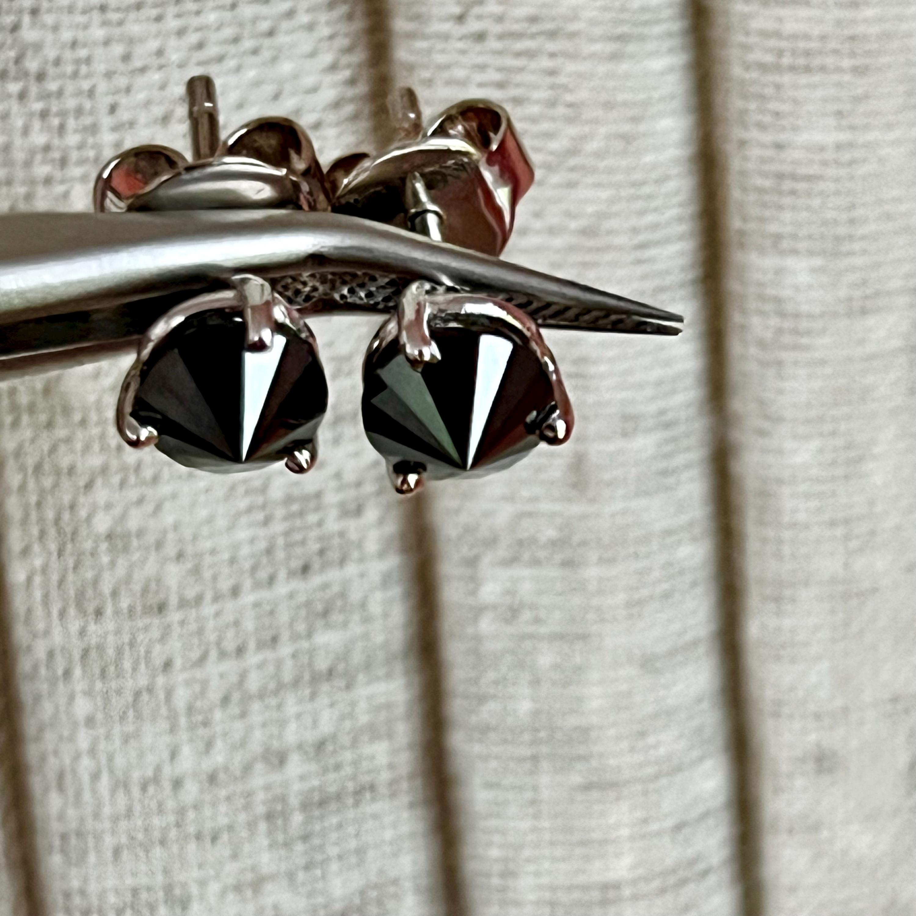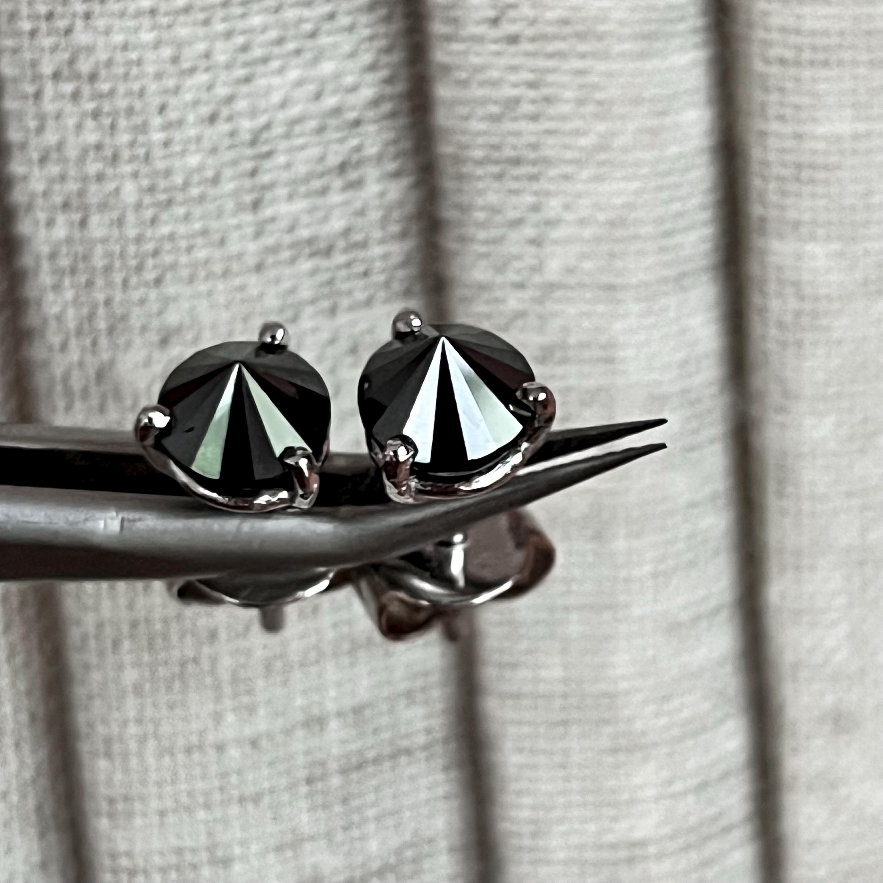 Same Day Ship! 14K White Gold 2TCW Round Brilliant Cut Natural Black Diamond Reverse Set Screw Back Studs -
