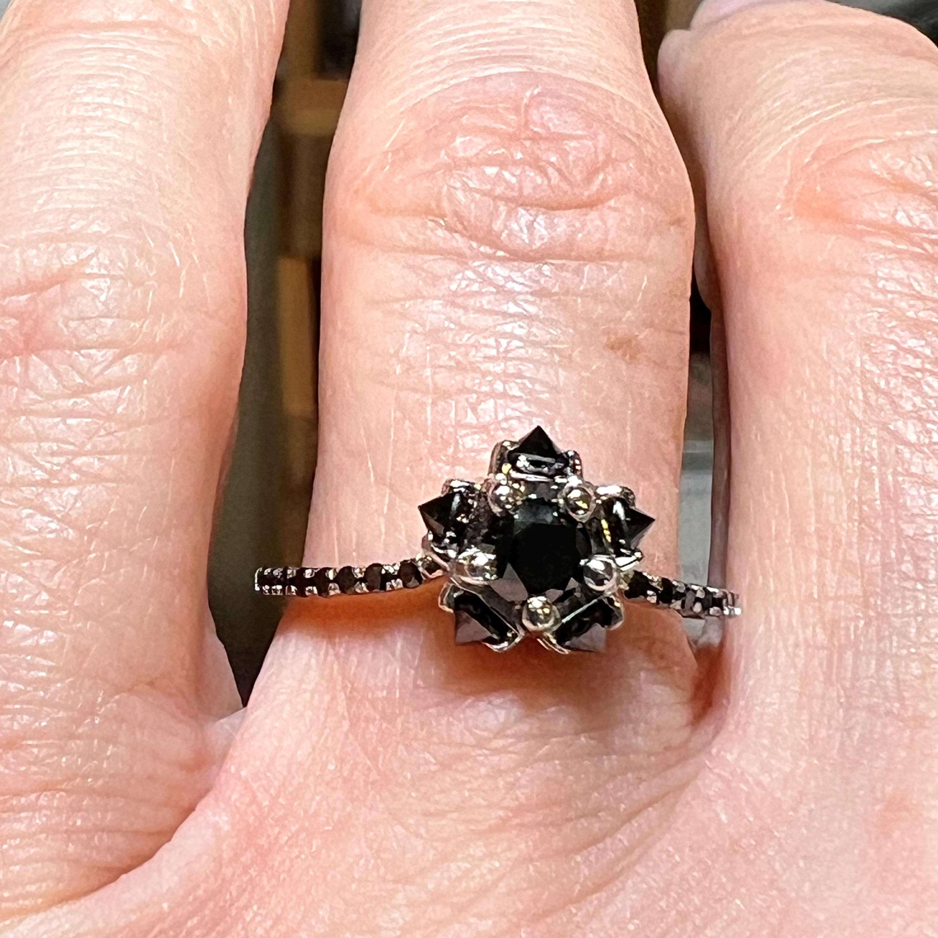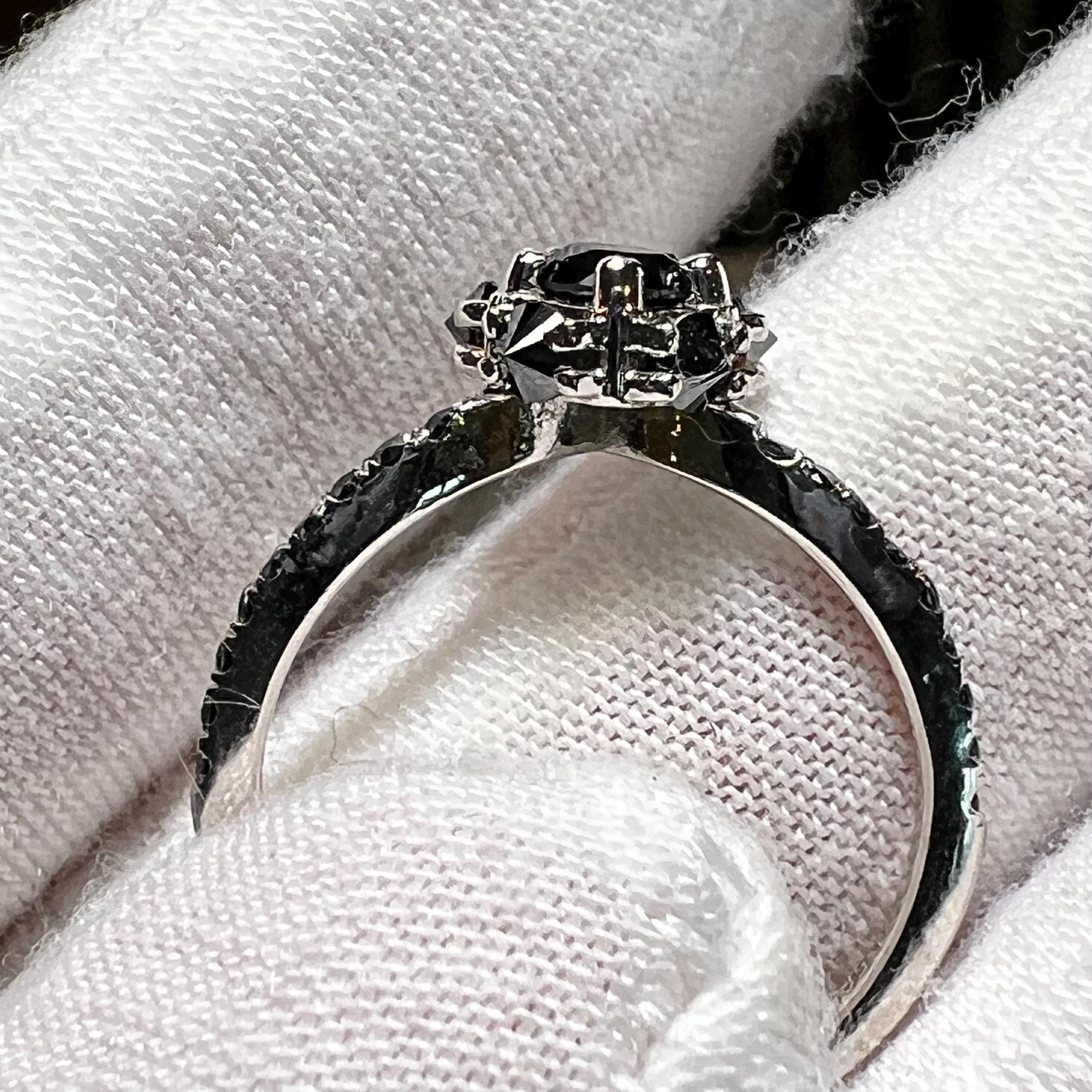 Same Day Ship! 14K White Gold Round Brilliant Cut Natural Black Diamond Reverse Set Engagement Ring Size 7 / April Birthstone