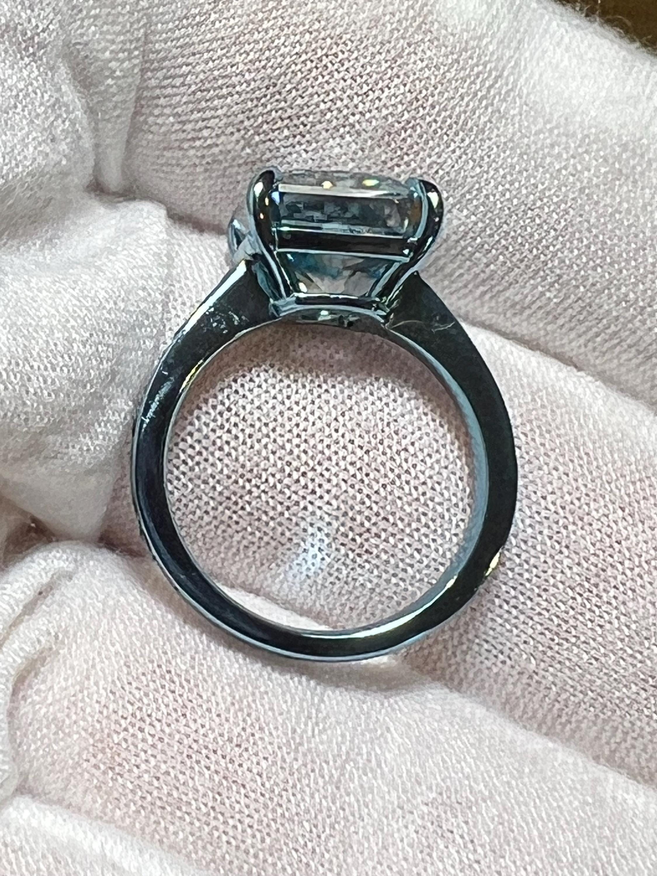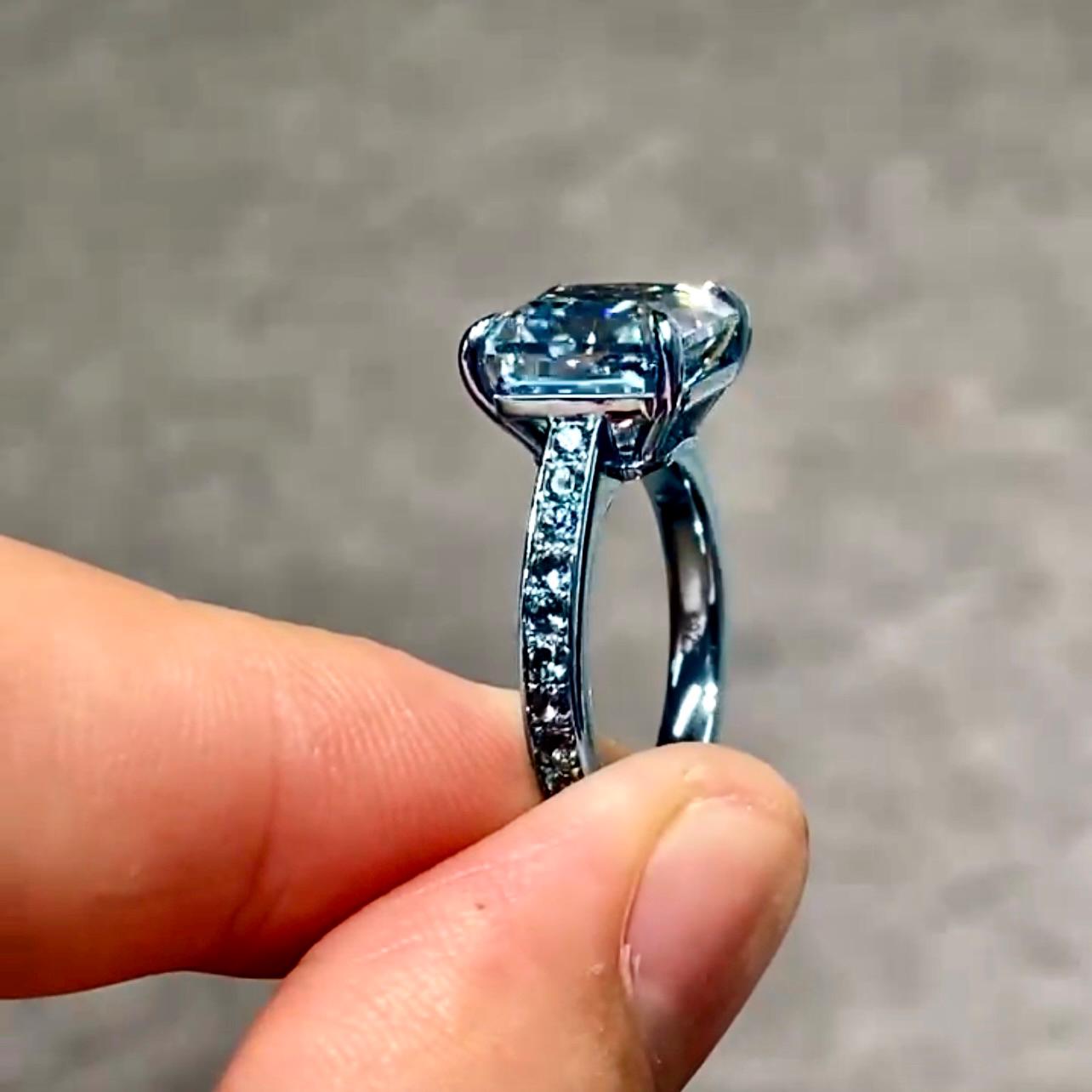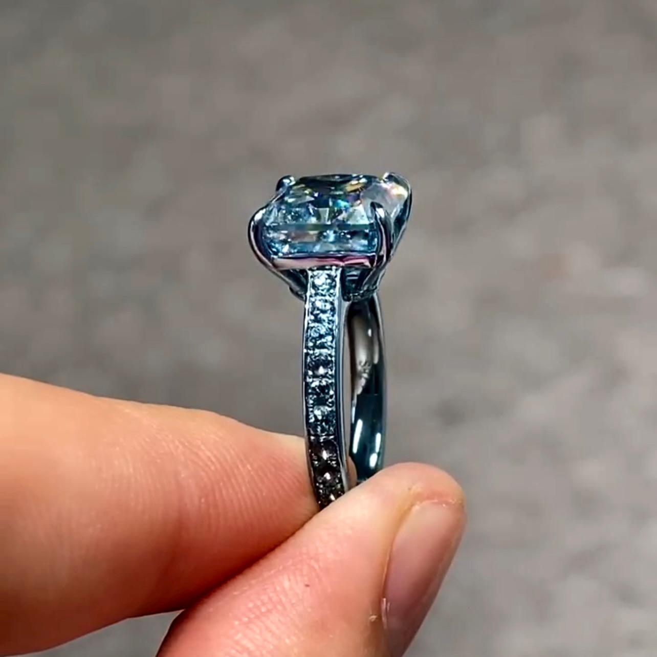 14K Blue Gold 3CT Princess Cut Fancy Blue Intense VS1 2EX Lab Grown Diamond Engagement Ring
