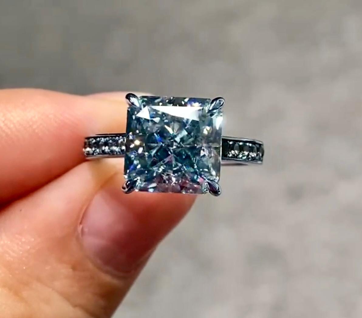 3CT Princess Cut Fancy Intense Blue VS1 2EX Lab grown Diamond