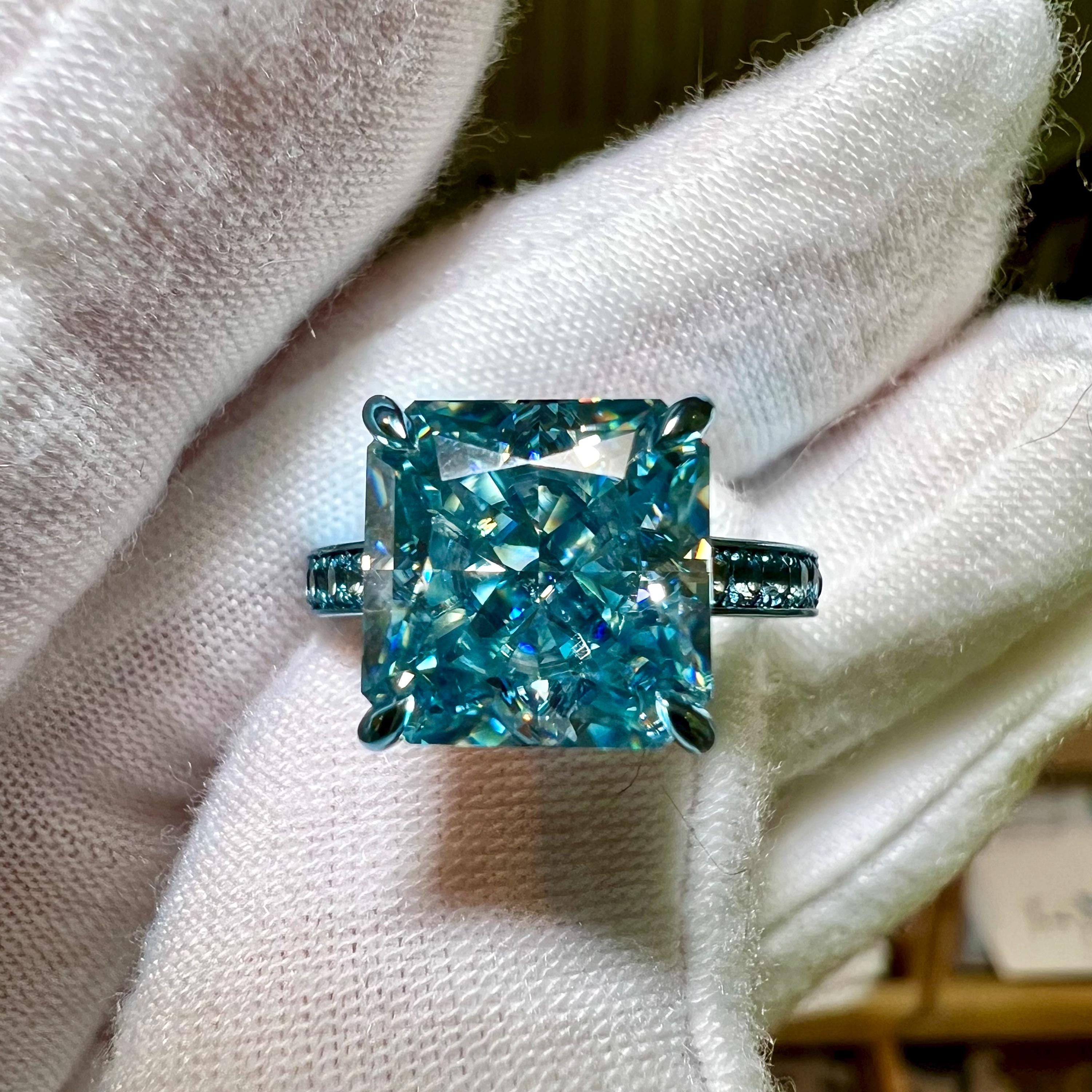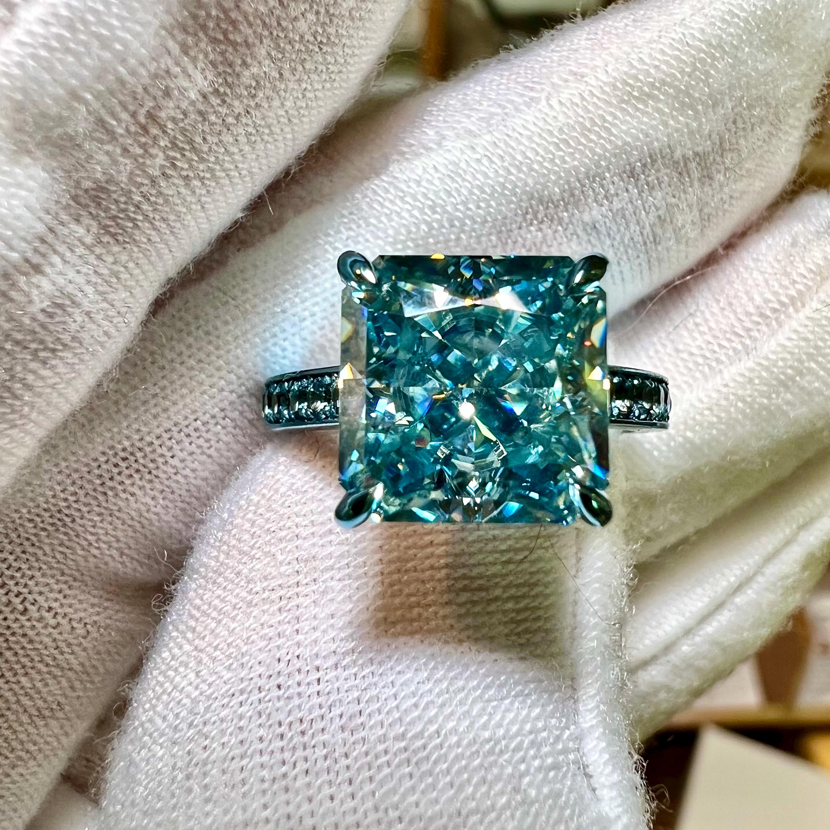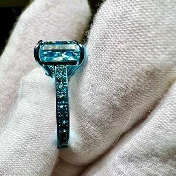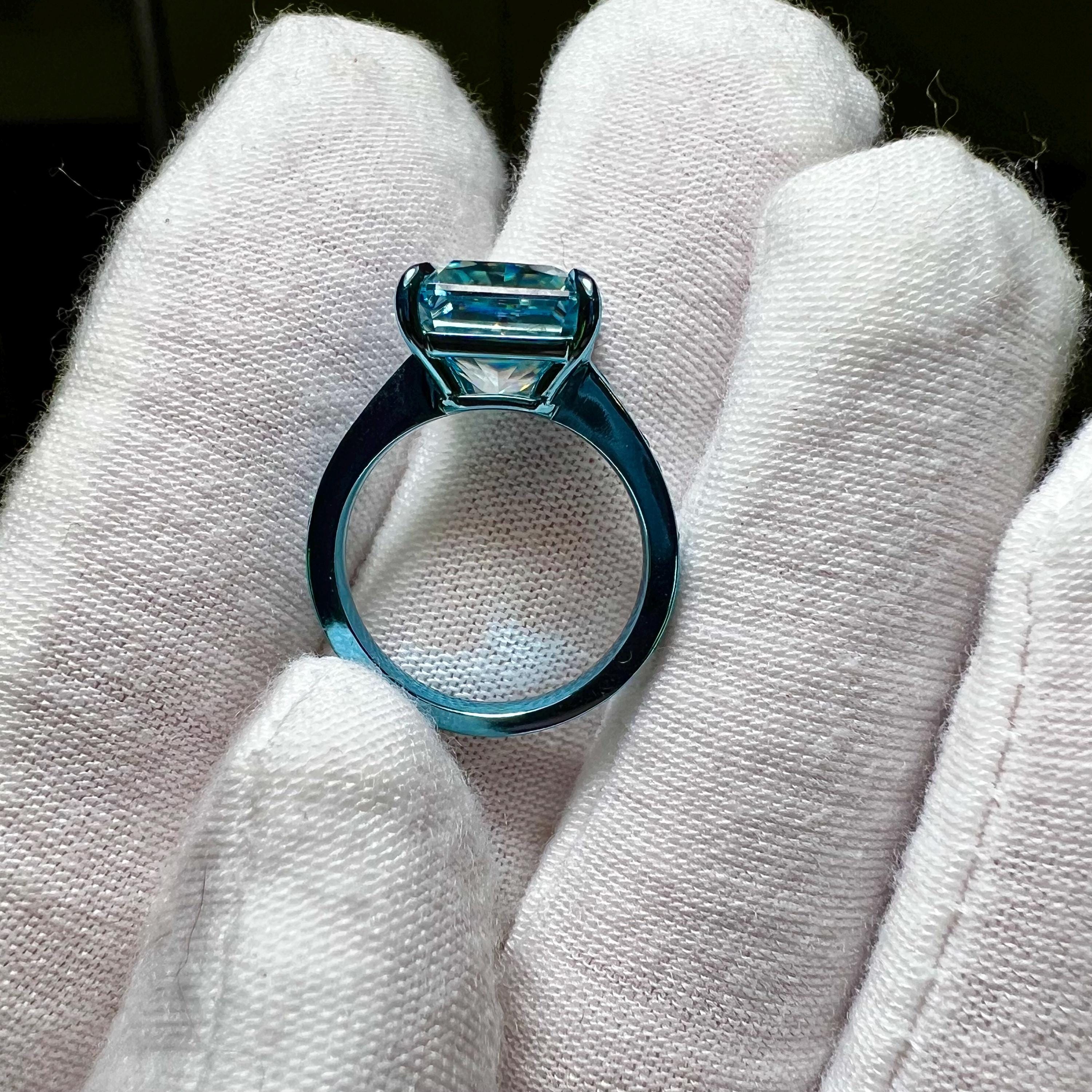 10K Dusty Blue Gold 3.5CT Square Radiant Fancy Vivid Blue VVS2 Lab Grown Diamond Engagement Ring