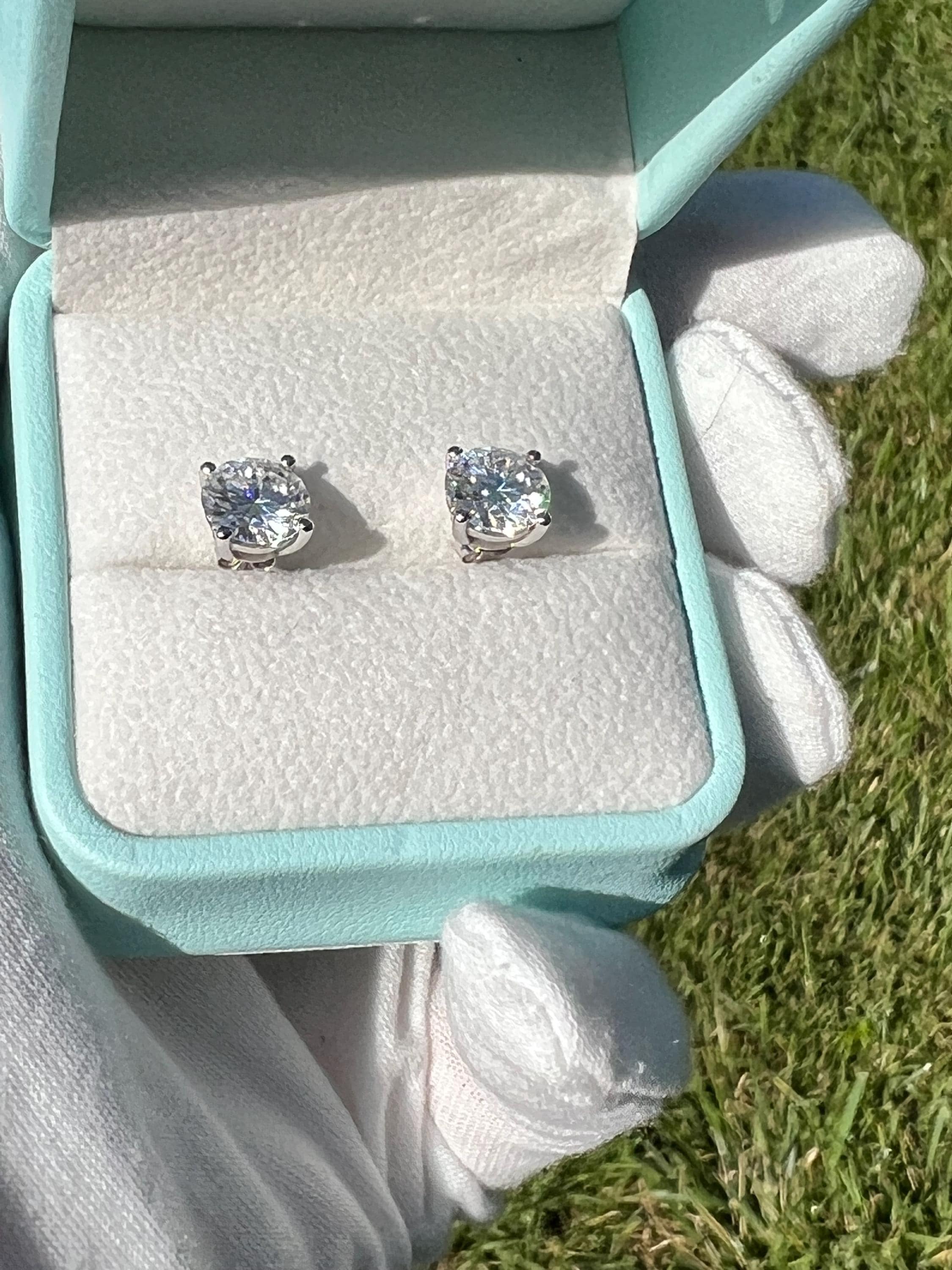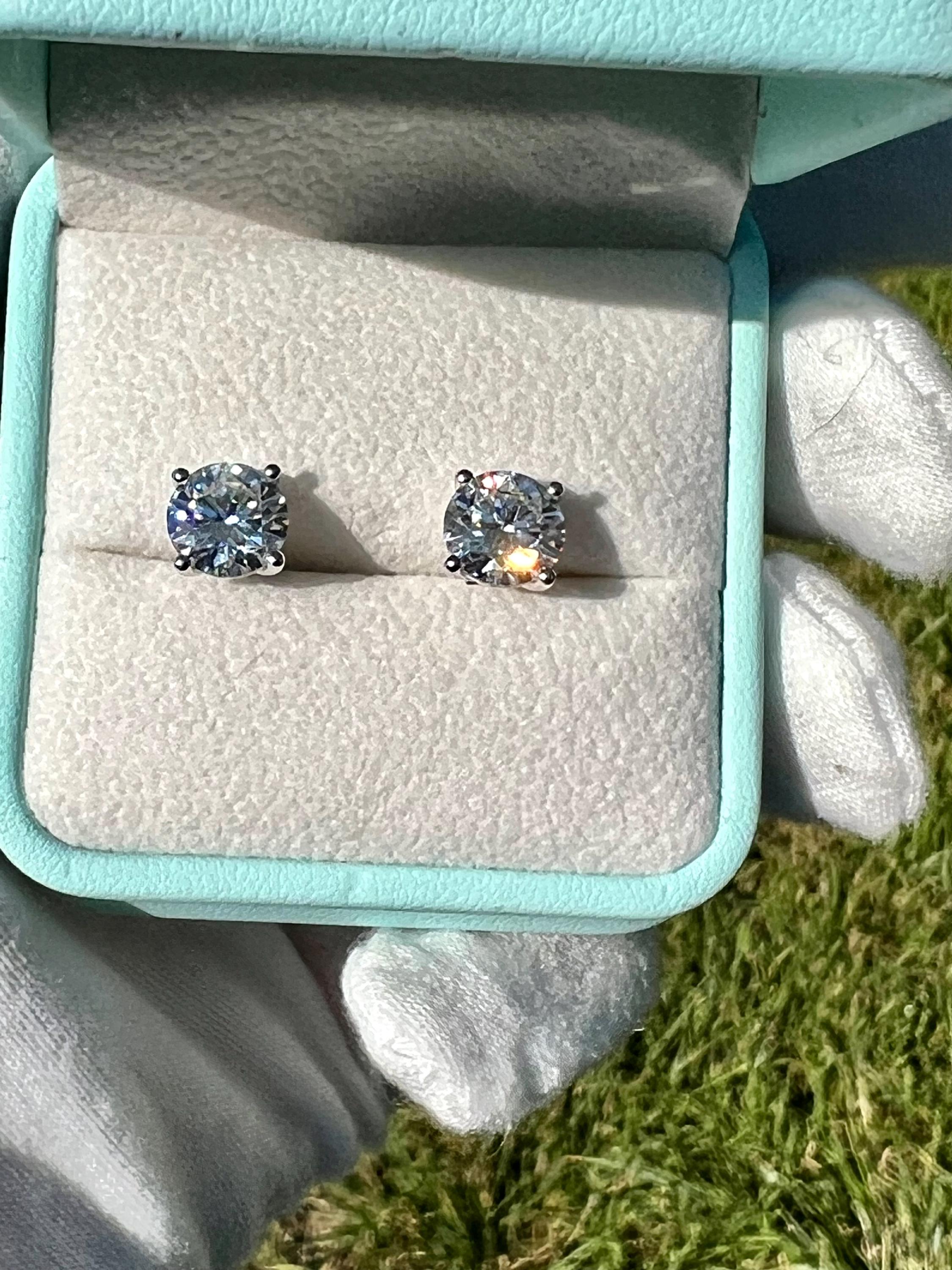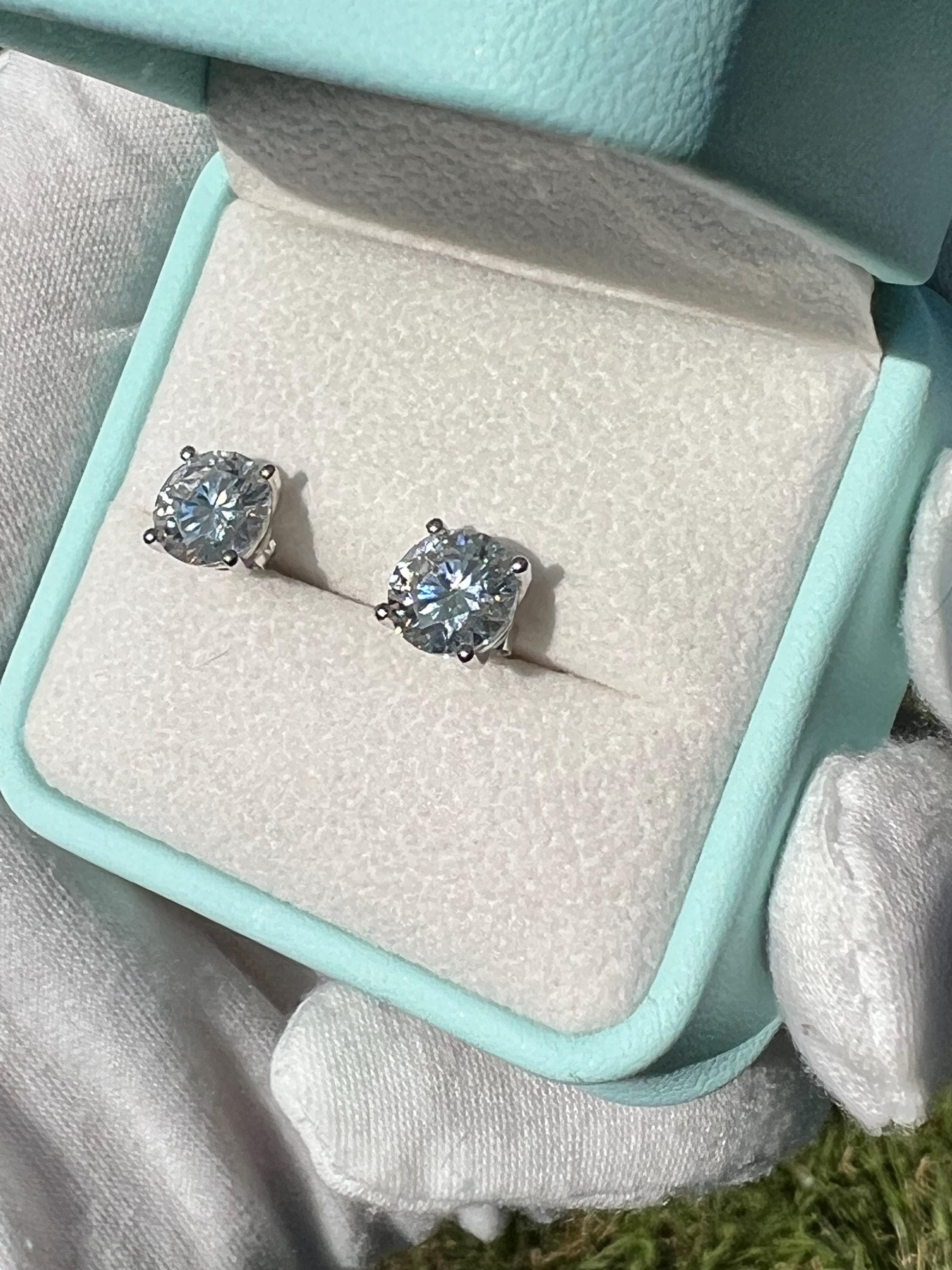 📸 Photography note: I realized after I listed the earrings that the Robins Egg Blue Tiffany color earring box gives the diamonds just the tiniest blue hue. That color is not present in the diamonds at all. They are G color and they are white and they do not have any fluorescence.