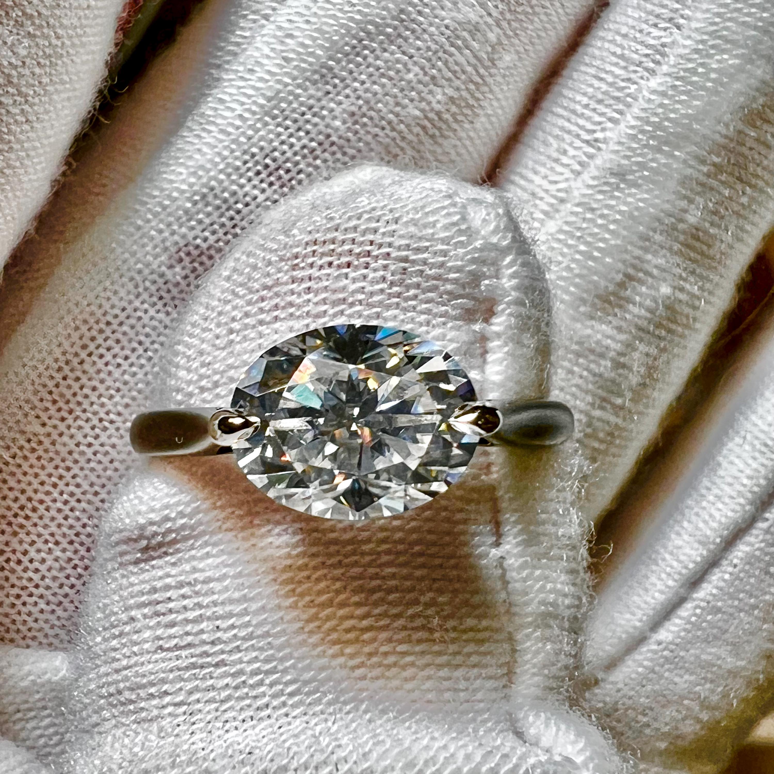10K Black Gold 2CT Oval G VVS2 2EX Lab Grown Diamond East West Two Prong Engagement Ring