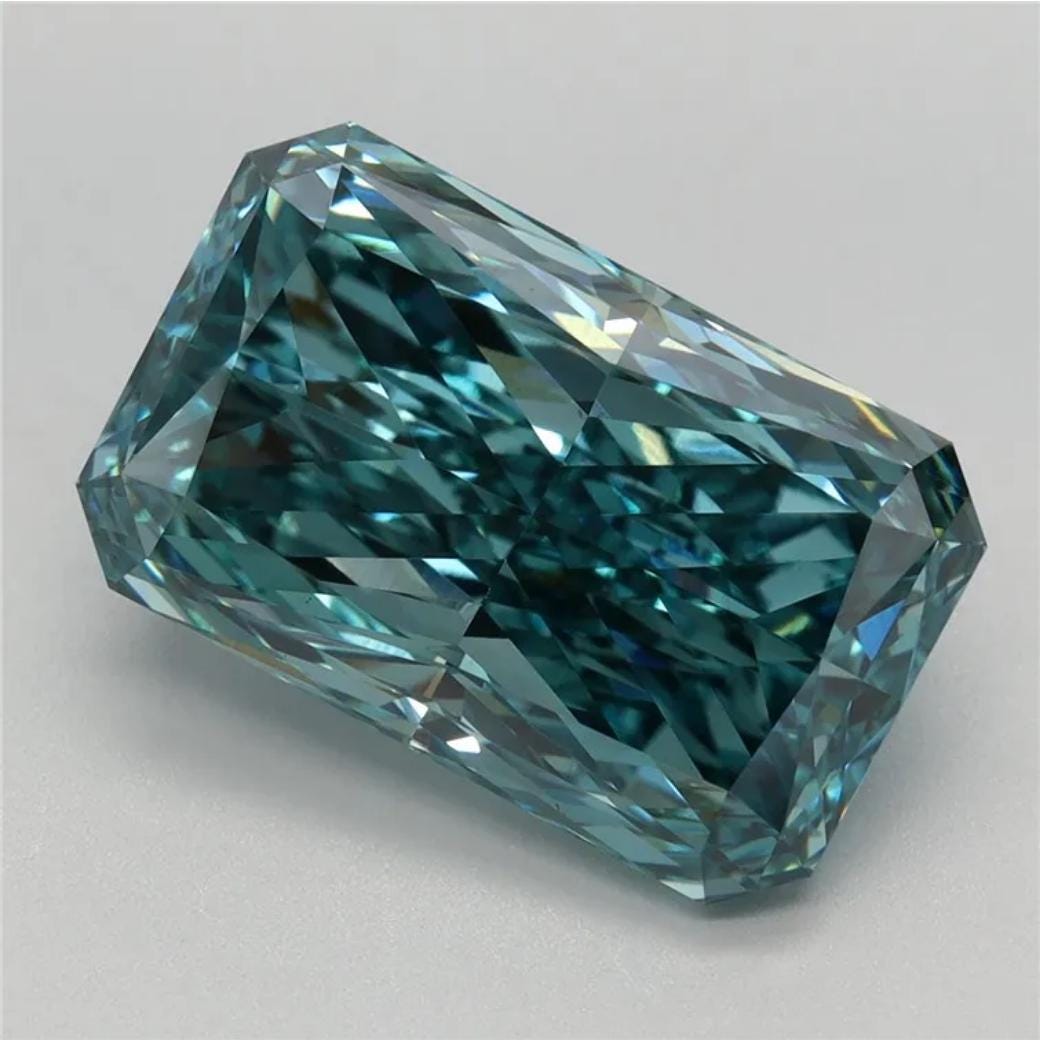 Radiant 5ct Fancy Vivid Greenish Blue VS1 2EX Lab Grown Diamond - Custom Engagement Ring