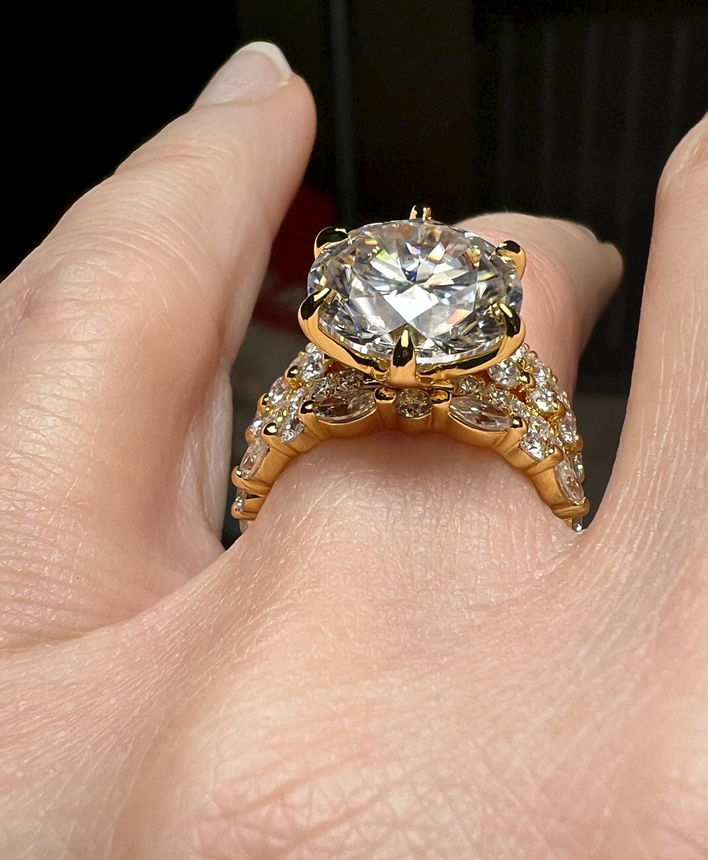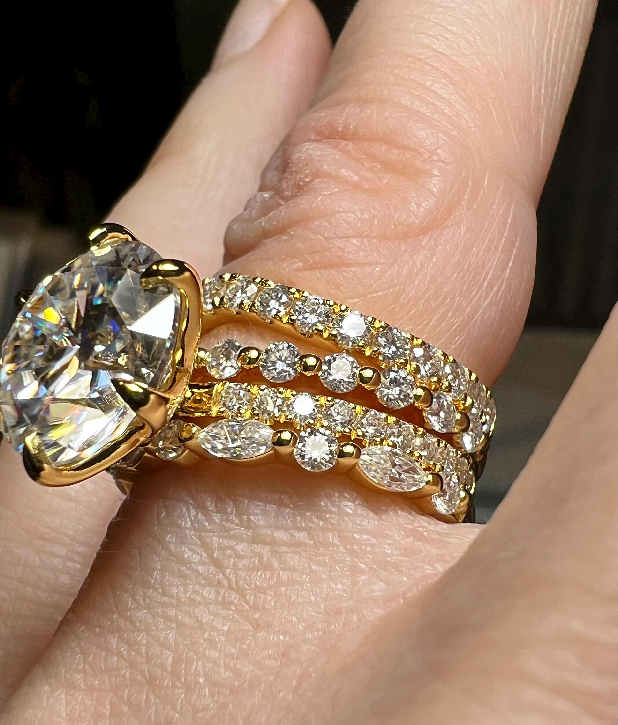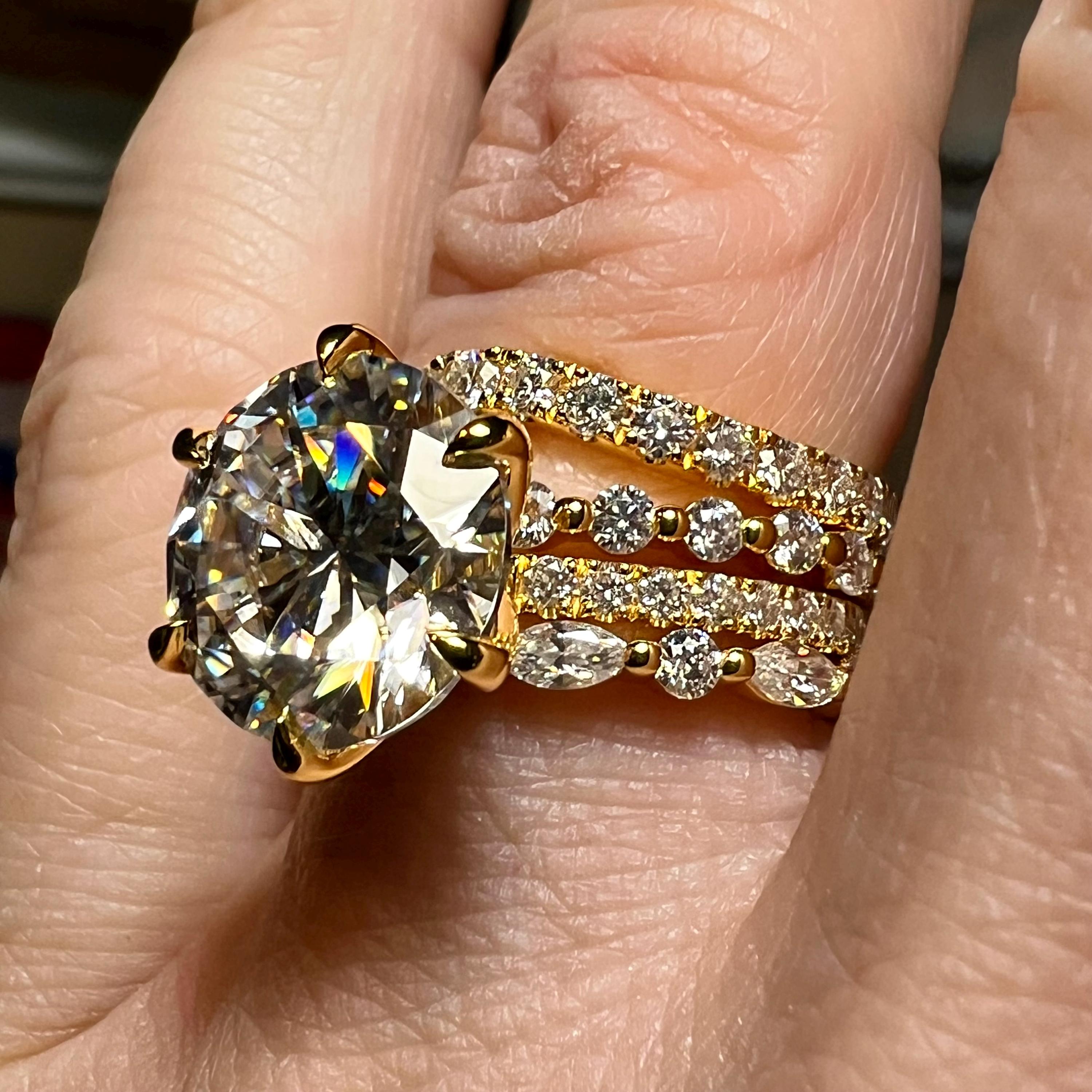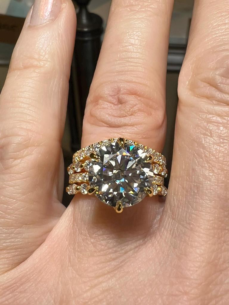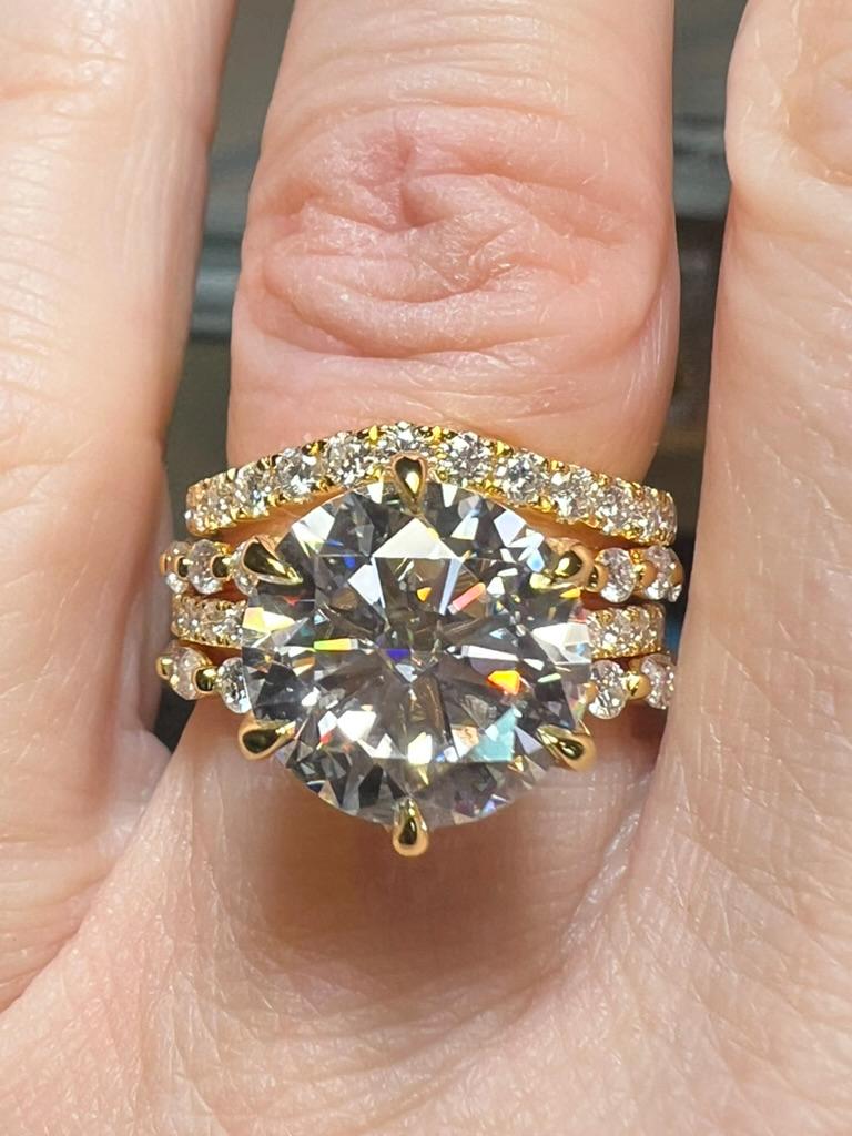 A Certified 14K Gold 5CT Round Brilliant Cut G VVS2 3EX Lab Grown Diamond Bridal Set. Like it, but want a variation, let me know? The sets completely customizable.