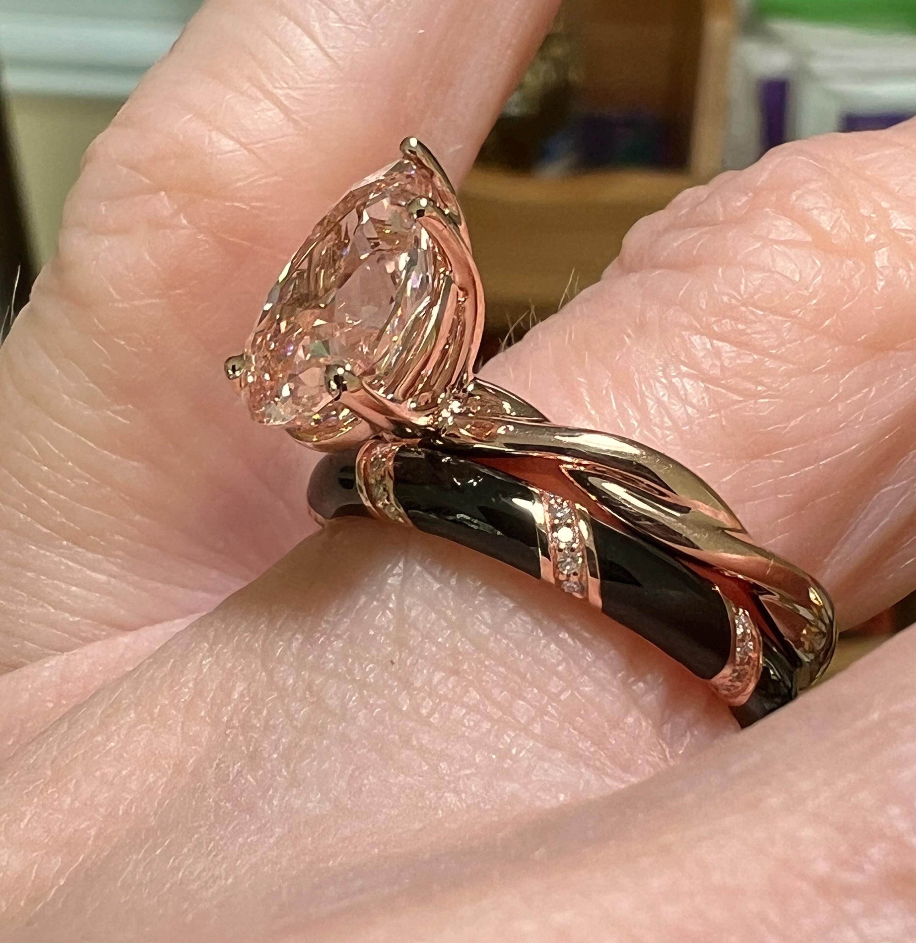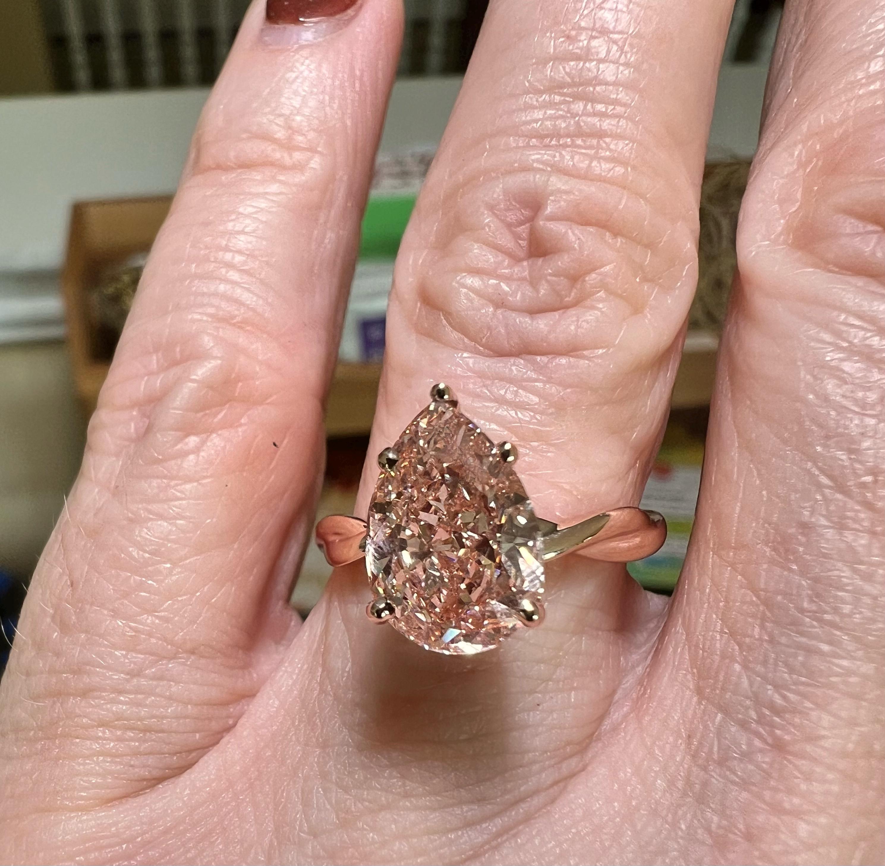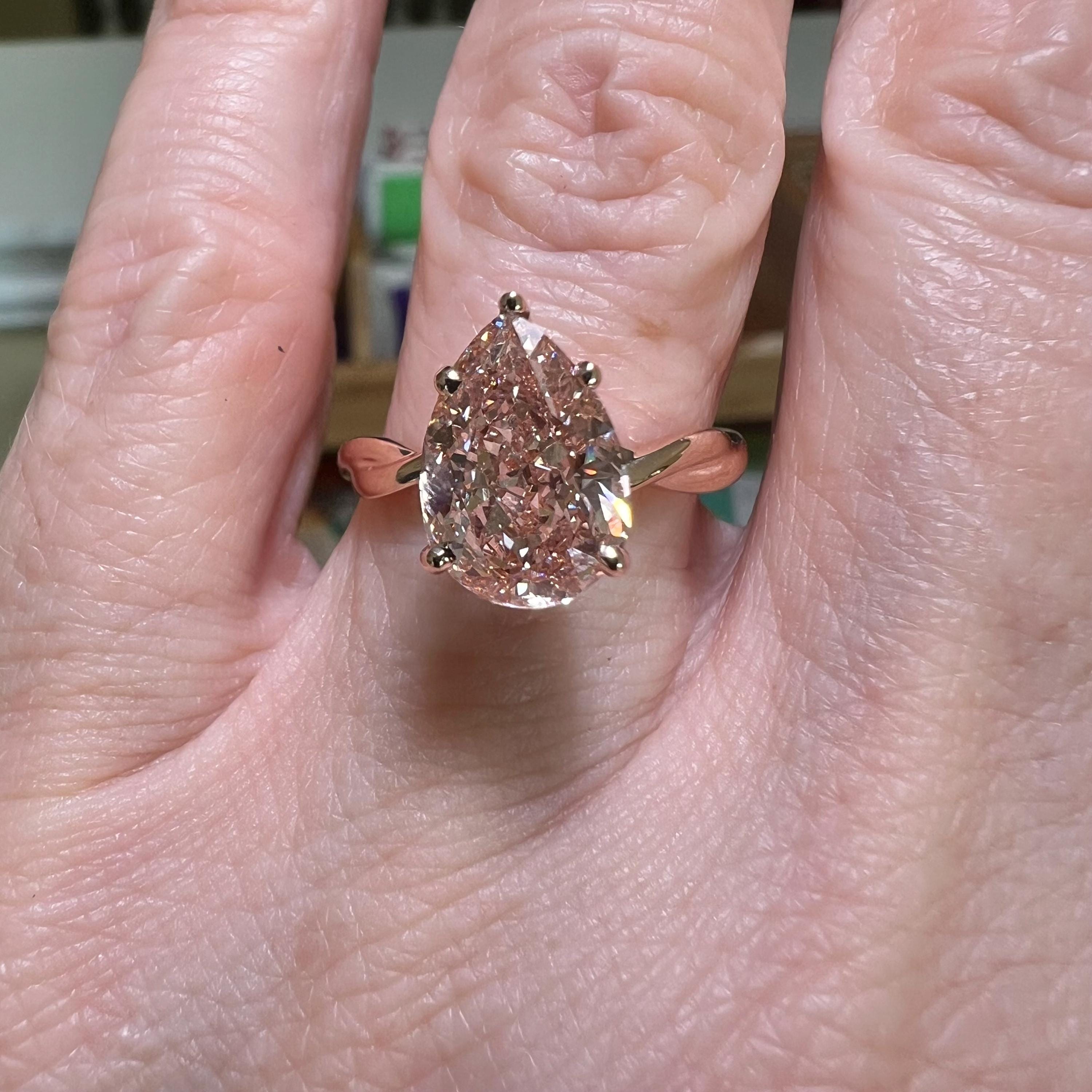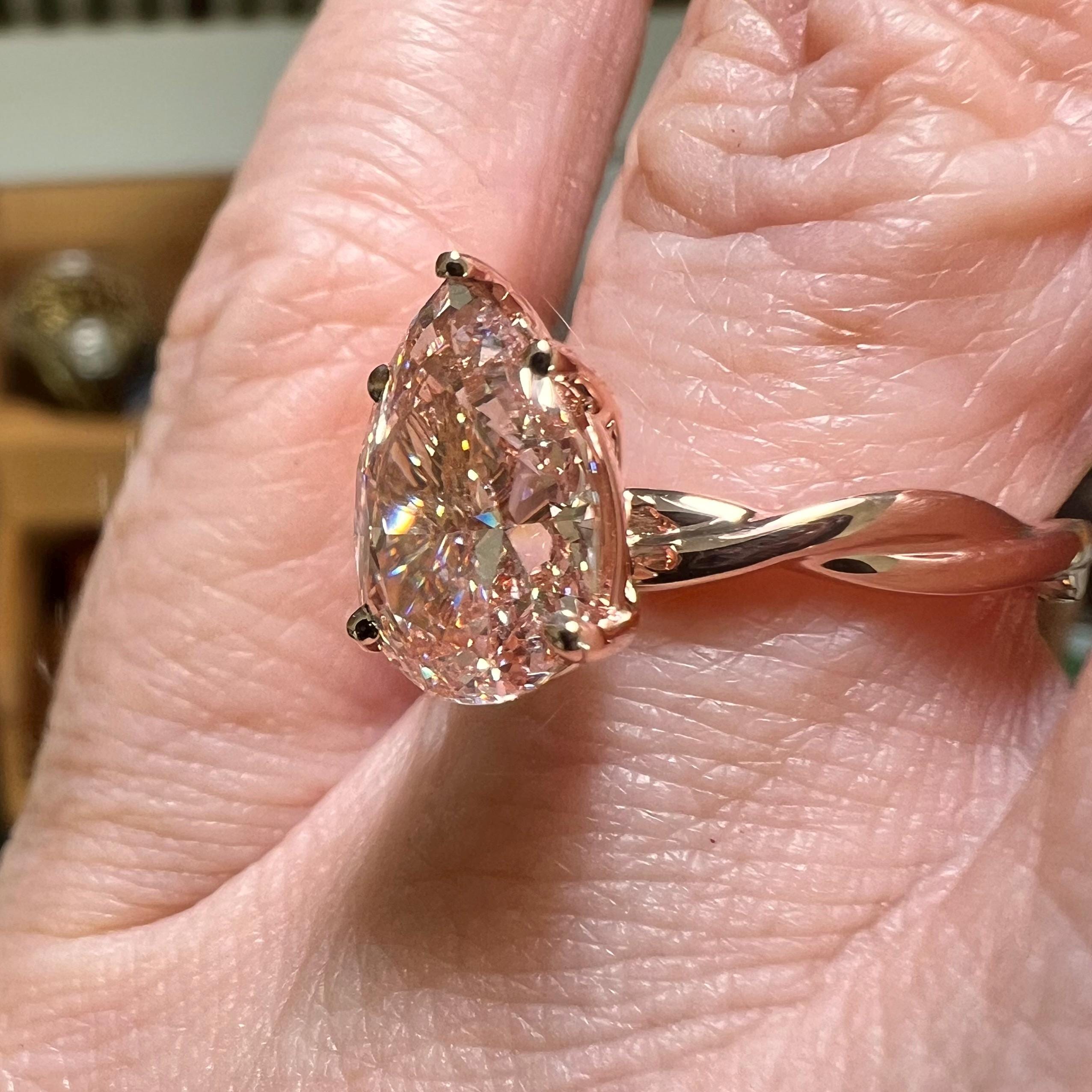 Certified 14K Rose Gold 3CT Pear Modified Brilliant Fancy Intense Pink VVS2 Lab Grown Diamond Engagement Ring