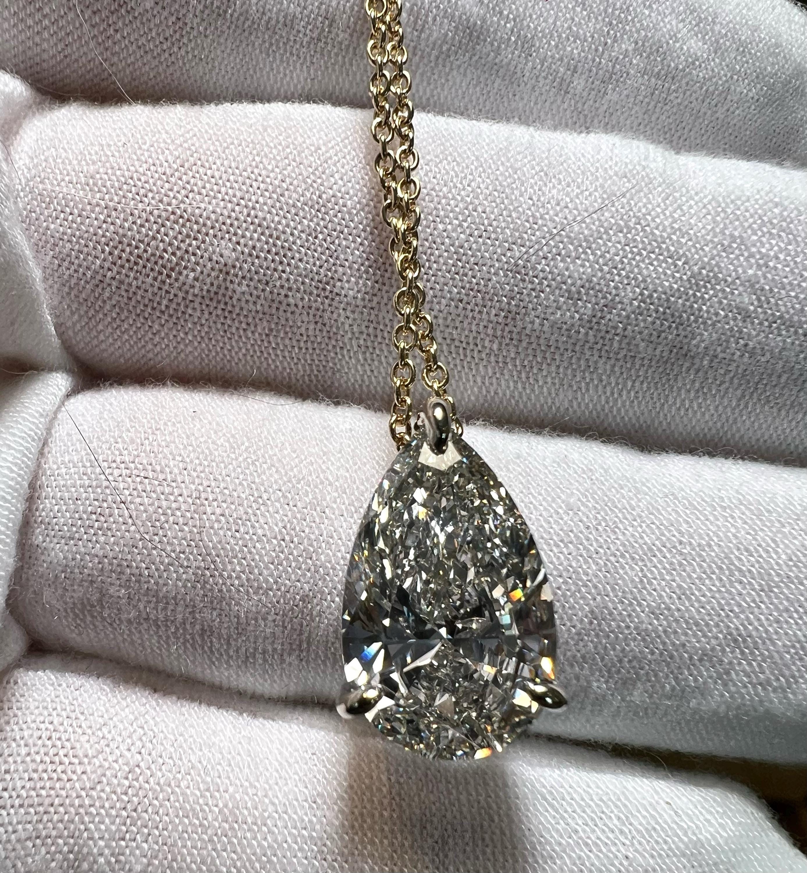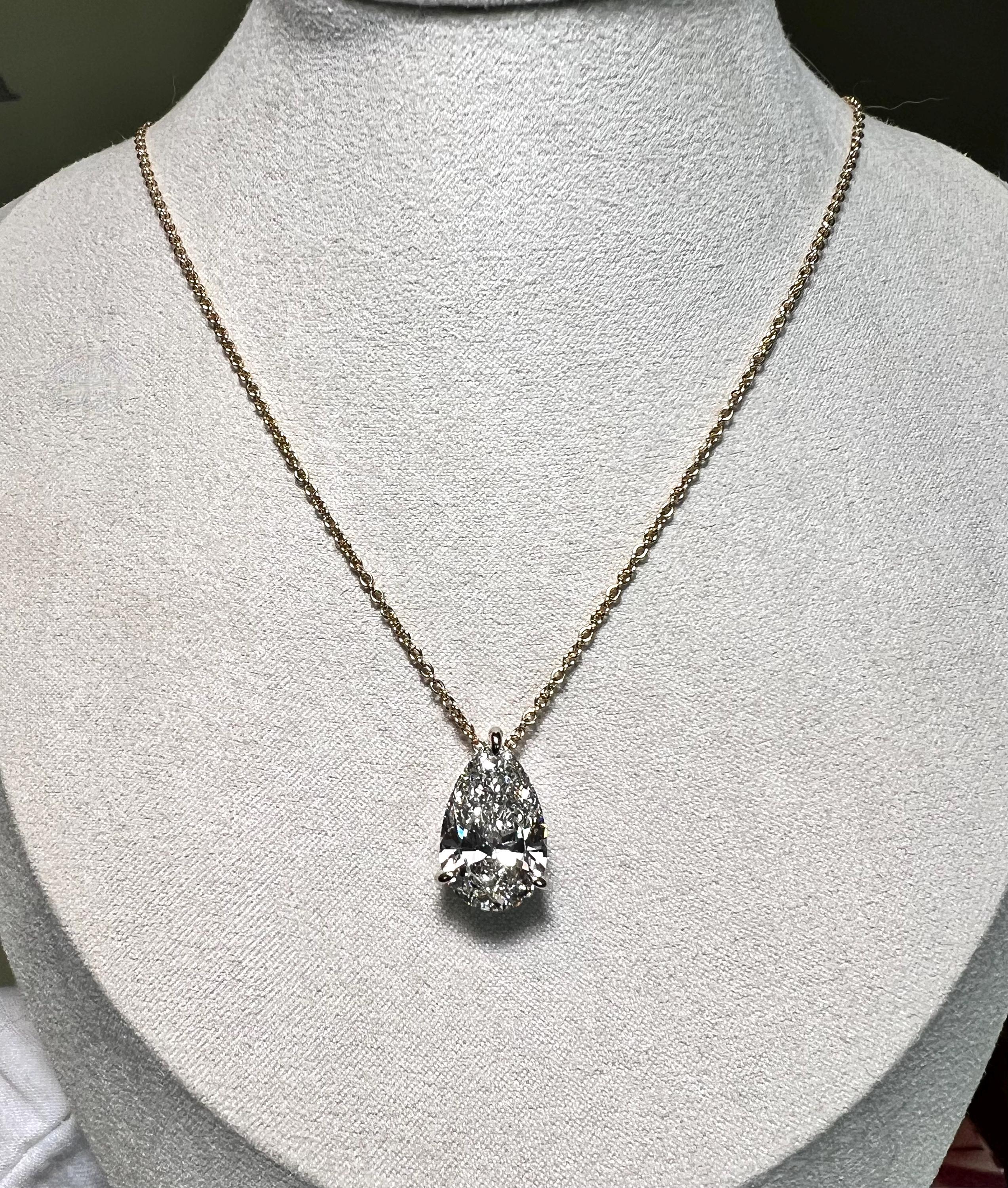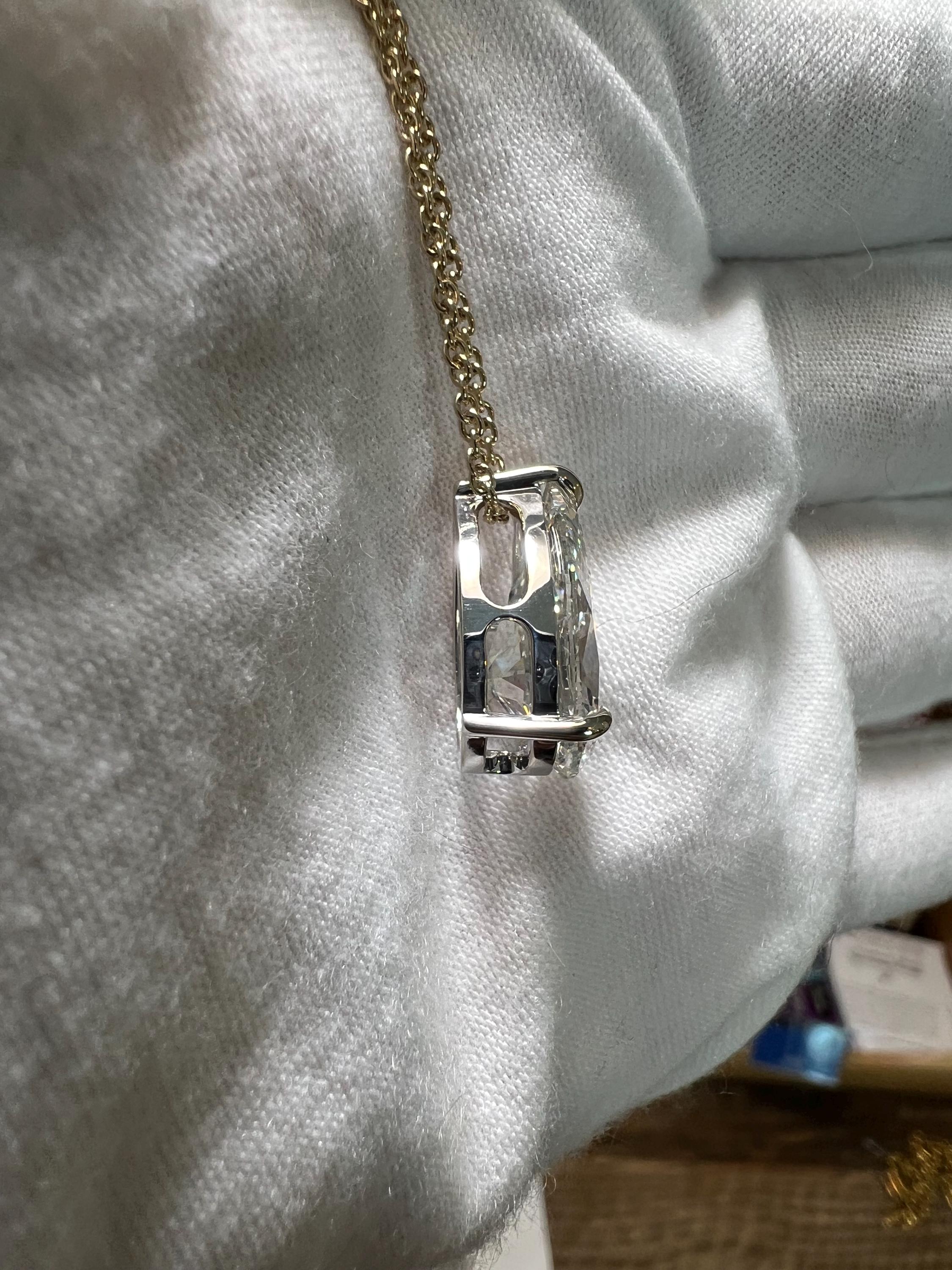 10K White Rose Yellow Gold 5CT Pear G VVS2 2EX Lab Grown Diamond Pendant Adjustable Length 16" - 20" Necklace