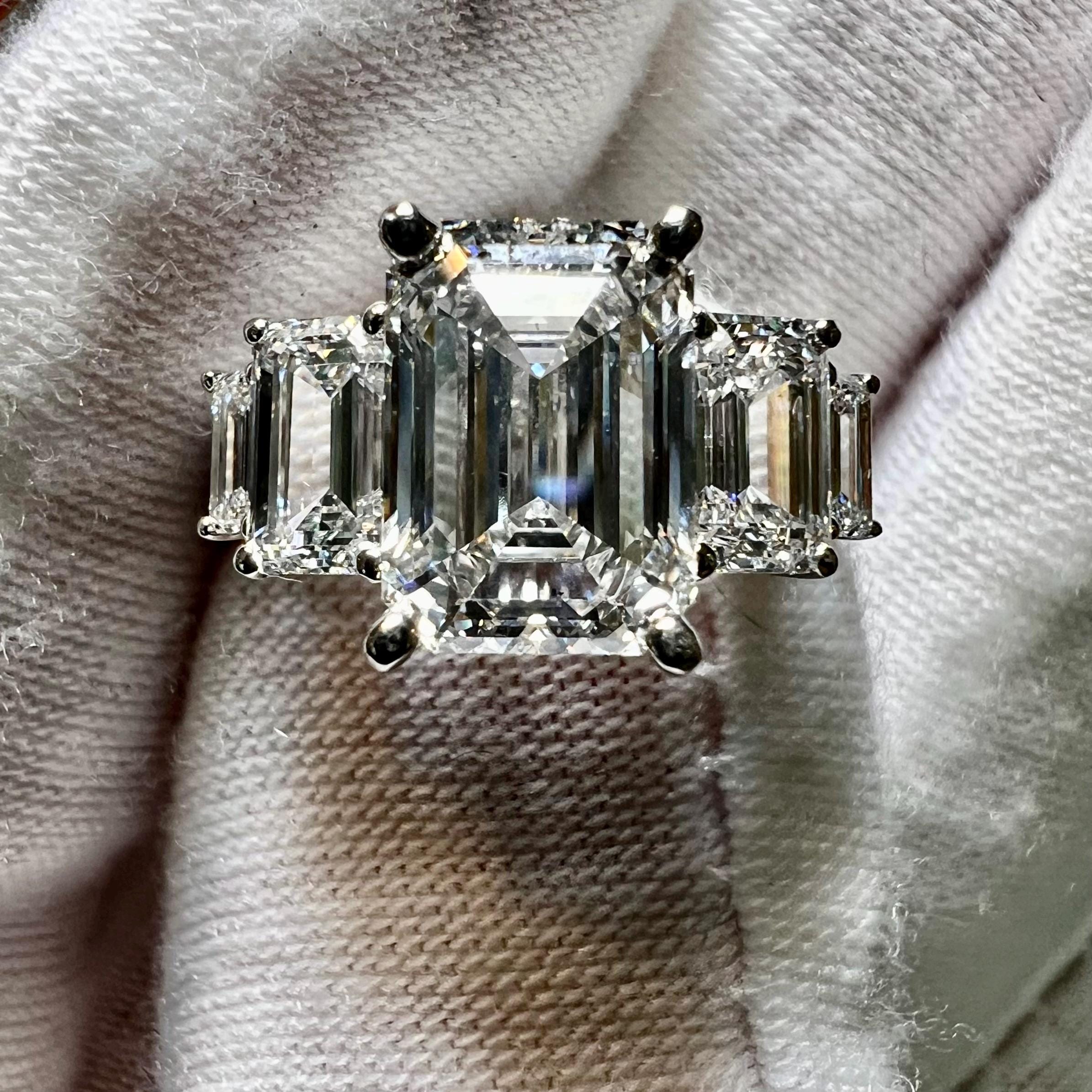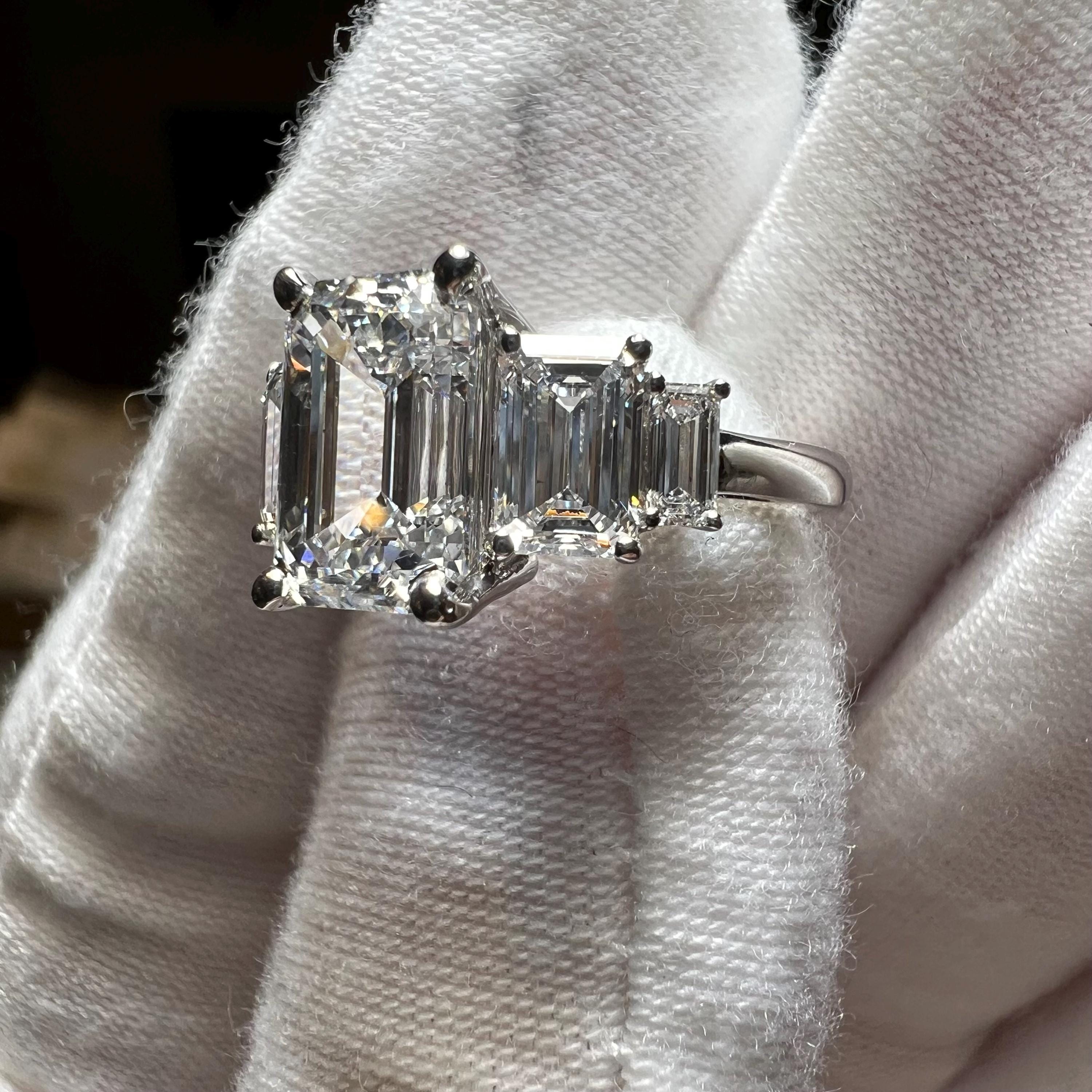 Certified 14K Gold 3.7CT F VVS2 2EX Lab Grown Emerald Cut Diamond Engagement Ring