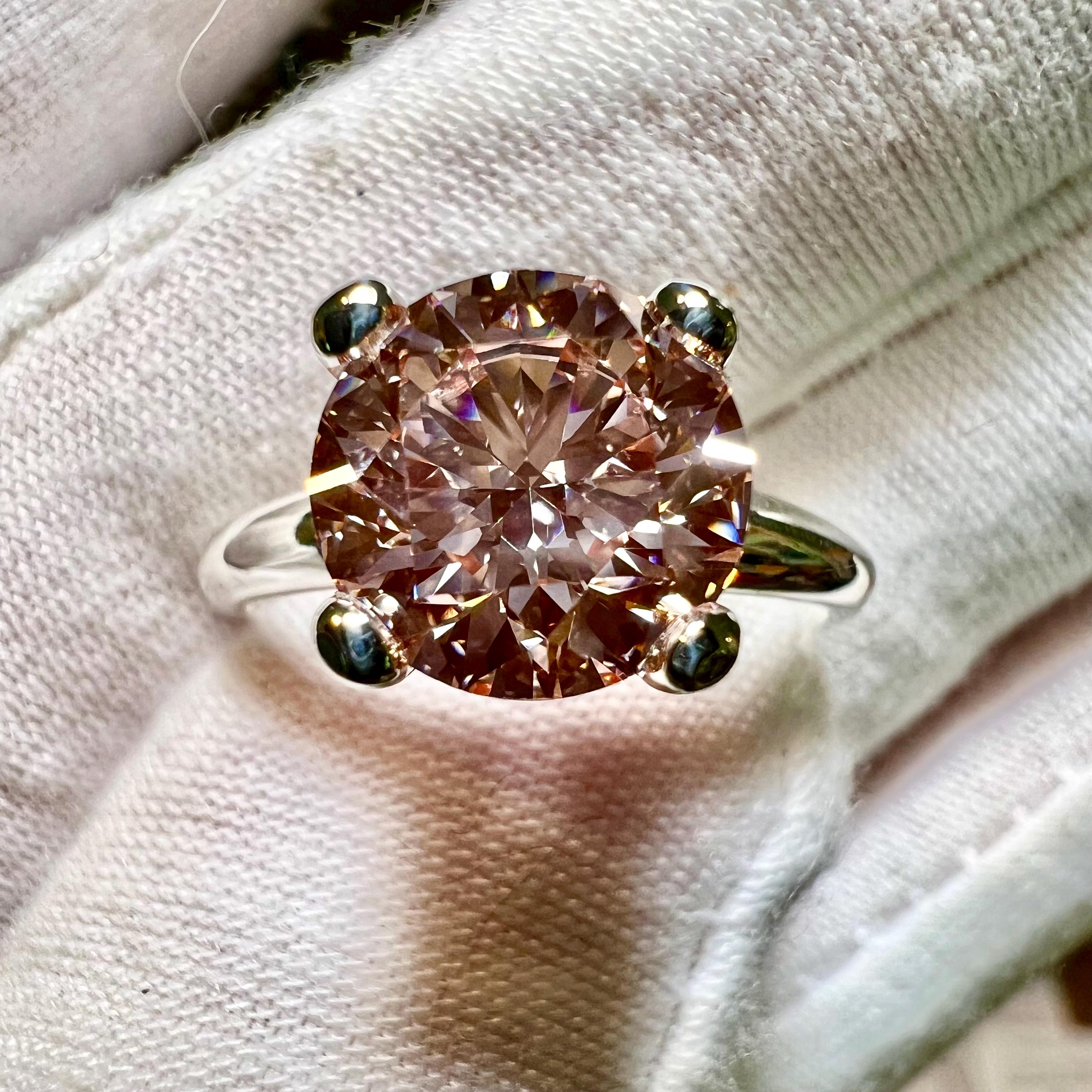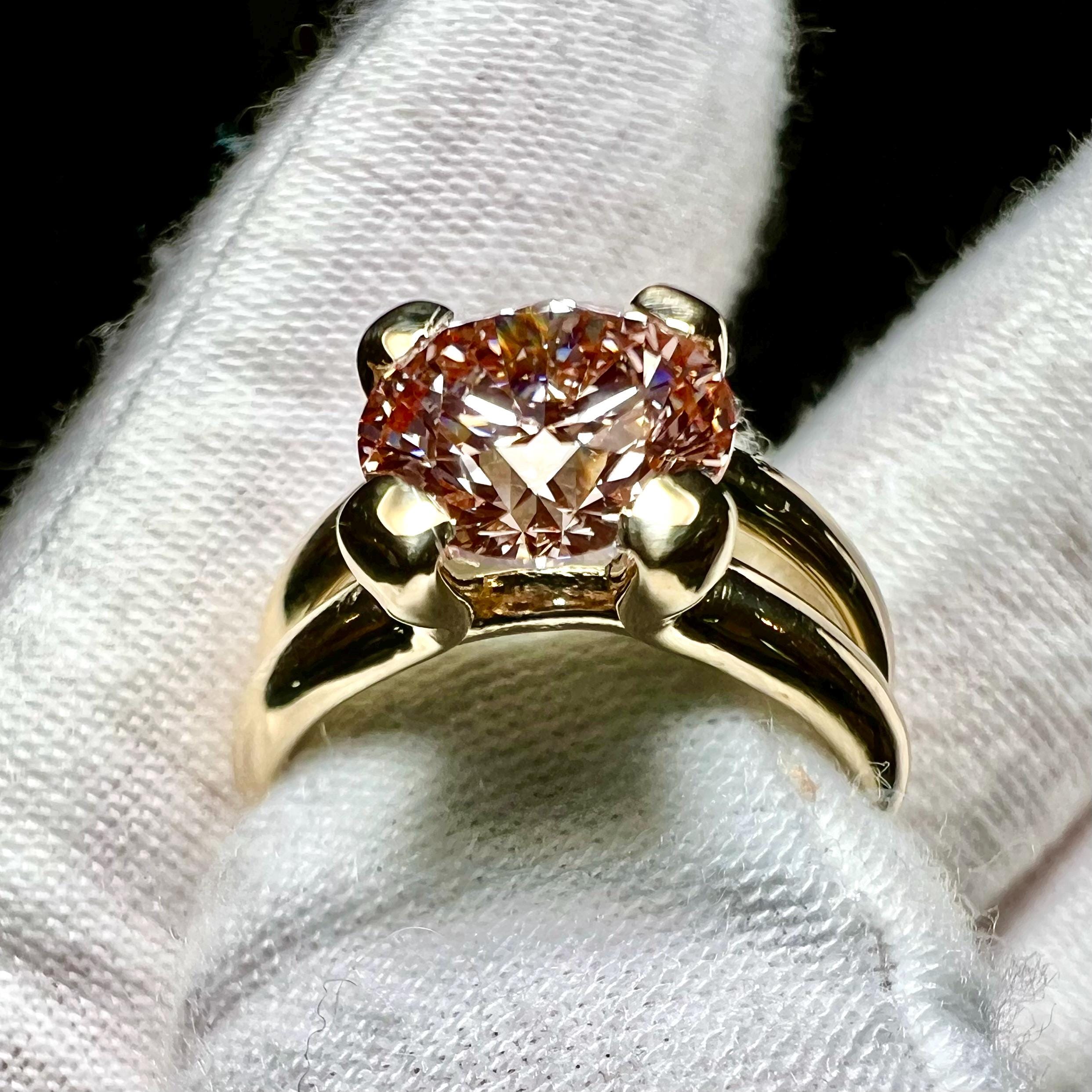 14K Gold 3CT Fancy Intense Pink Lab grown Diamond Button Prong Engagement Ring or Bridal Set