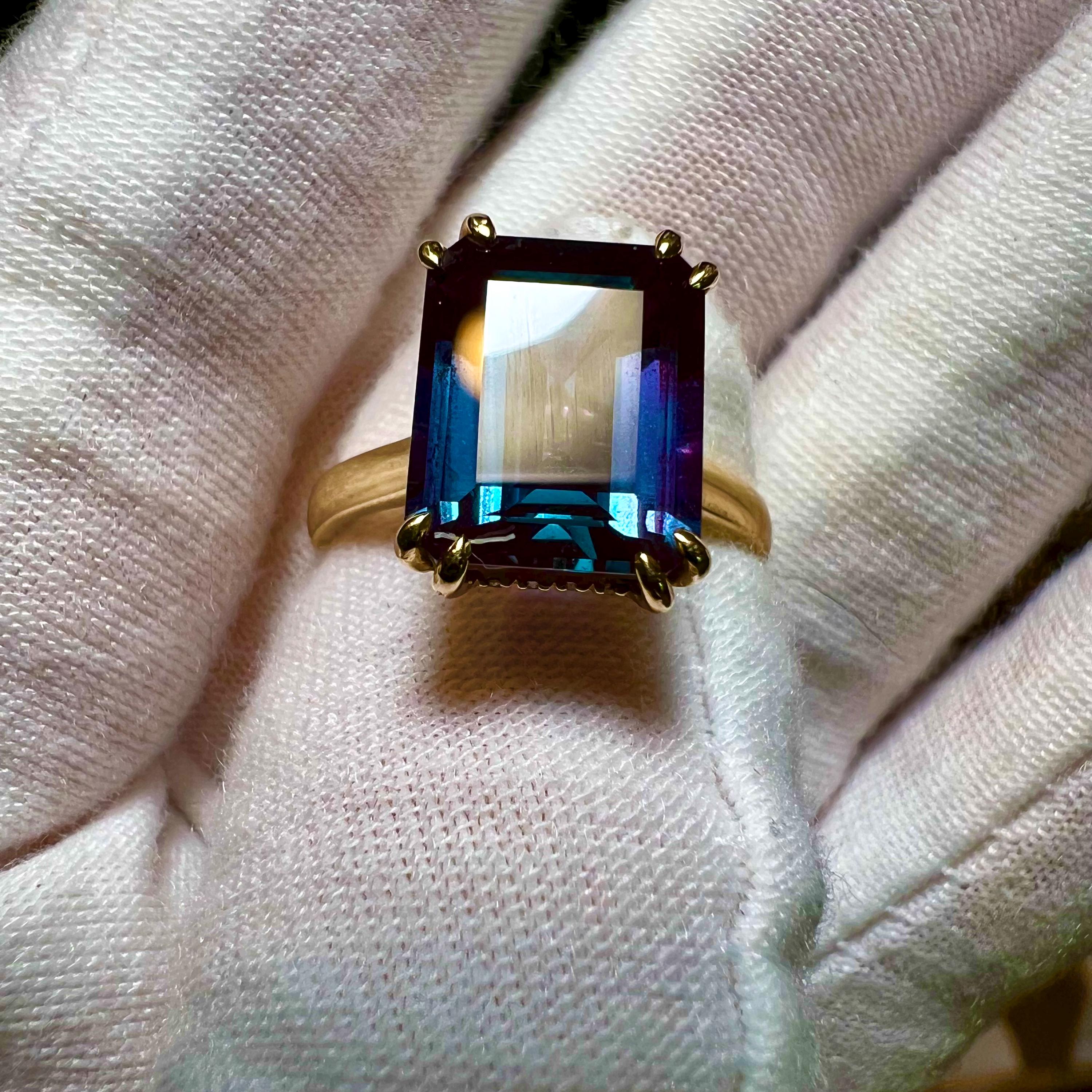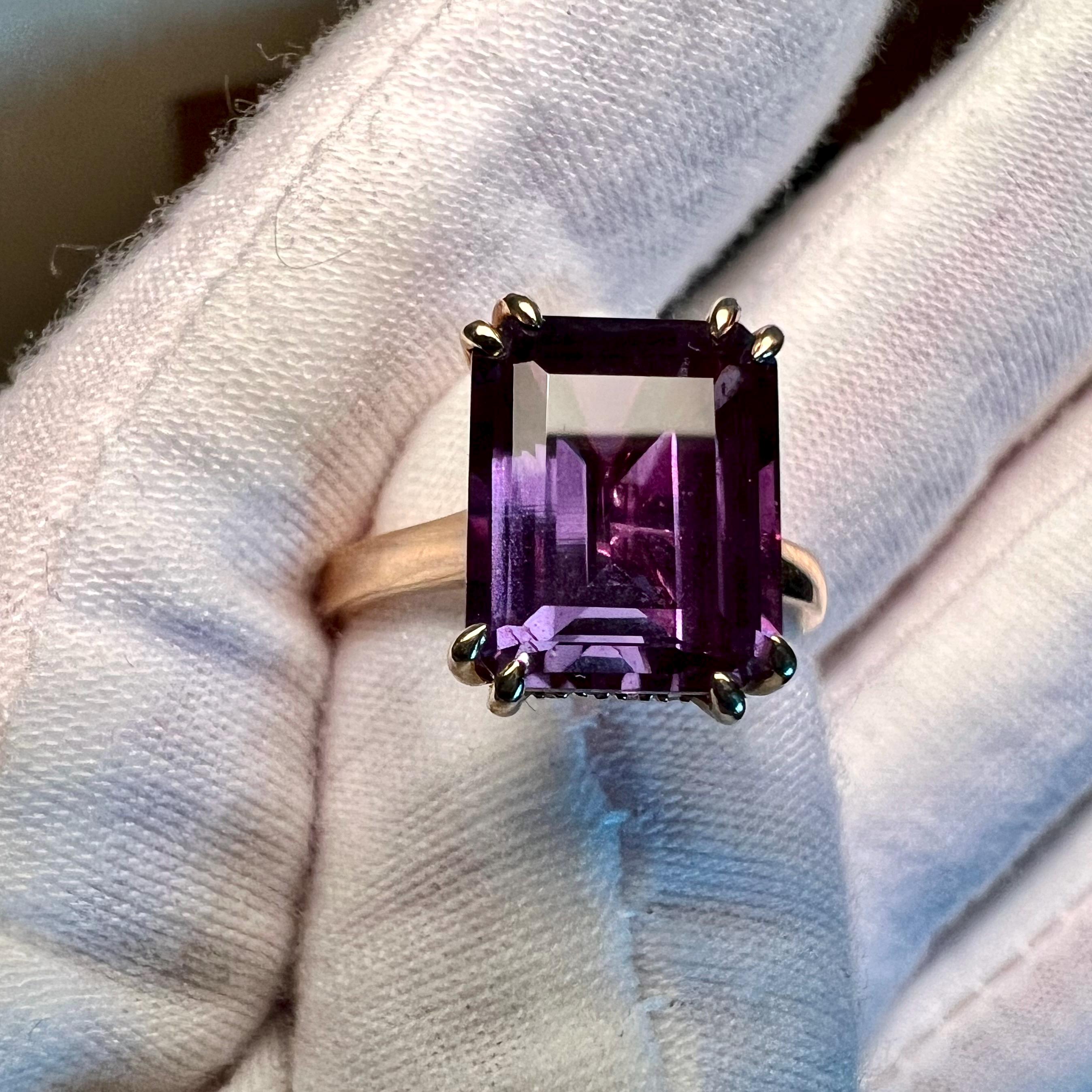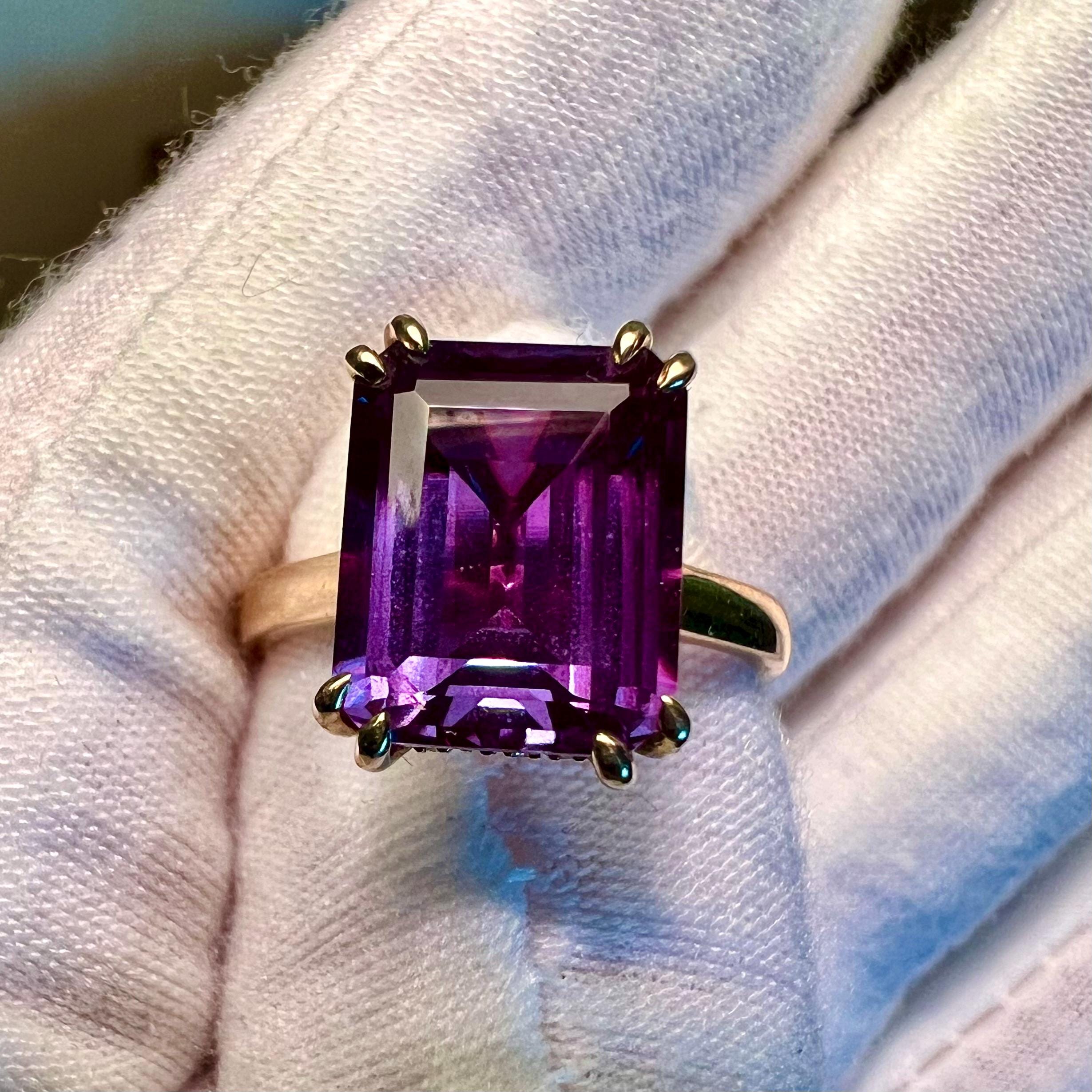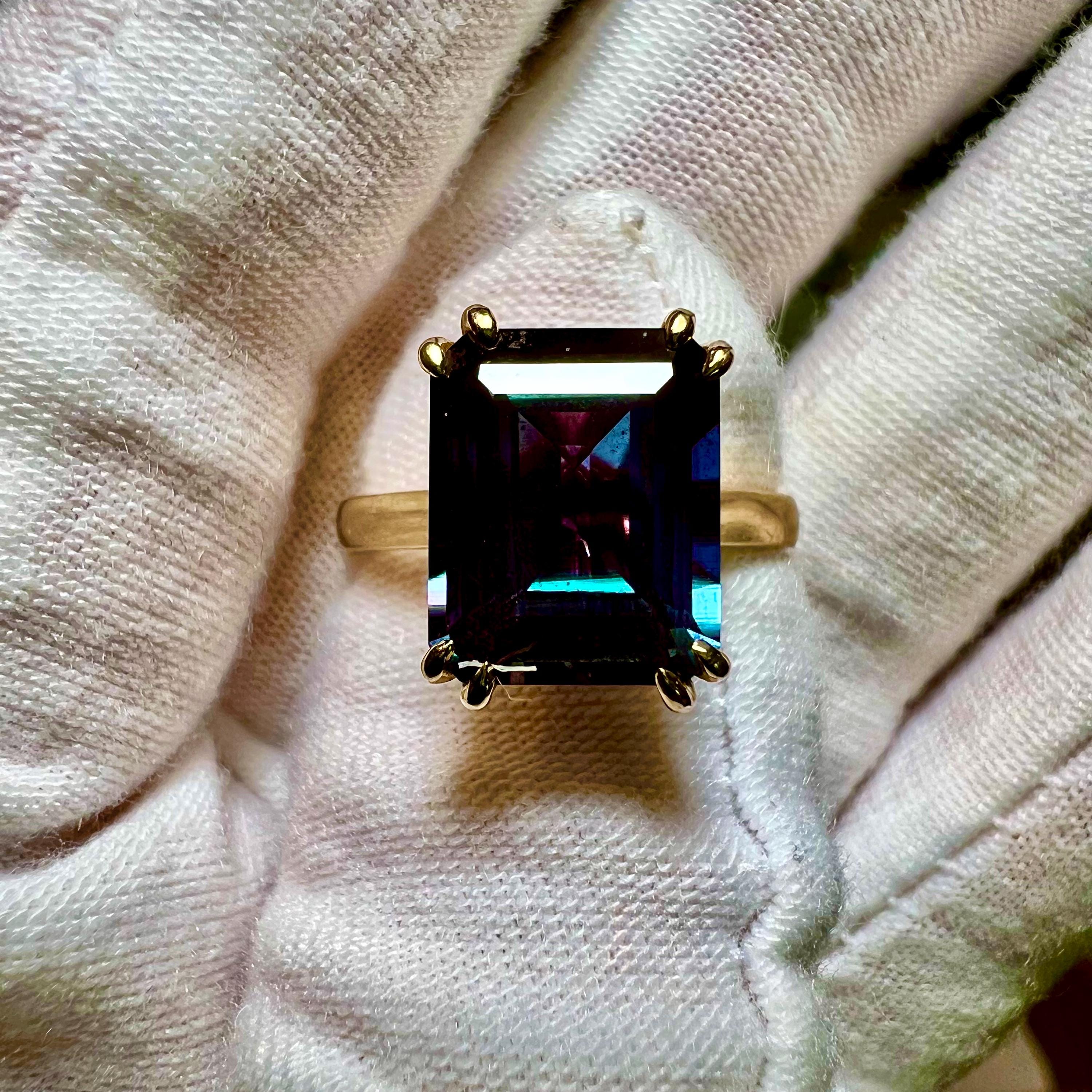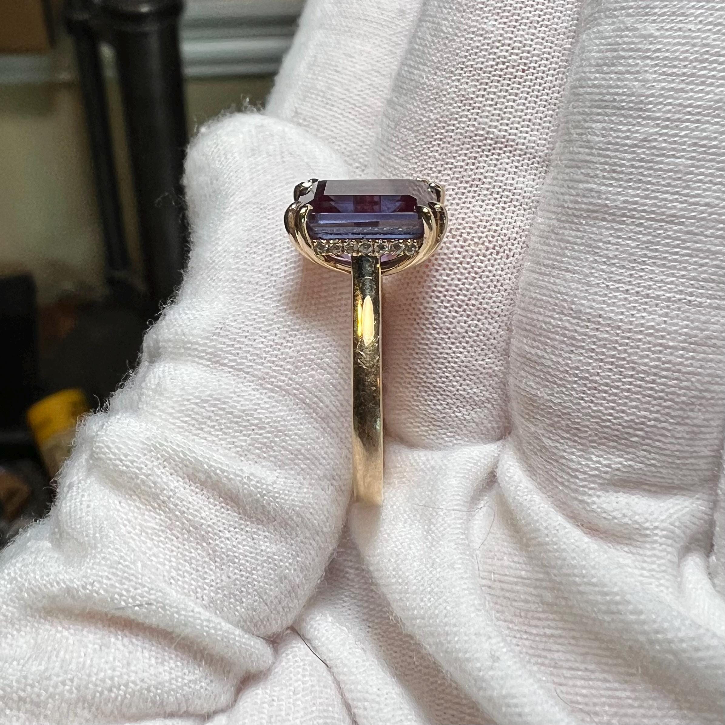 10K or 14K Gold 5CT Emerald Cut Pulled Czochralski Alexandrite (Color Change Blue-Purple) Hidden Halo Engagement Ring / Customization