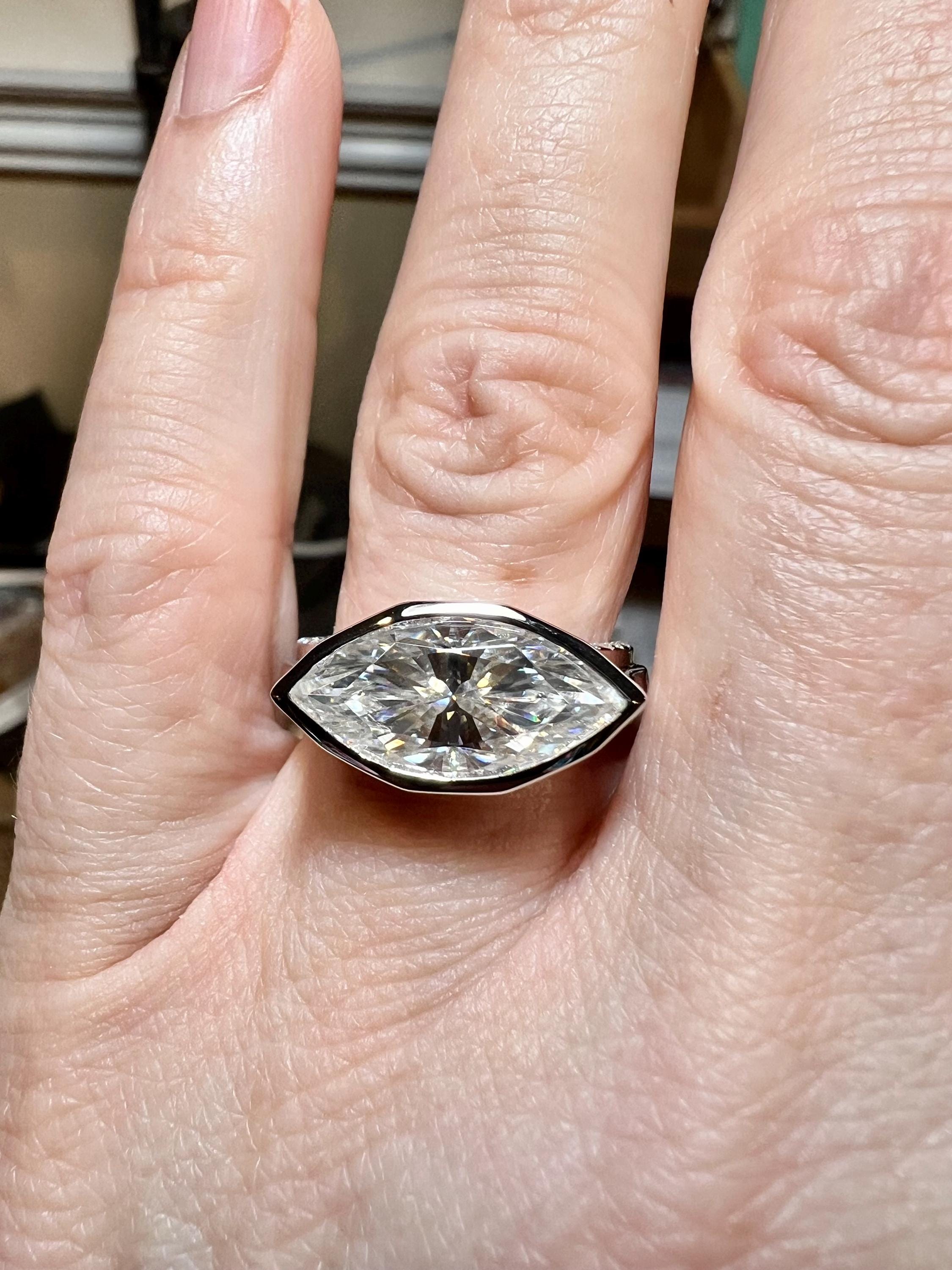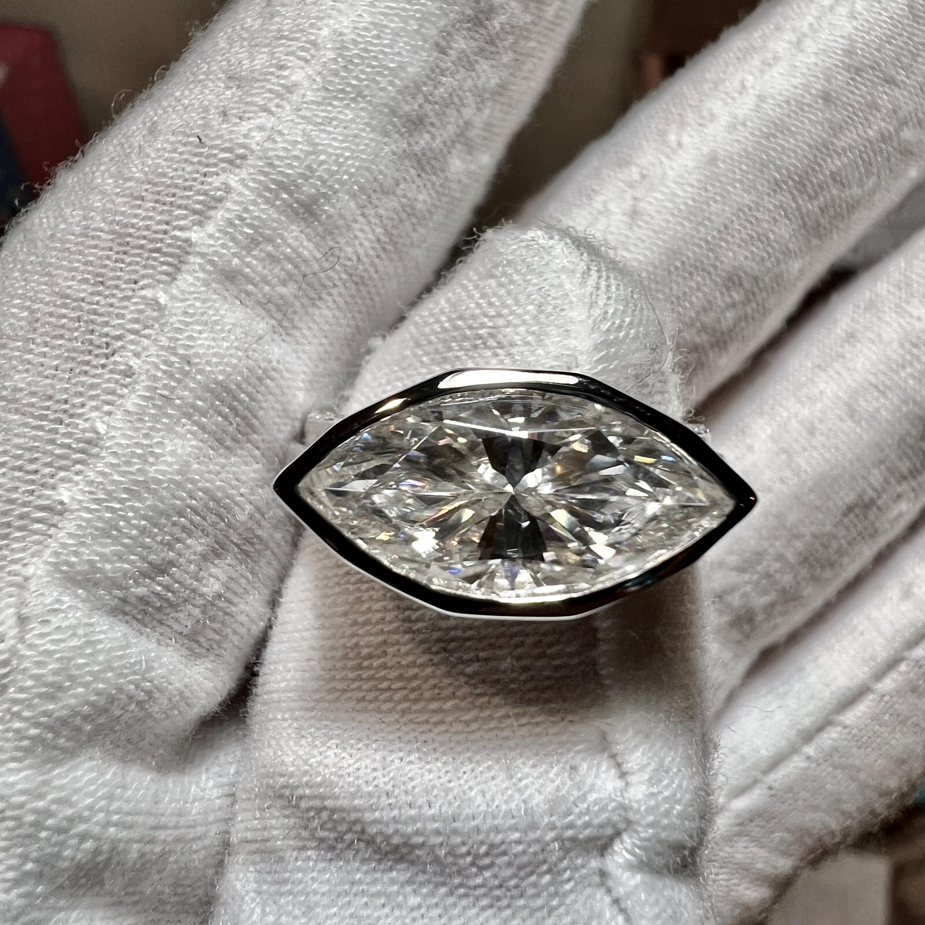 Certified 3CT Marquise Brilliant G VS1 2EX Lab Grown Diamond Bezel Set Engagement Ring