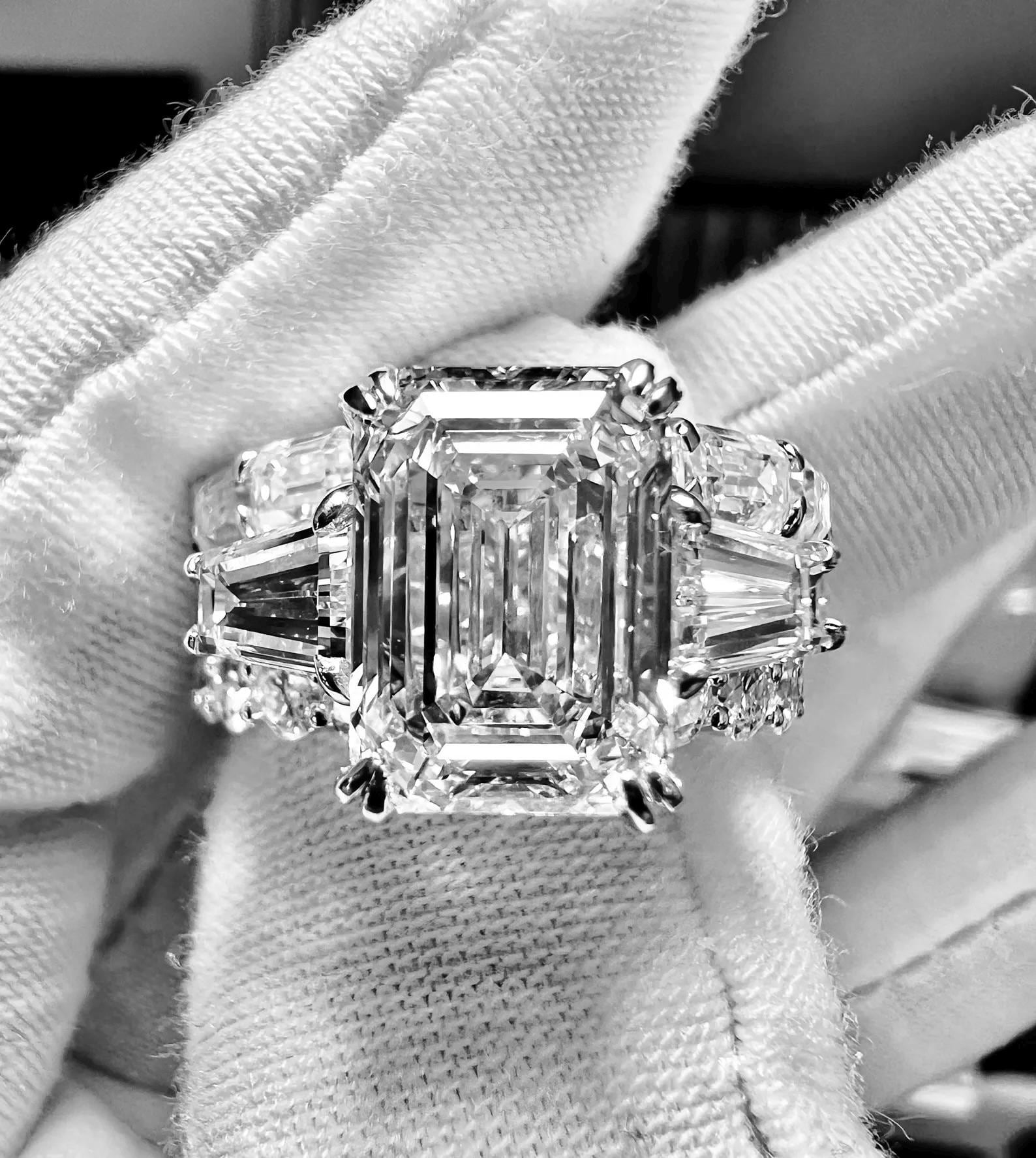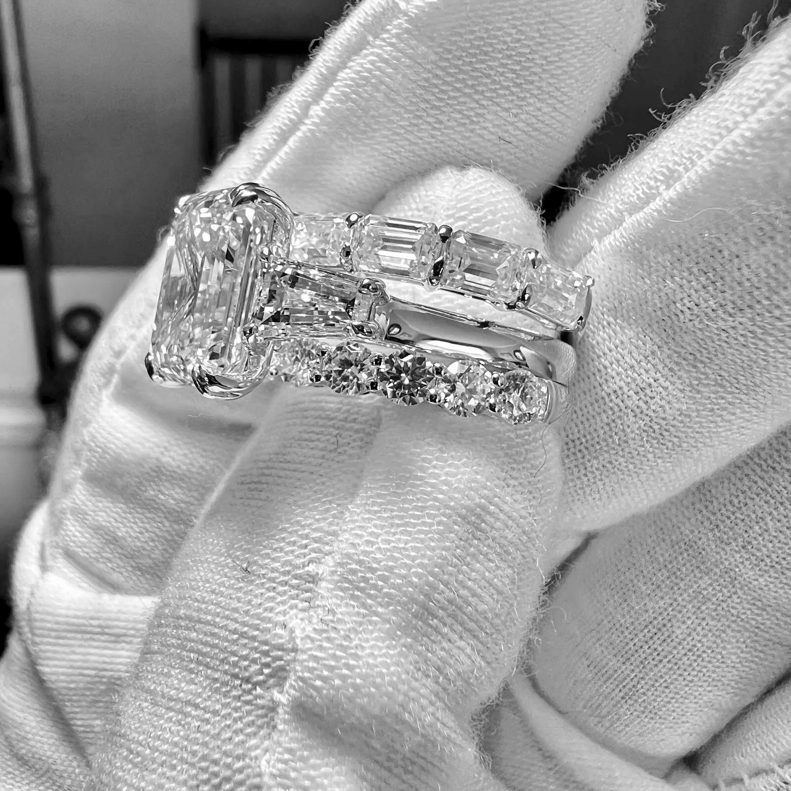 Certified 14K Gold 4.8CT Emerald E VS1 2EX Lab Grown Diamond Bridal Set Engagement Ring / Customizable