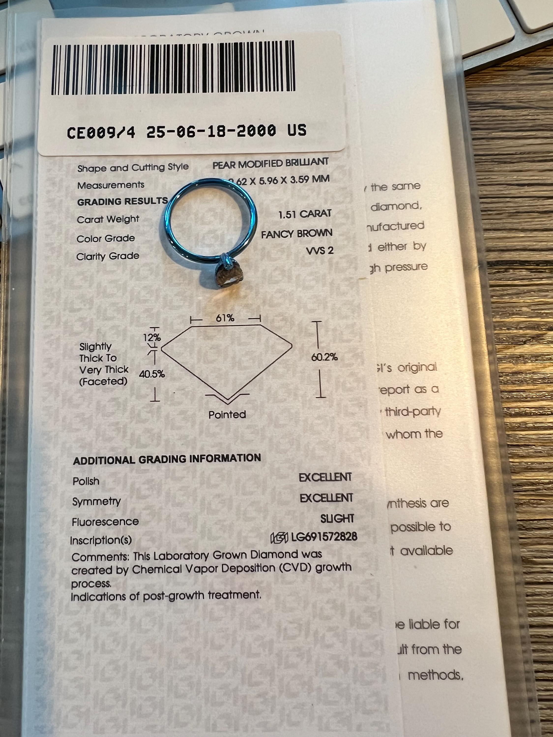 10K Blue Gold IGI 1.51CT Fancy Chocolate Brown Lab Grown Diamond Ring Size 7