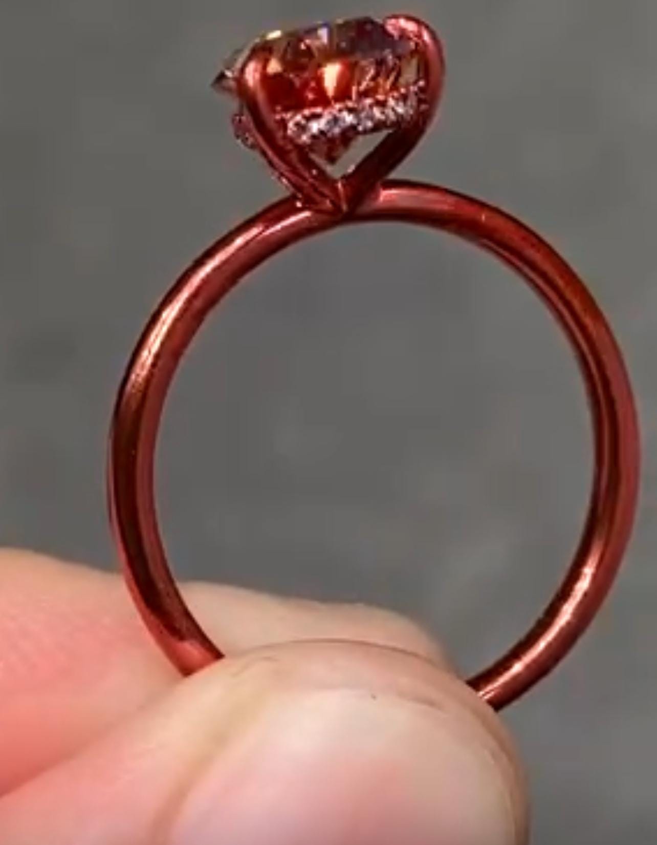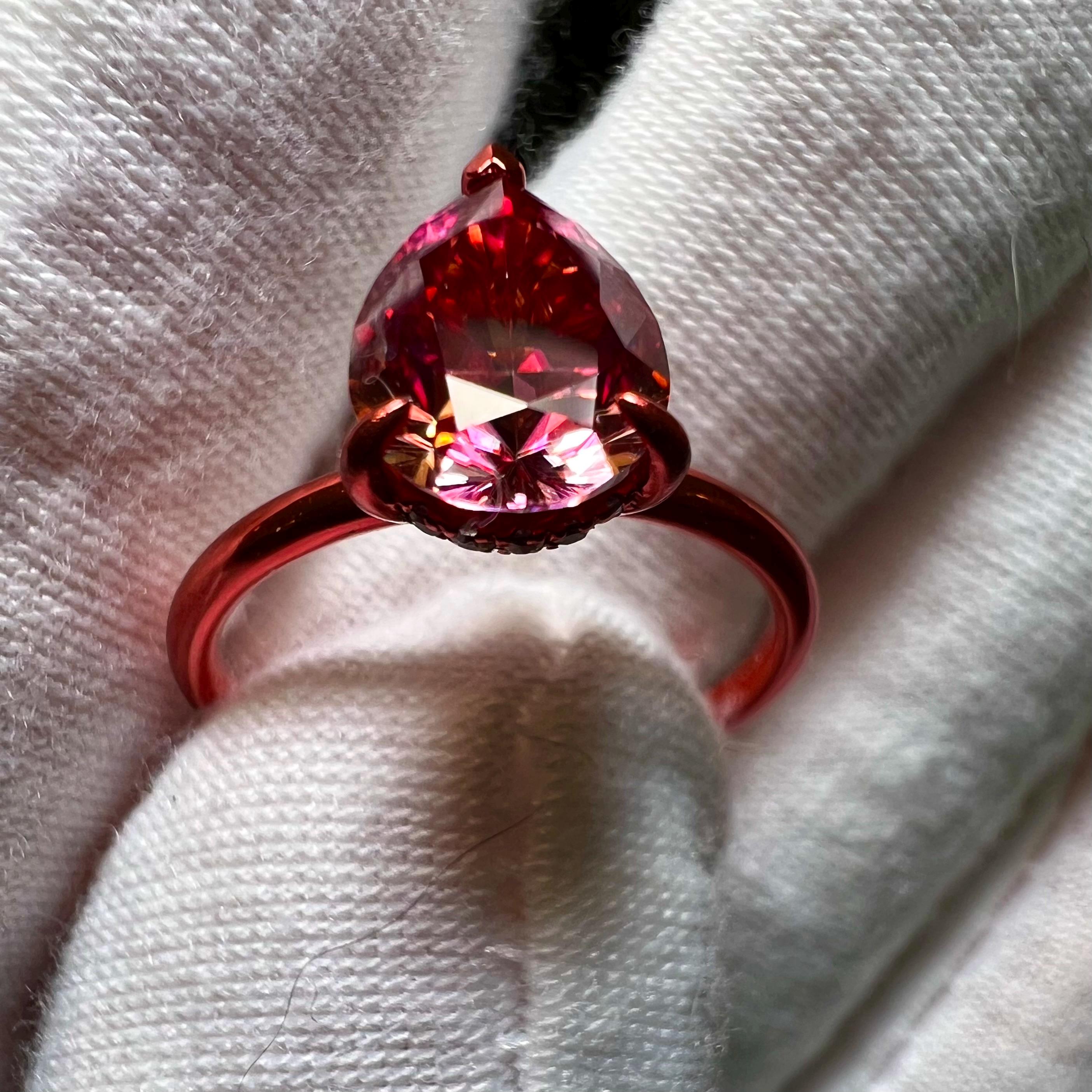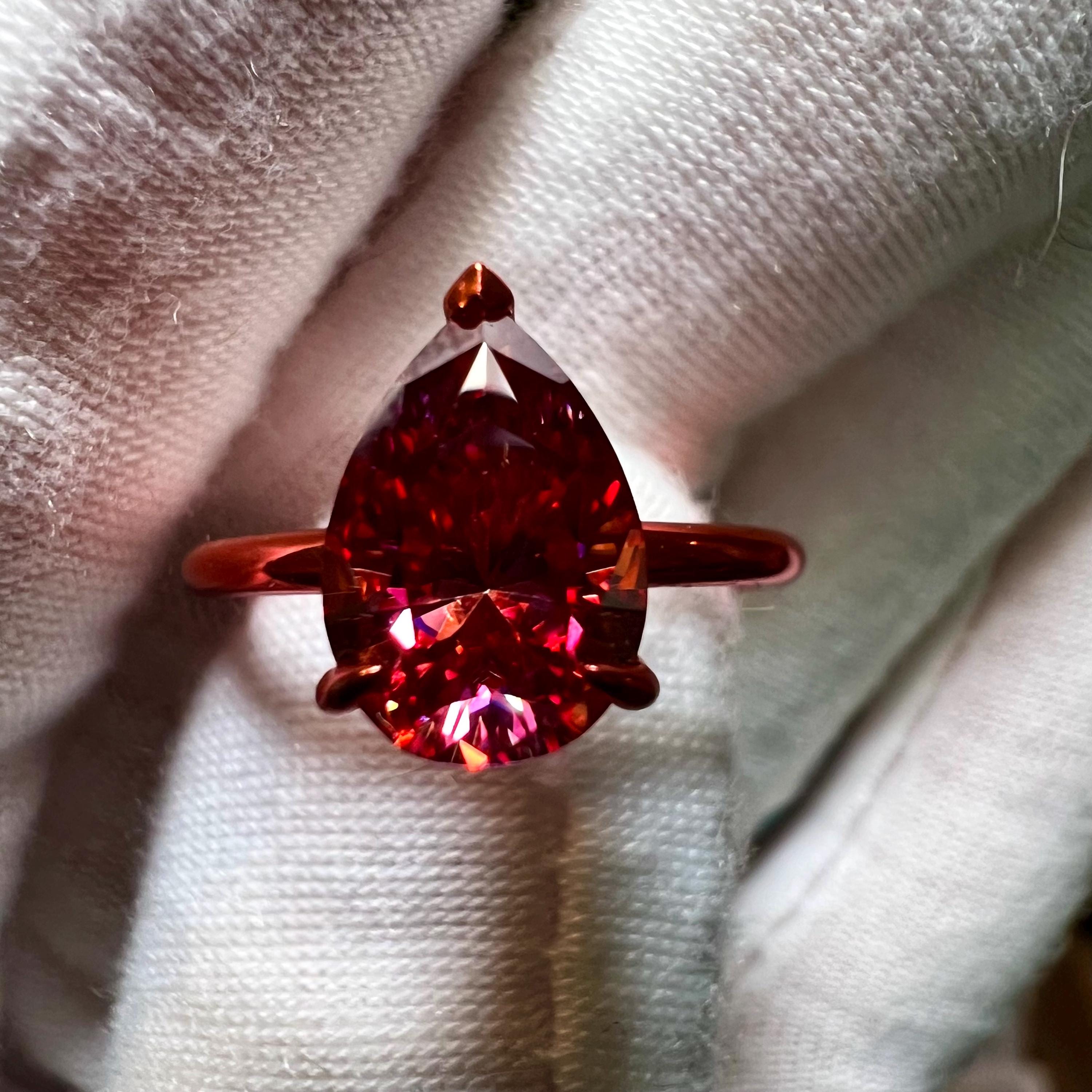 10K Sunset Pink Gold 2CT Pink Pear Lab Grown Diamond Engagement Ring Hidden Halo Size 7 / Ship Same Day