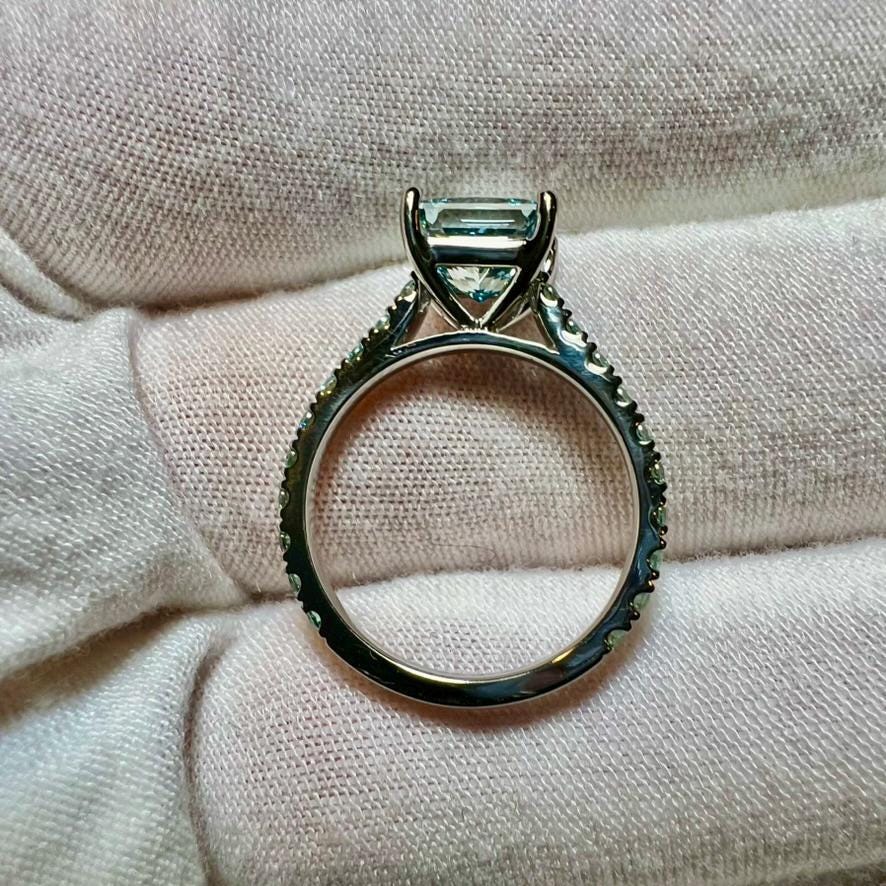 14K White Gold 2CT Princess Fancy Intense Greenish Blue Lab Grown Diamond Engagement Ring