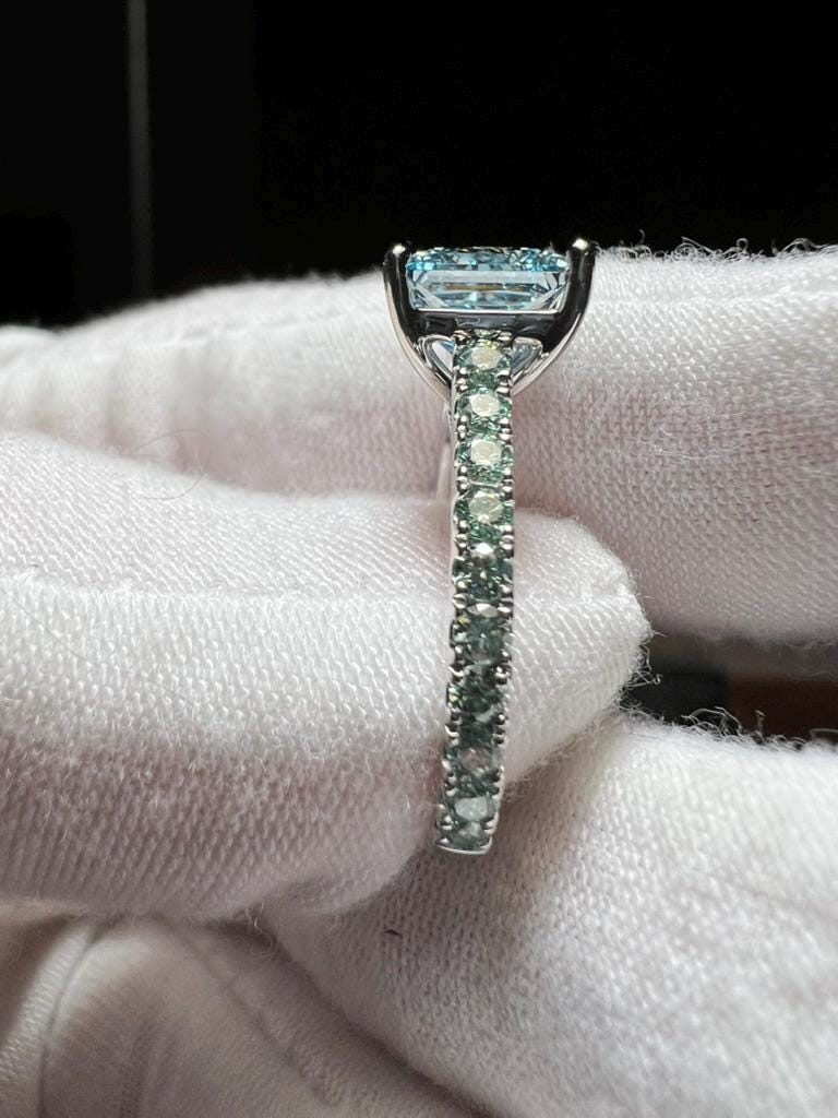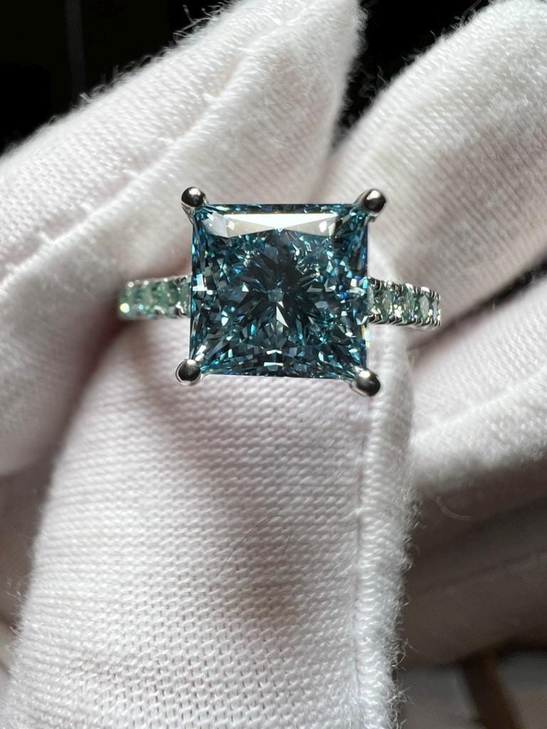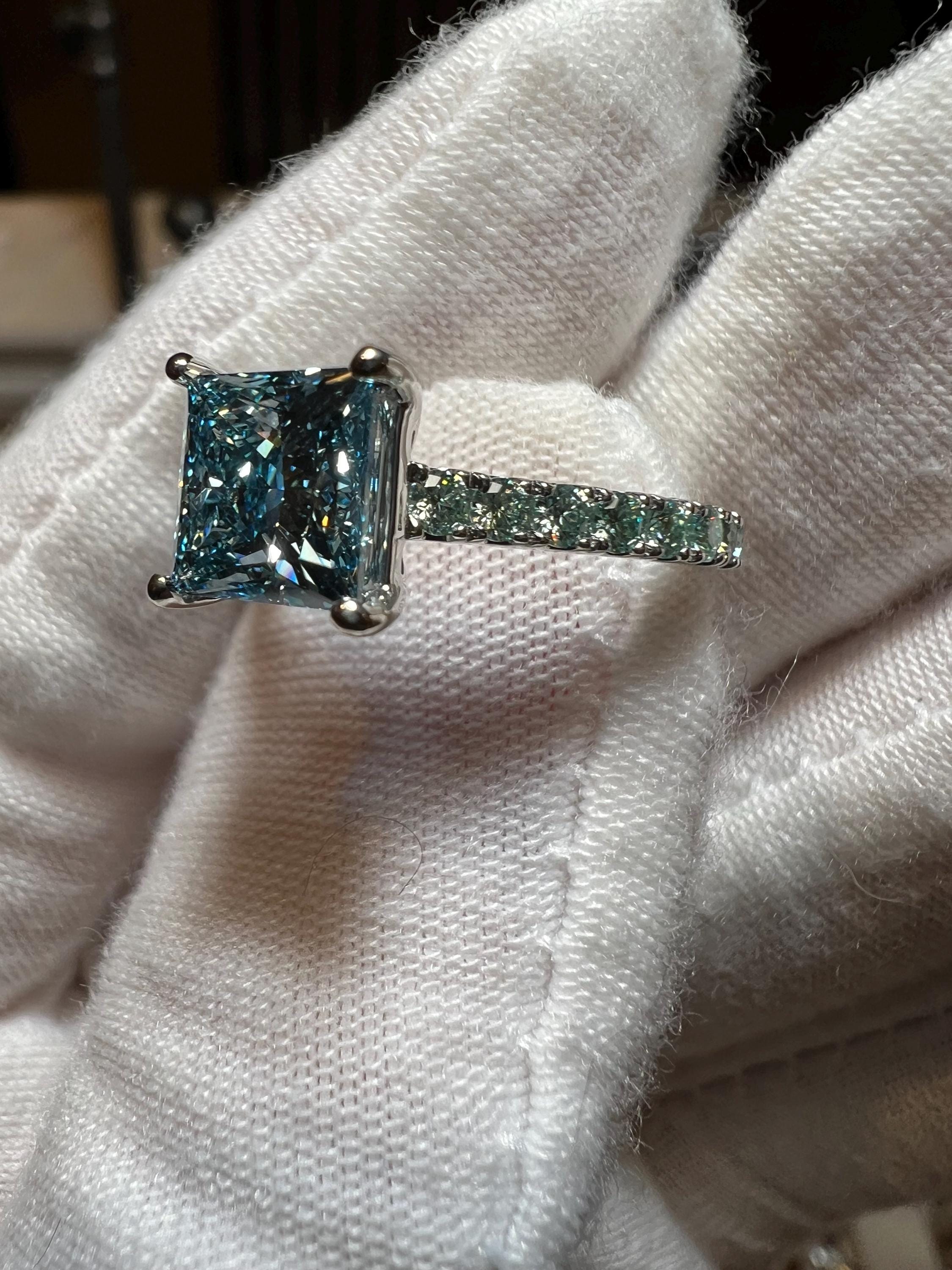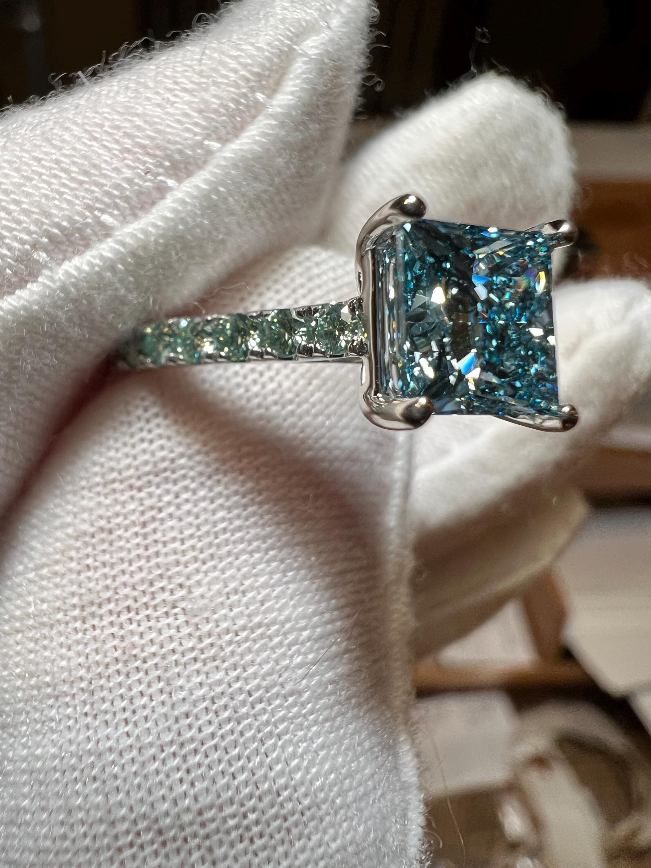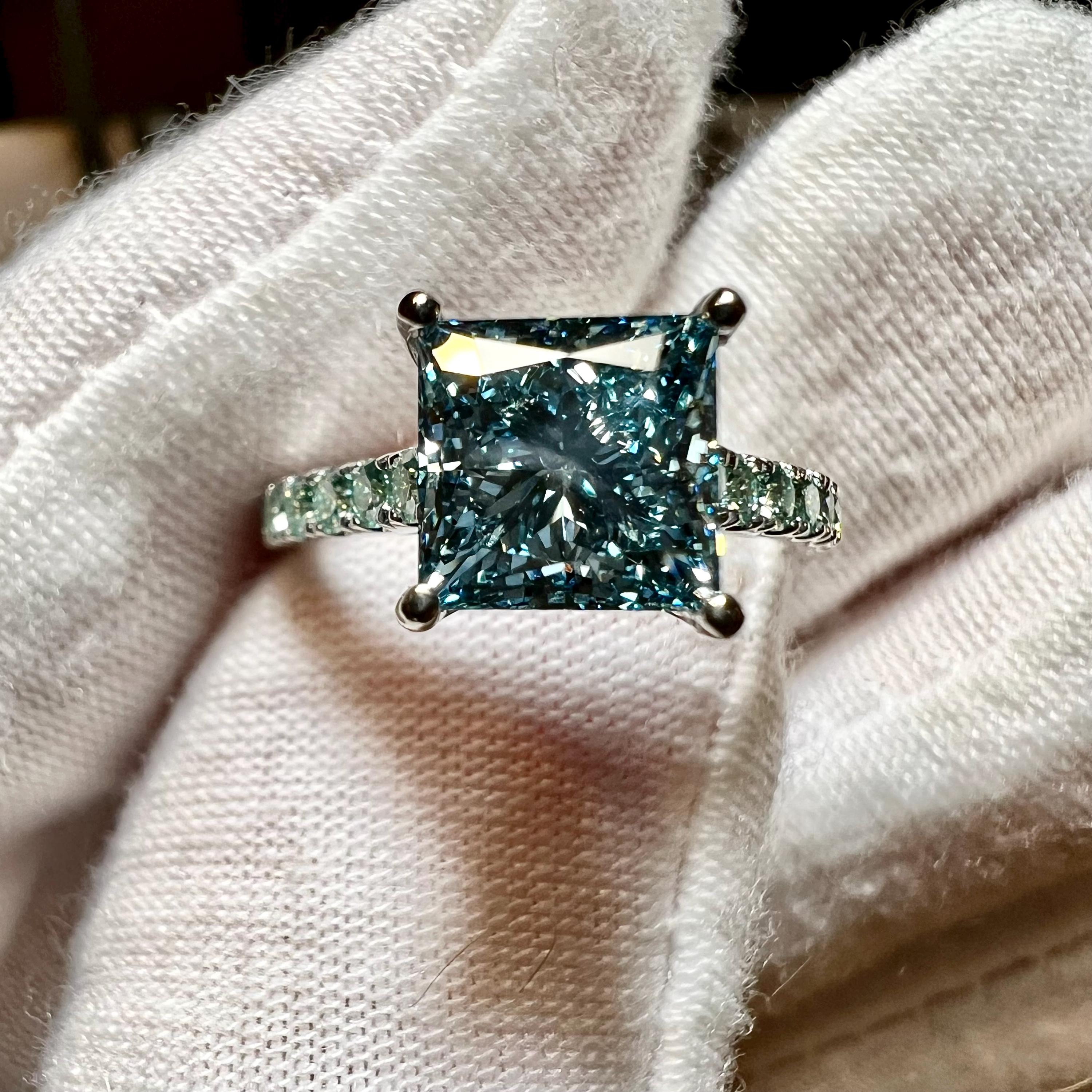 2CT Princess Fancy Intense Greenish Blue VS1 Lab Grown Diamond