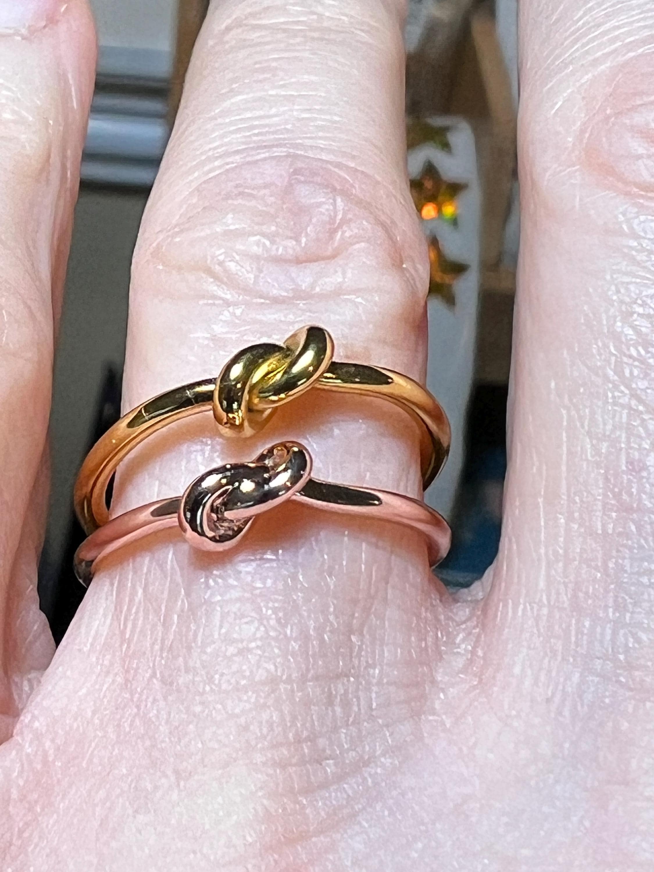 A single gold knot sits gracefully on the hand as a design that feels effortless, modern and deeply personal. It's a perfect gift for Christmas, holidays, anniversaries, and Valentine's Day, or a meaningful piece to treat yourself with.