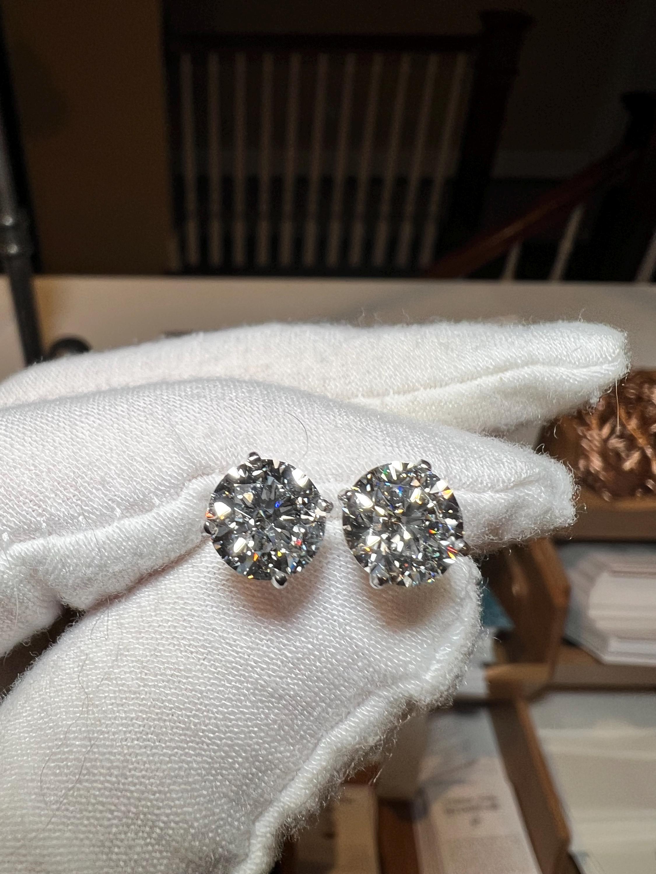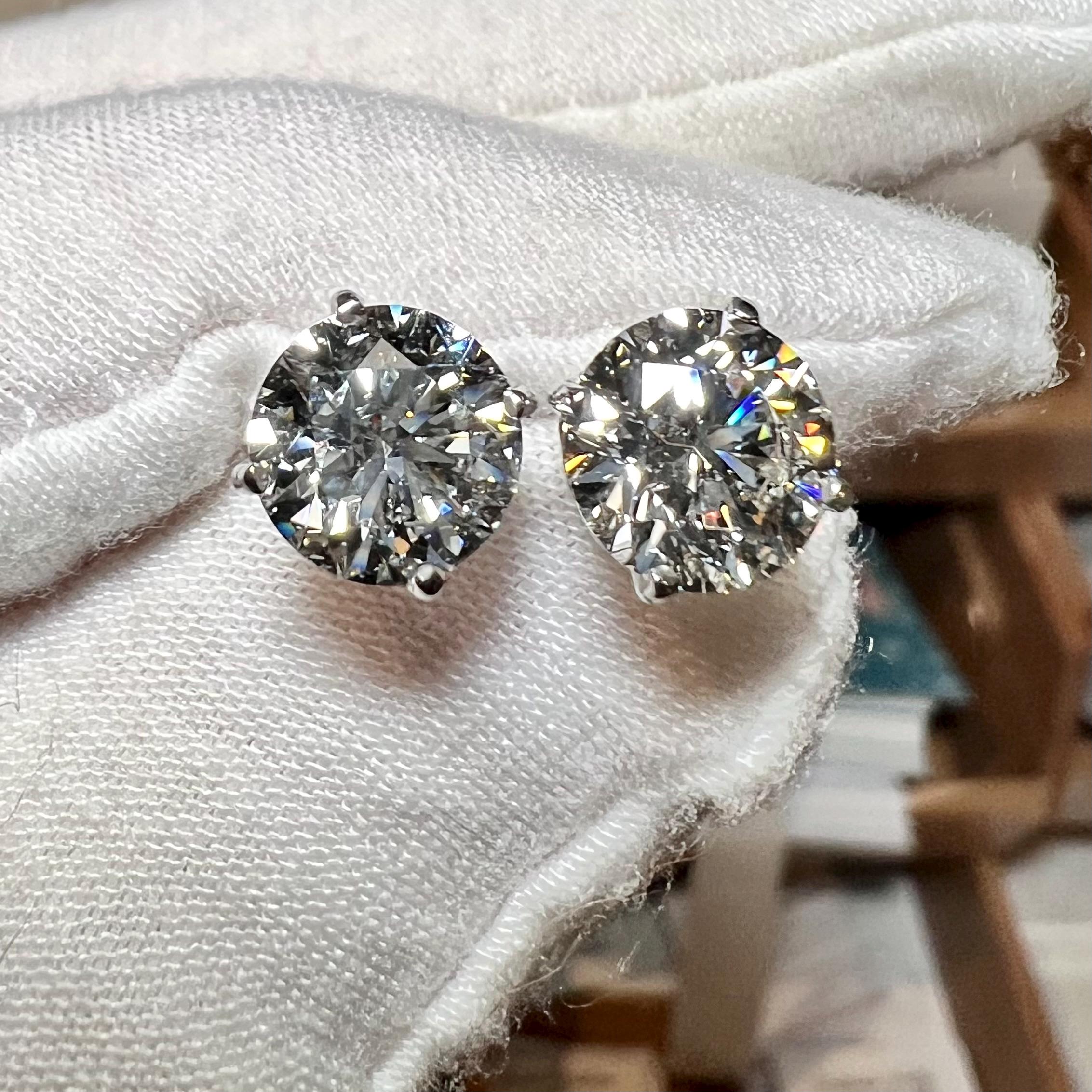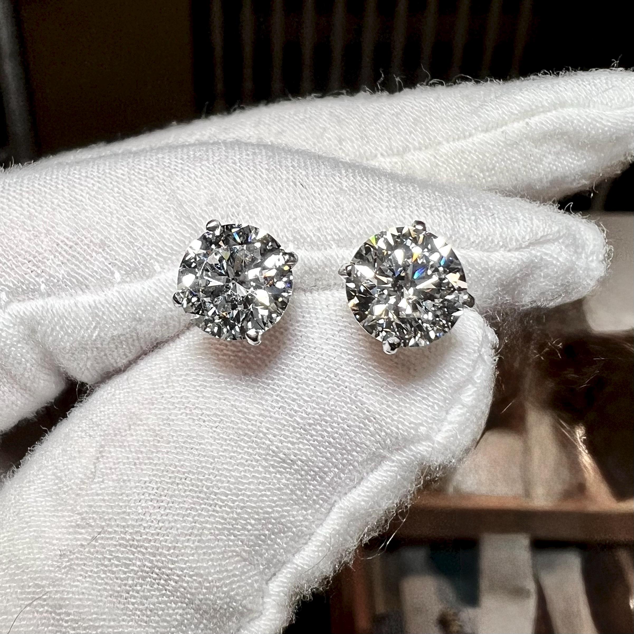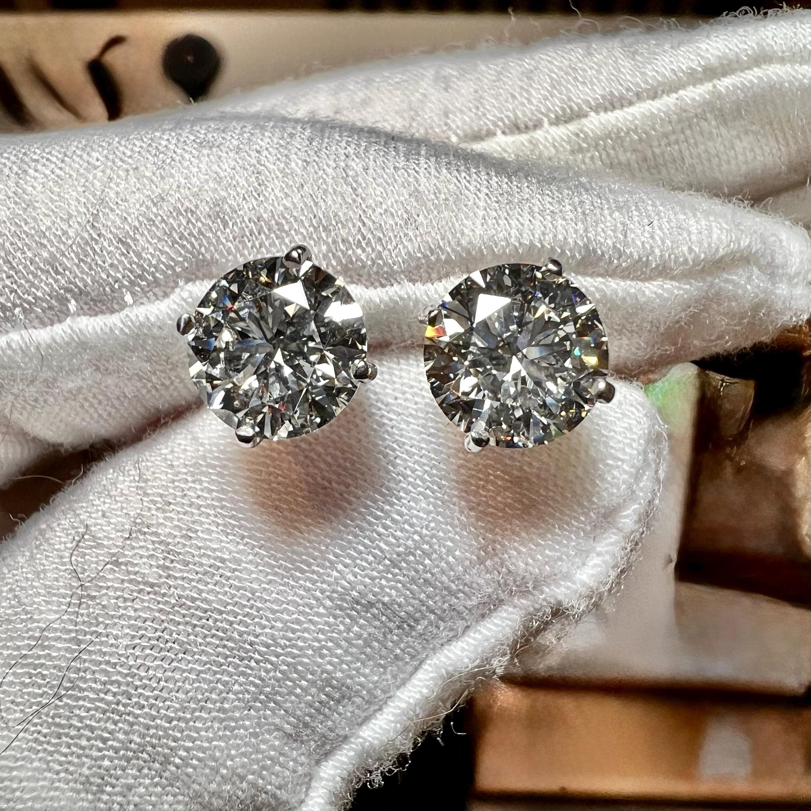 Certified 14K Gold 2CT (4TCW) Round Brilliant Cut Lab Grown Diamond Stud Earring / April Birthstone