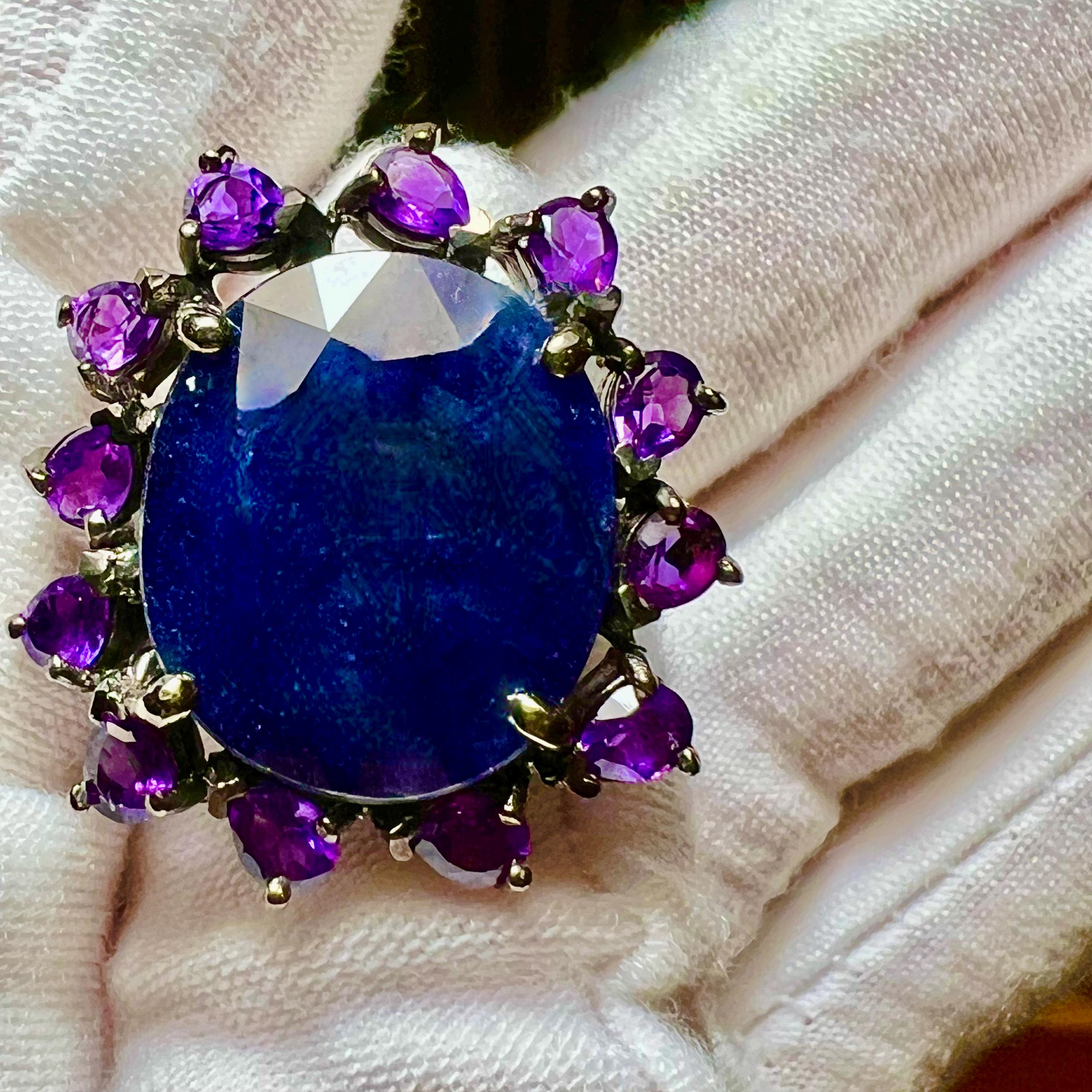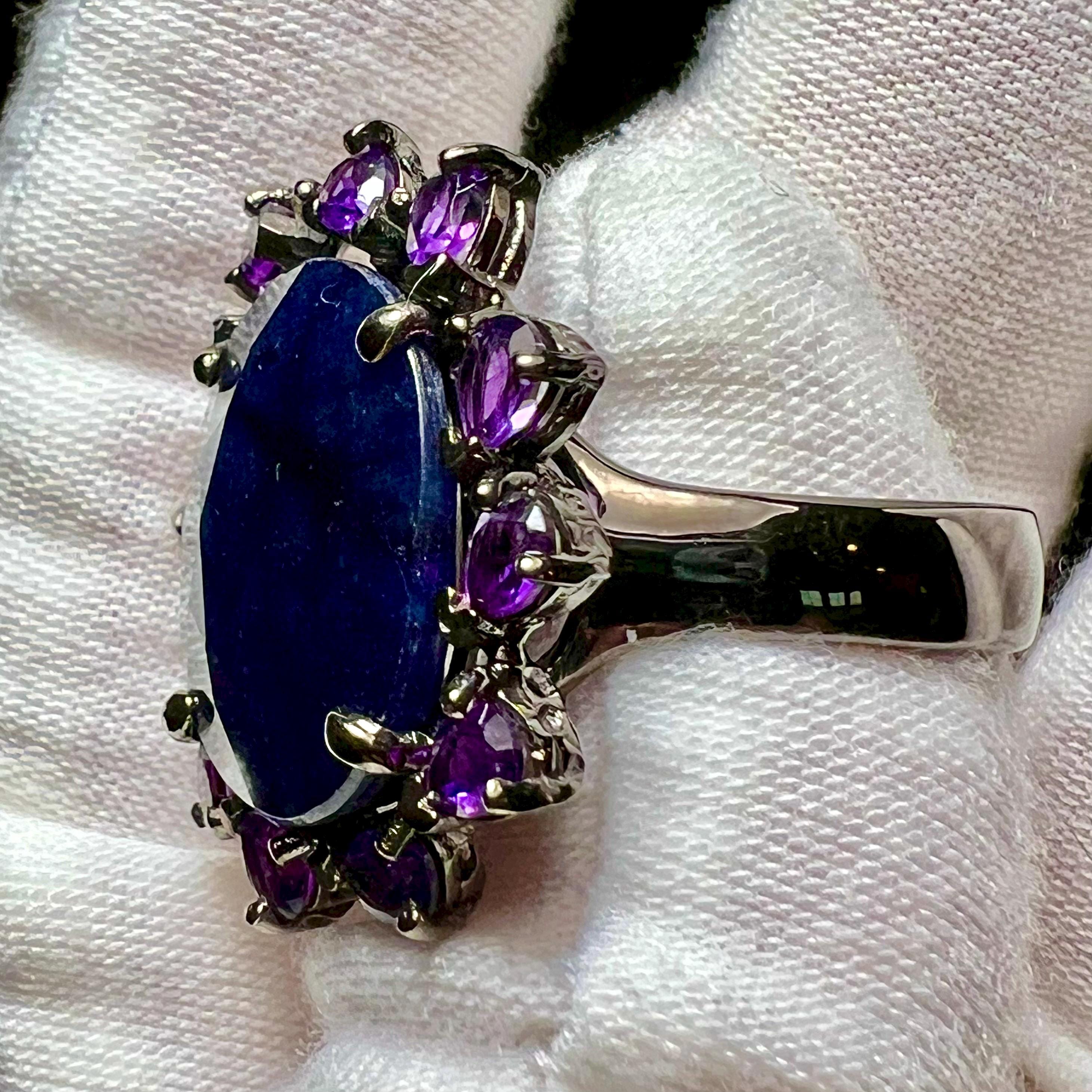 Natural Madagascar 10.8CT Oval Blue Sapphire & Purple Amethyst Halo Ring Size 8.5US