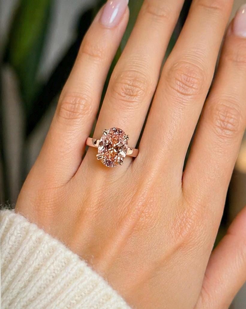 ✨ 3CT Oval Intense Pink Lab-Grown Diamond Engagement Ring